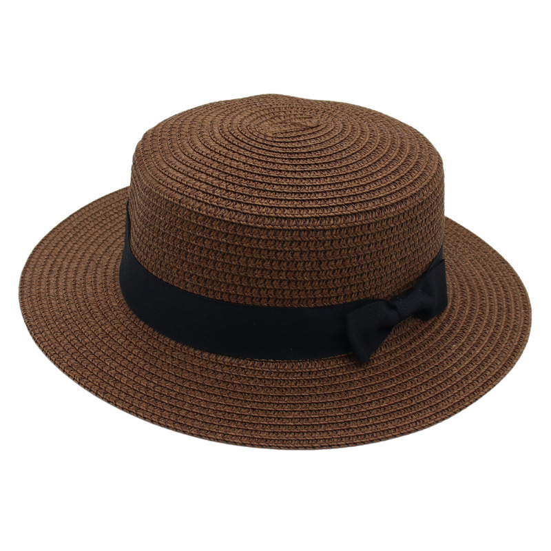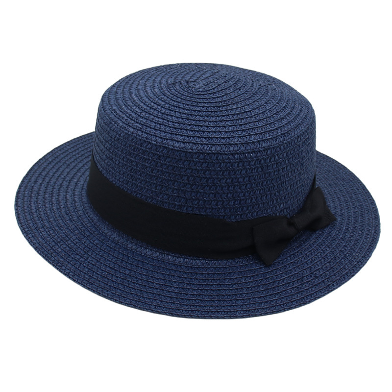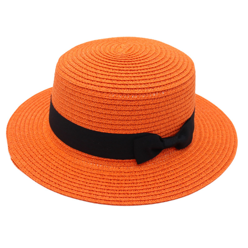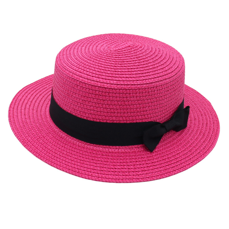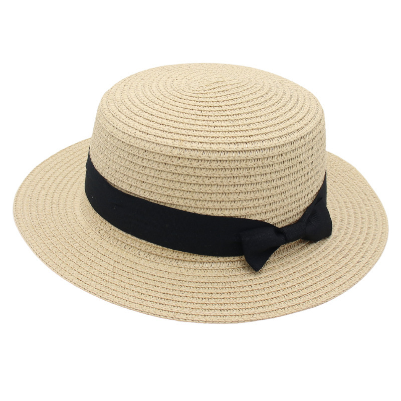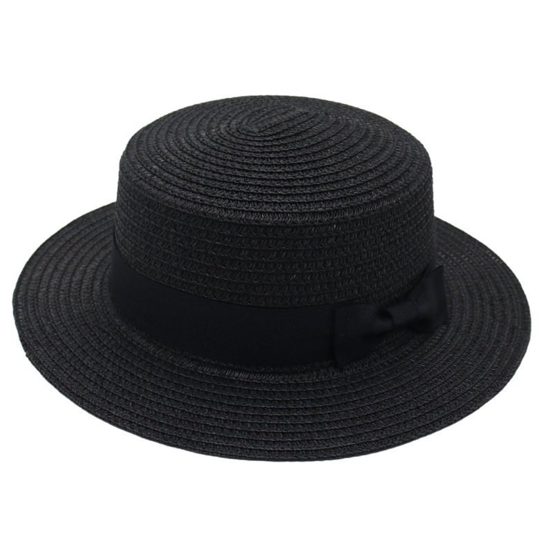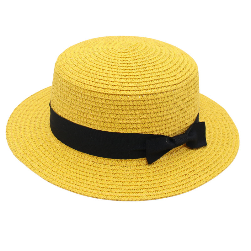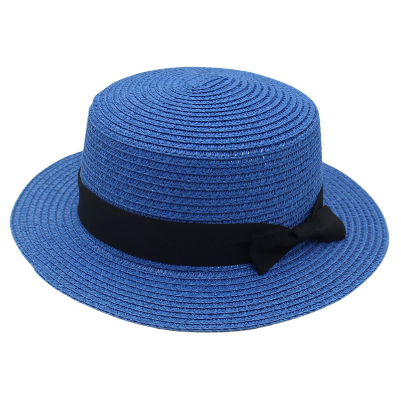 英伦复古蝴蝶结平顶小礼帽韩版亲子款防晒遮阳草帽纯色简约沙滩帽