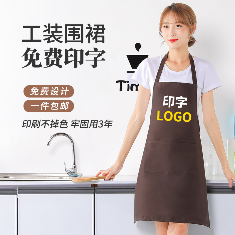 厂家围裙批发印logo定图工作服促销礼品厨房肩带广告印字围腰成人