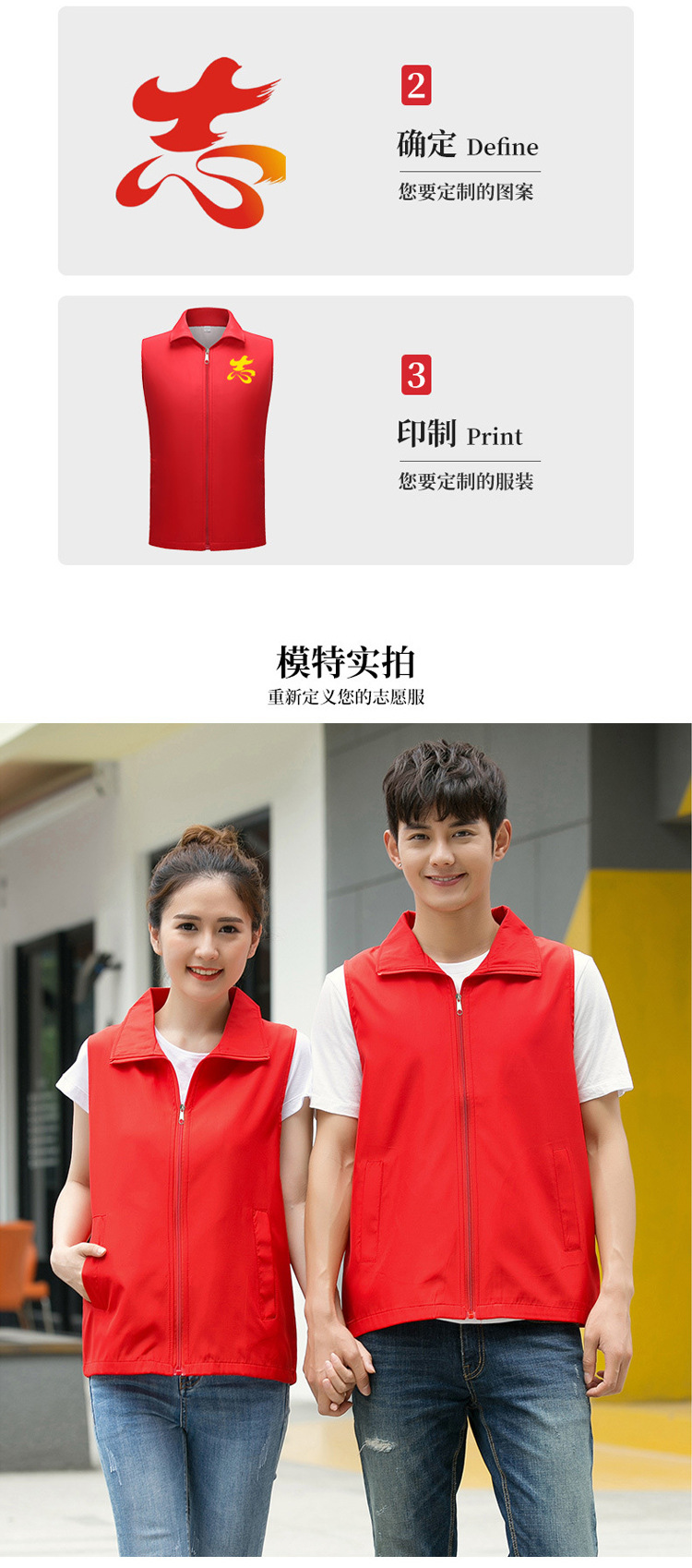 志愿者马甲定制印字logo大红色义工背心活动广告公益马甲批发订做