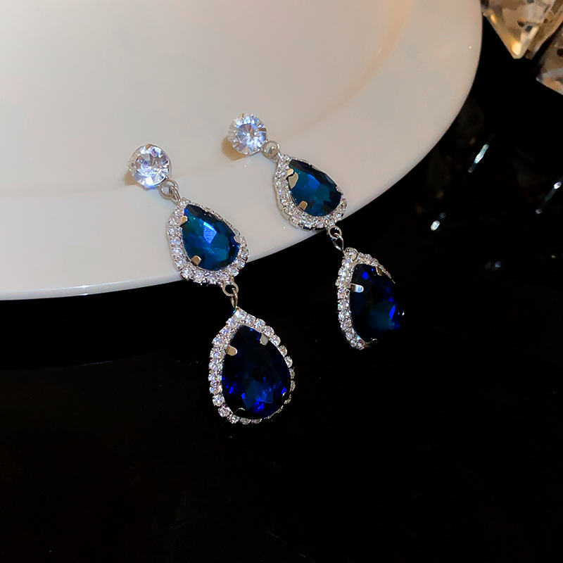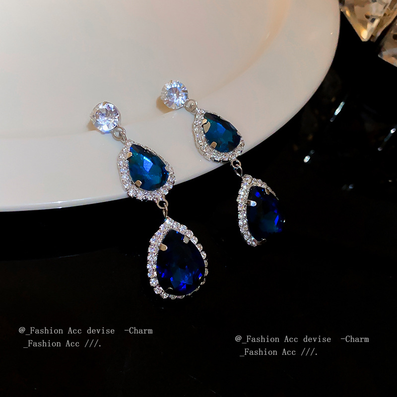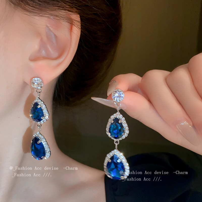 银针镶钻几何水滴耳环欧美轻奢高级感耳钉复古小众设计感耳饰批发