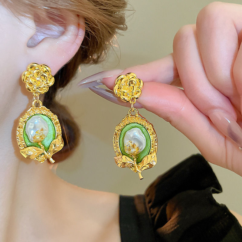 银针法式复古水滴珍珠耳环宫廷风时尚气质耳坠vintage中古耳饰女