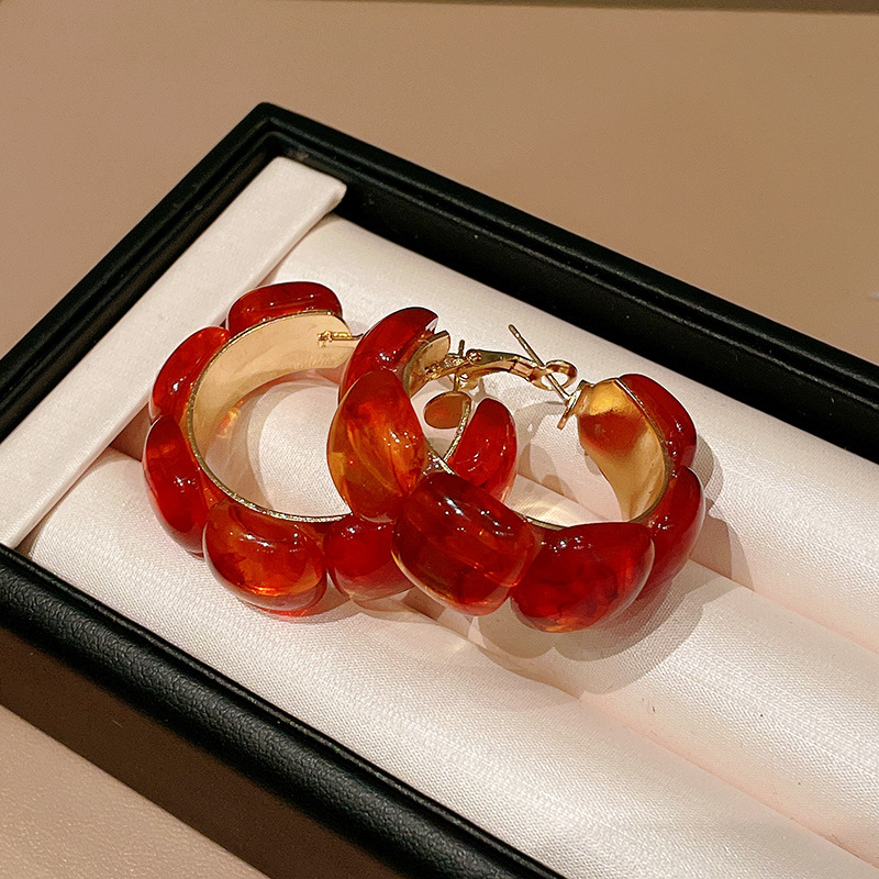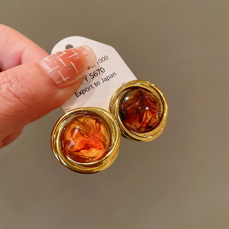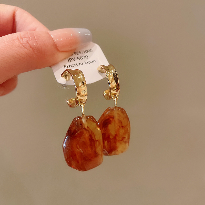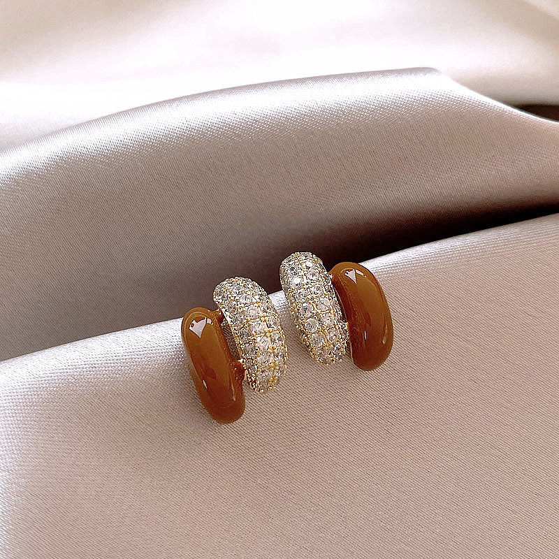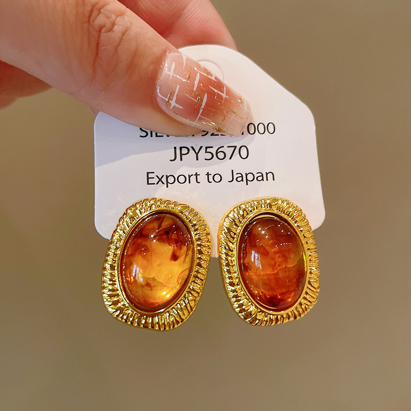 红咖色银针虎眼石耳环港风复古高级感耳钉小众百搭气质耳饰批发女