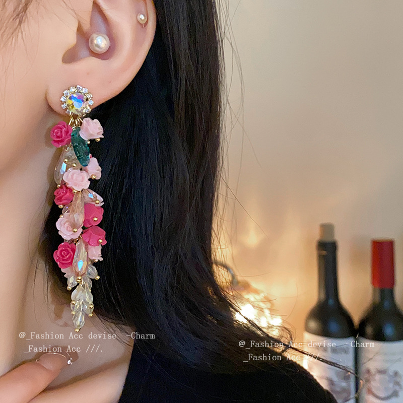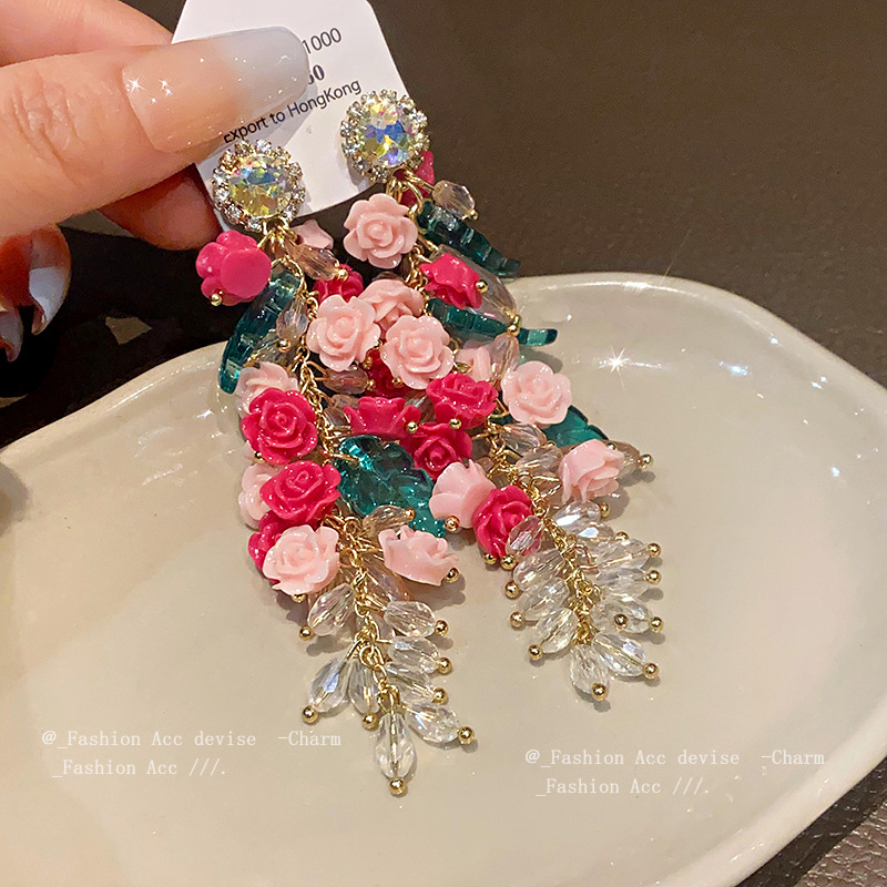 银针重工镶钻流苏水晶耳环欧美轻奢设计感耳钉高级感气质耳饰批发