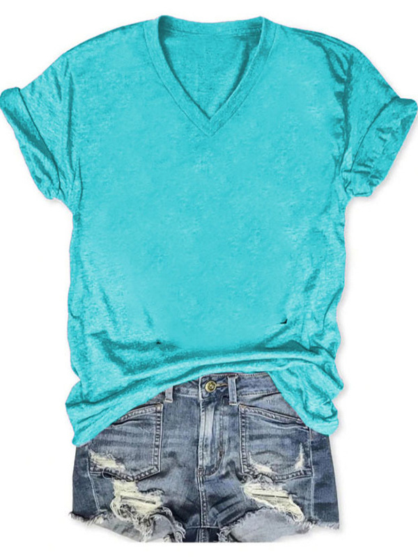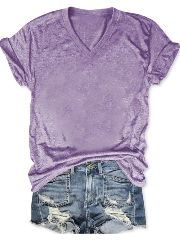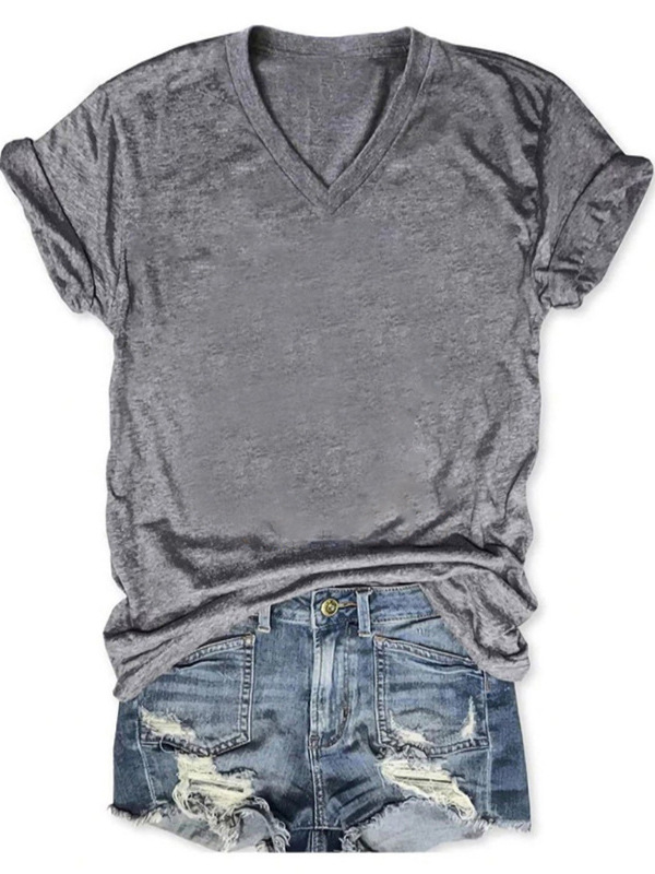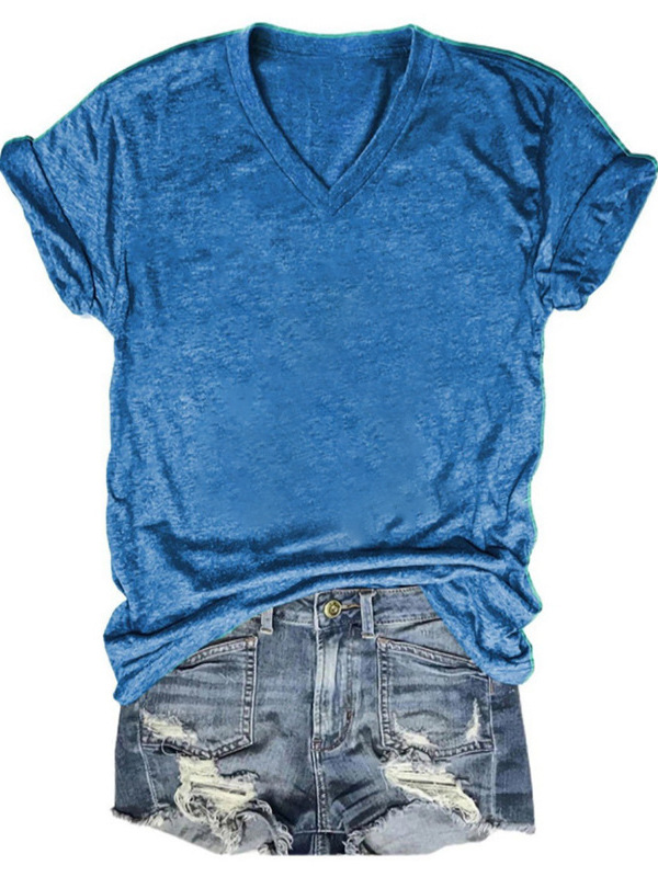 一件来图制作 跨境女装欧美休闲宽松套头V领短袖T恤 单件印花