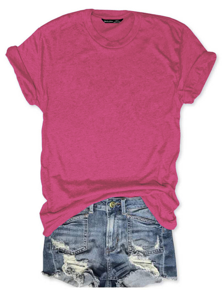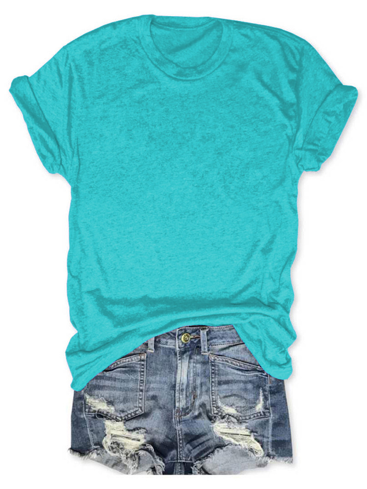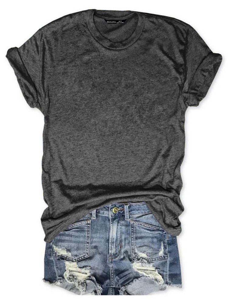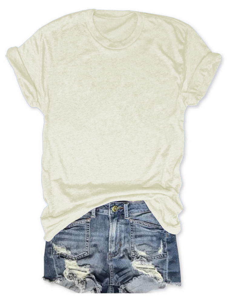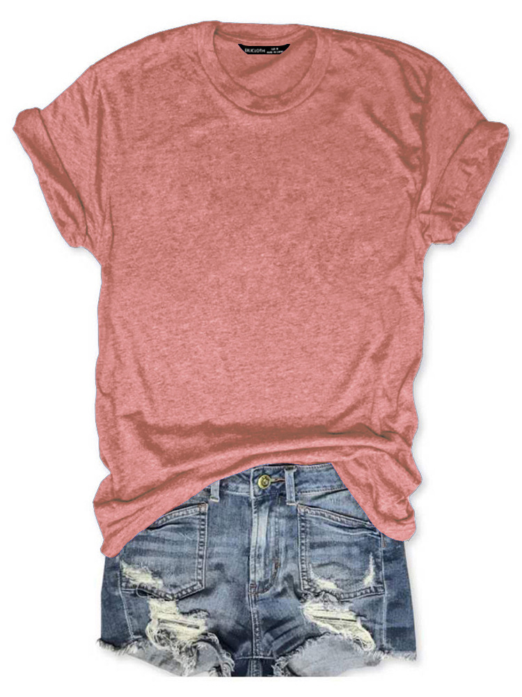 白墨烫画 2024跨境外贸服装欧美休闲圆领套头女t恤 单件可印花