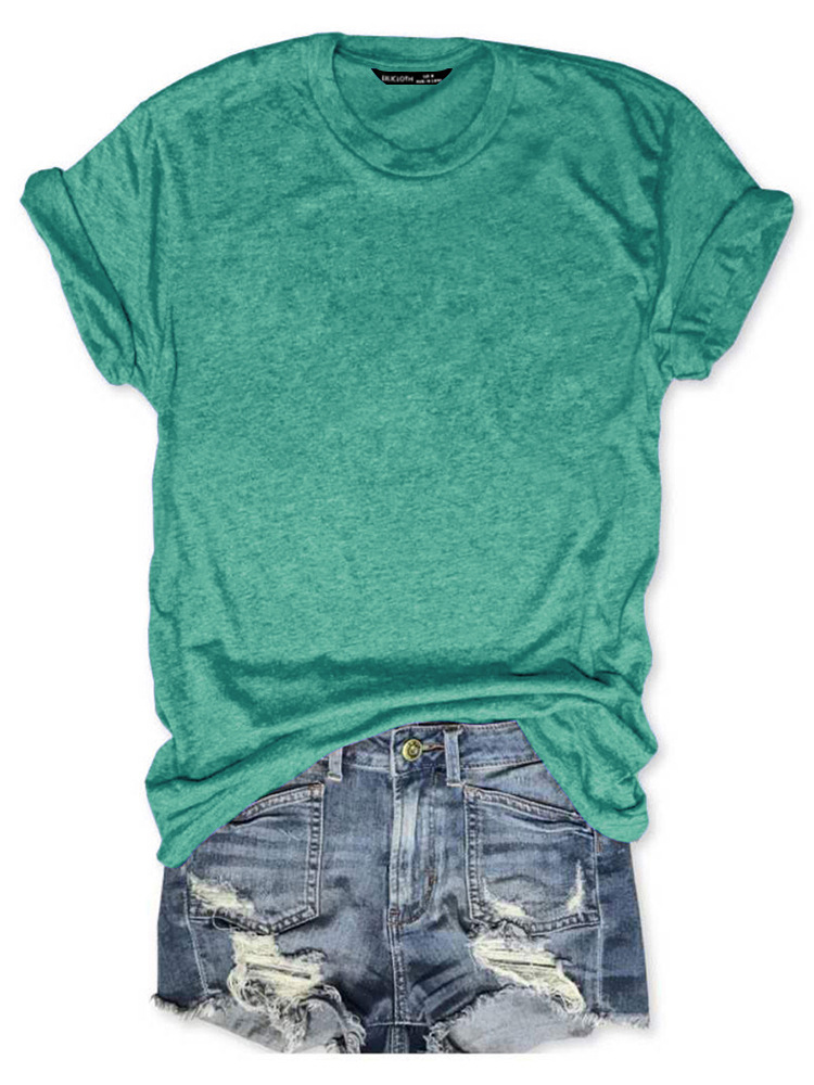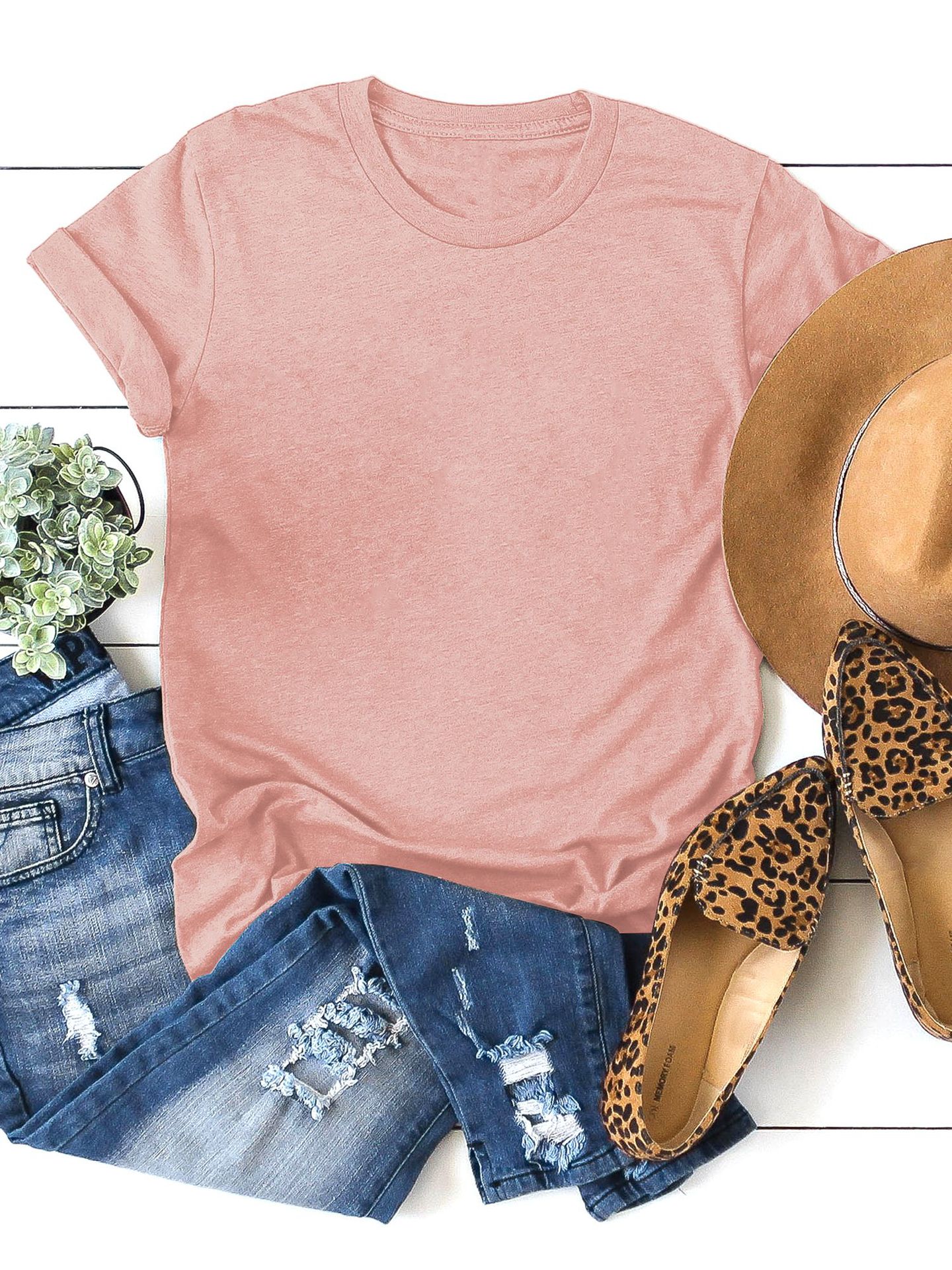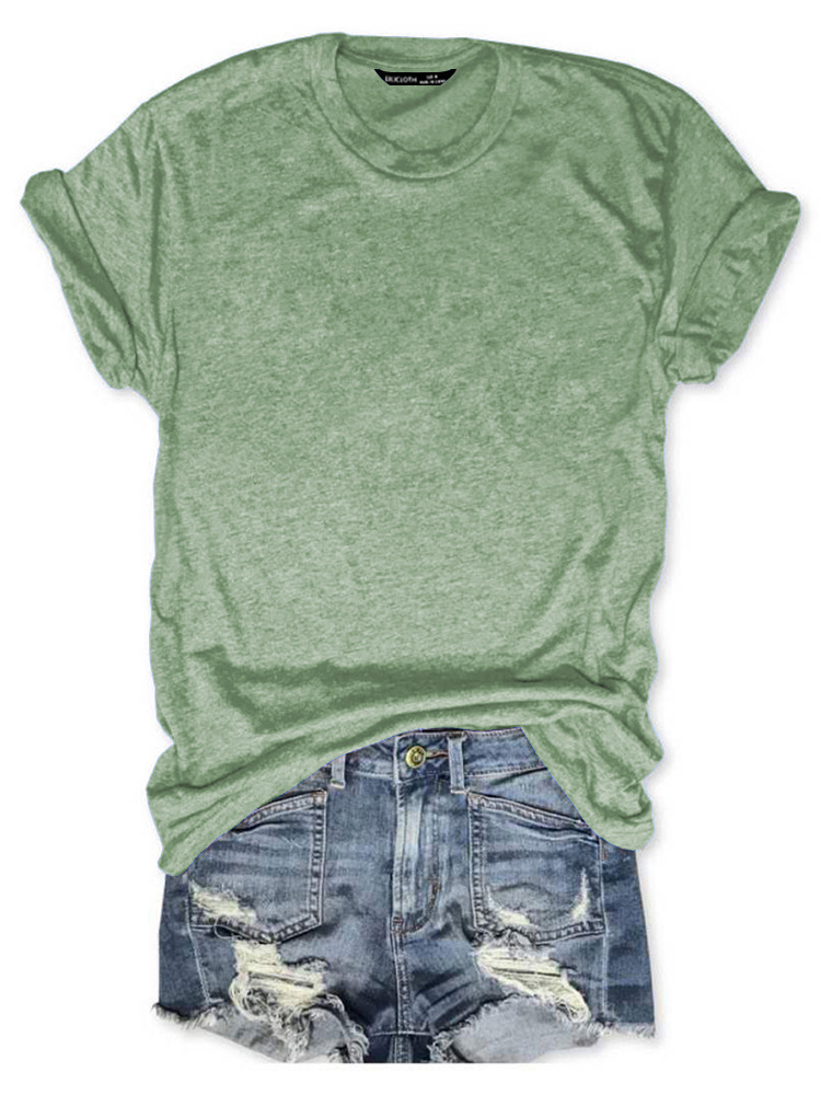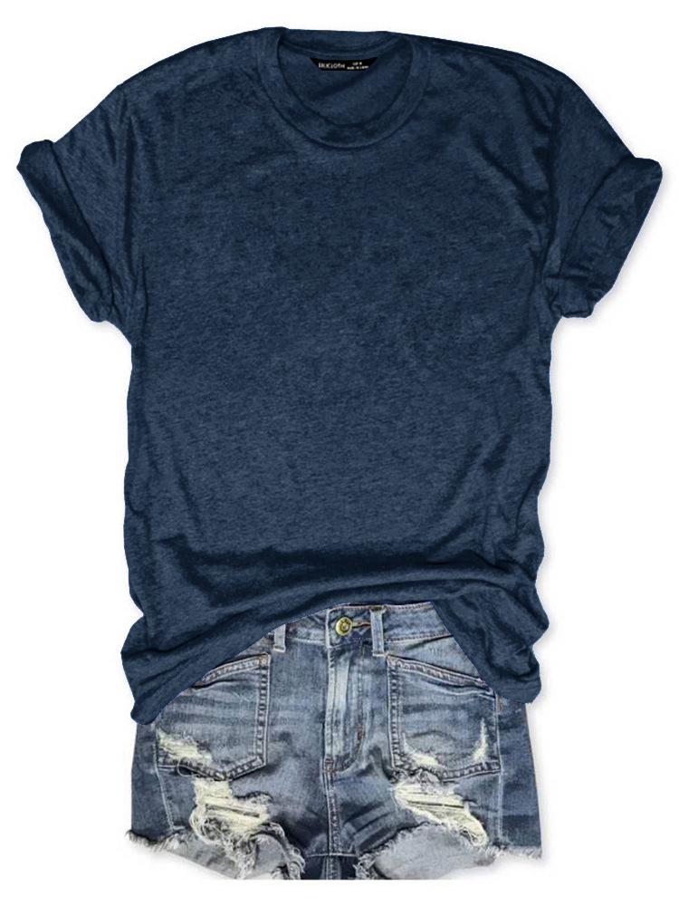白墨烫画 2024跨境外贸服装欧美休闲圆领套头女t恤 单件可印花