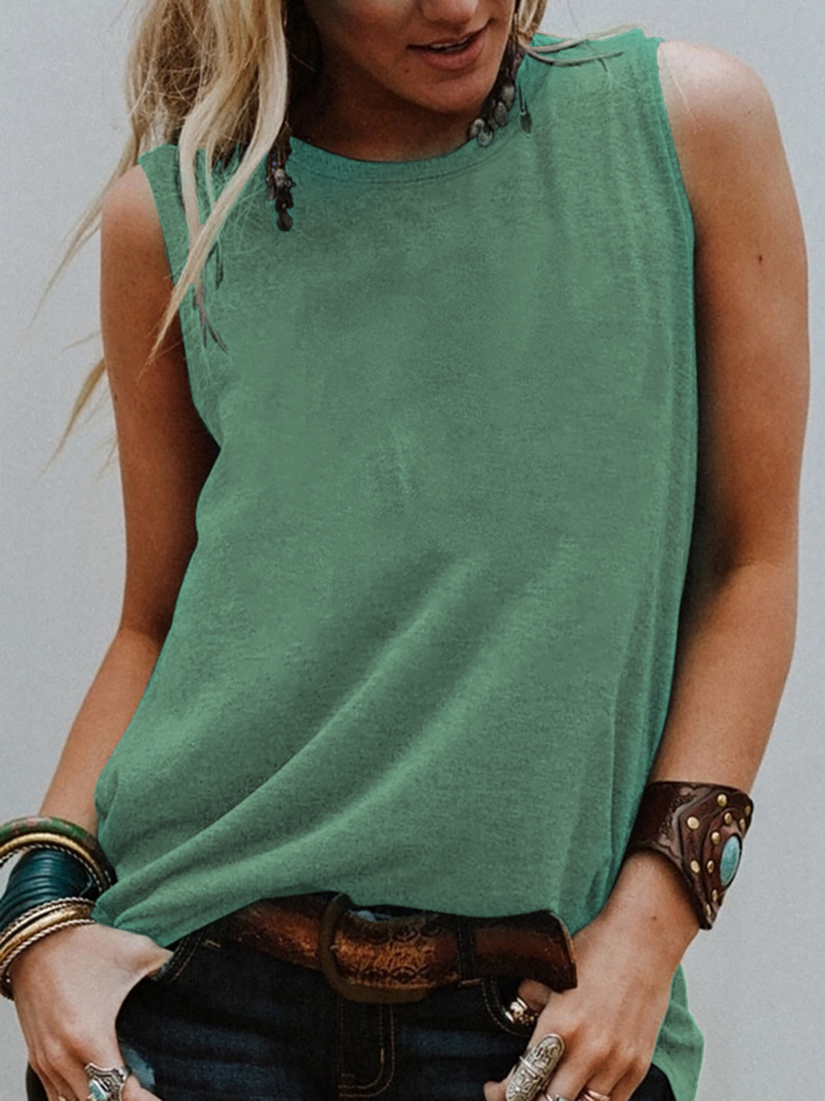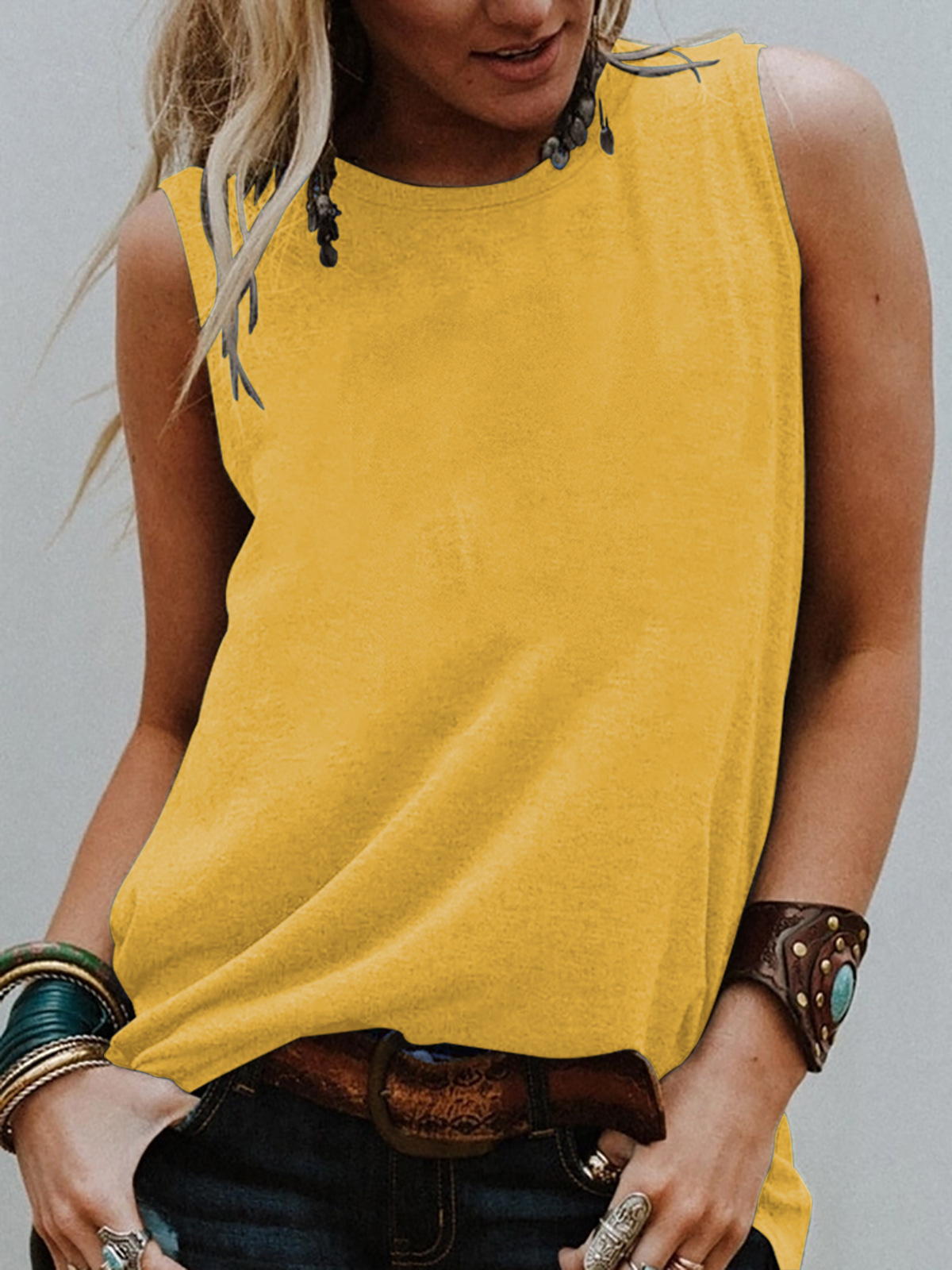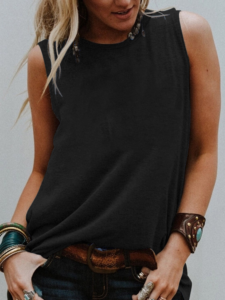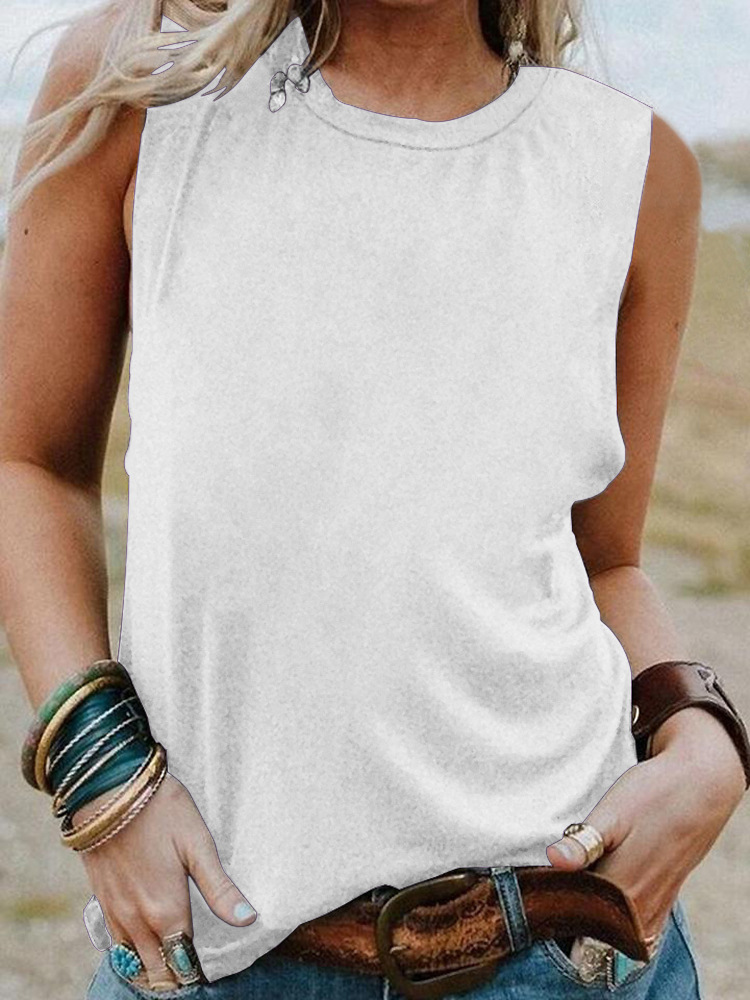 一件白墨烫画 2024夏季亚马逊背心 欧美无袖上衣 宽松休闲风