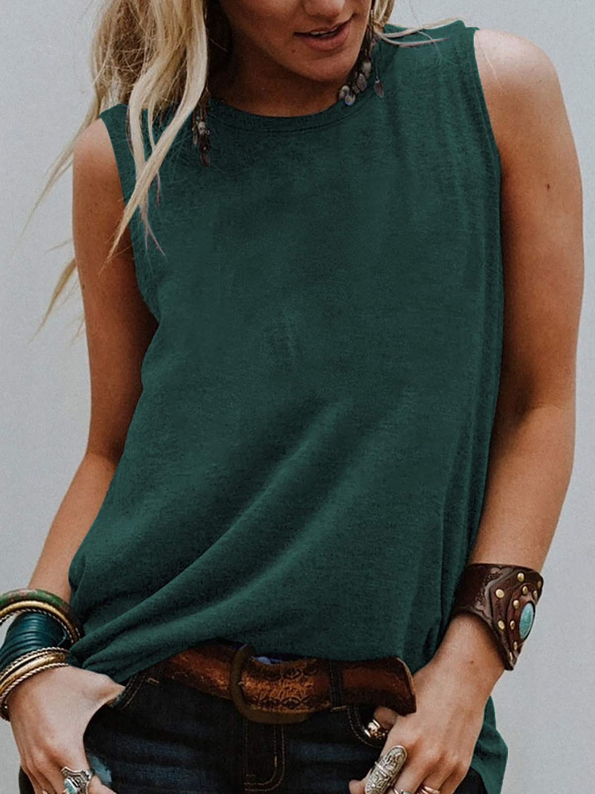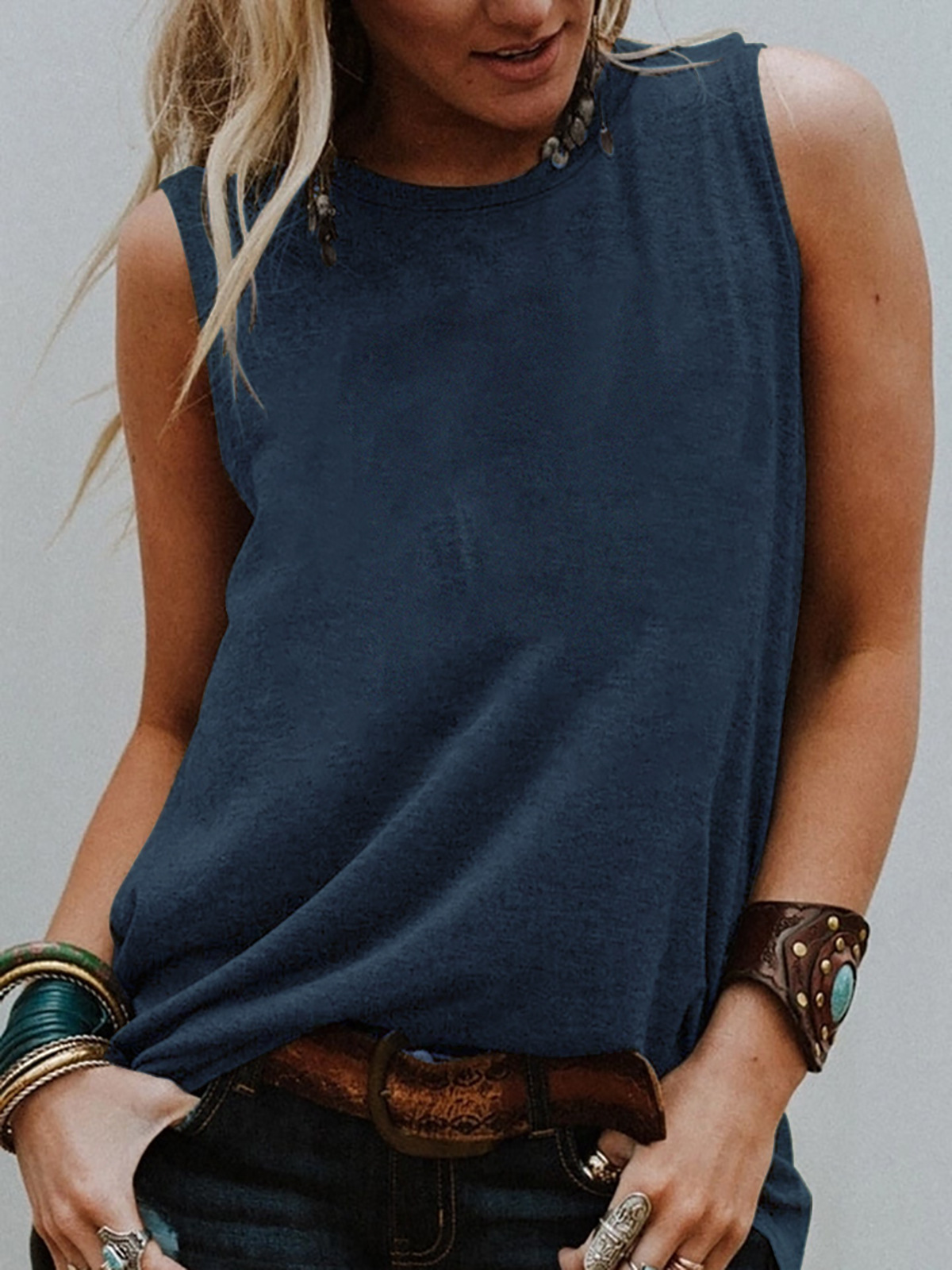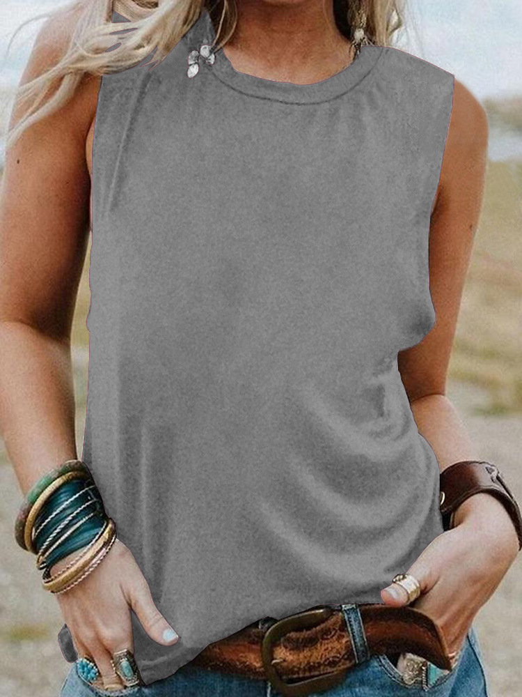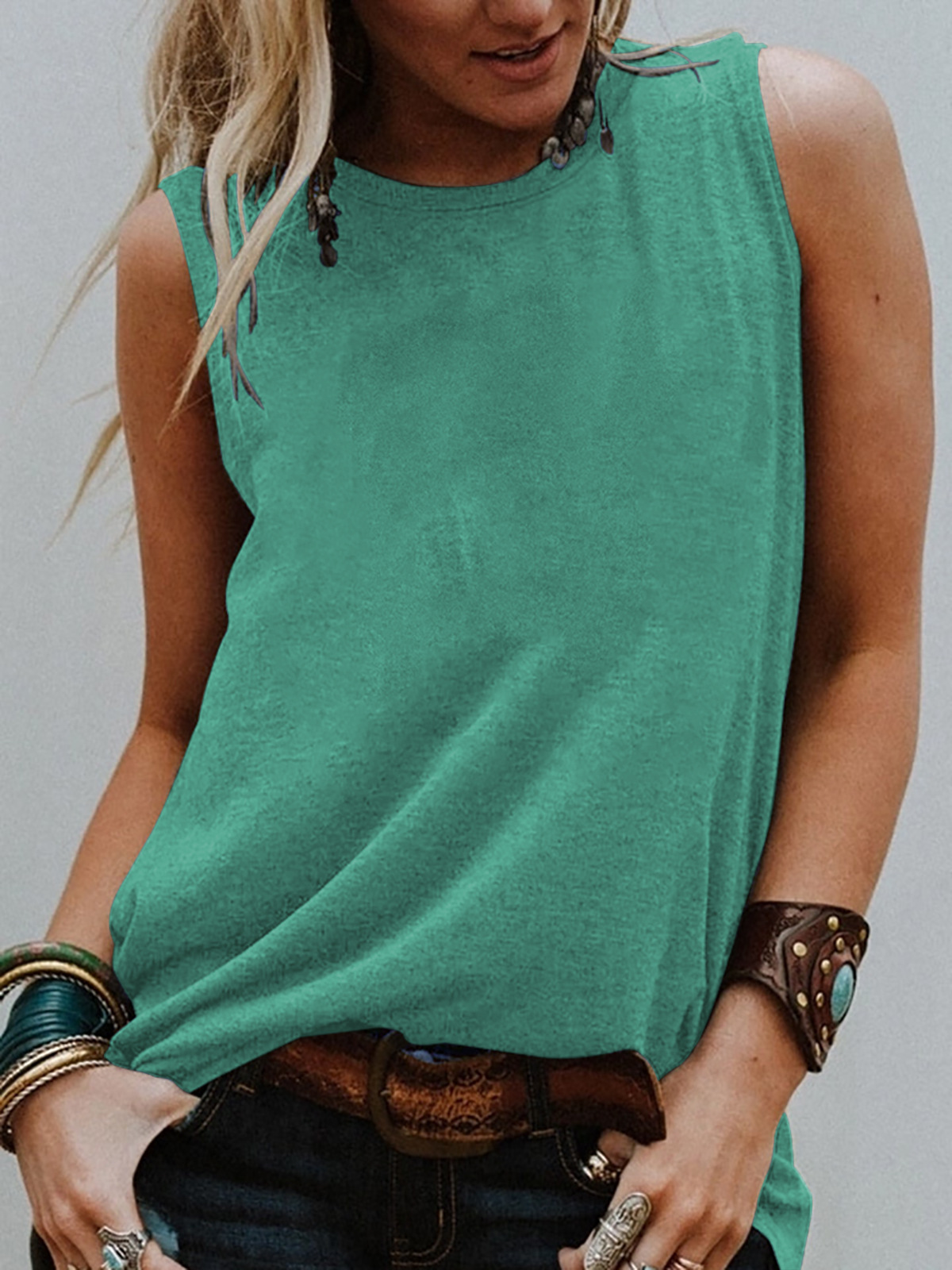 一件白墨烫画 2024夏季亚马逊背心 欧美无袖上衣 宽松休闲风