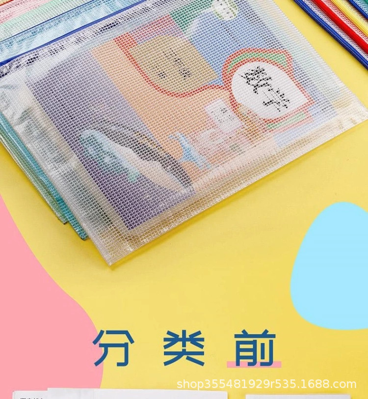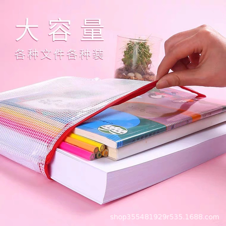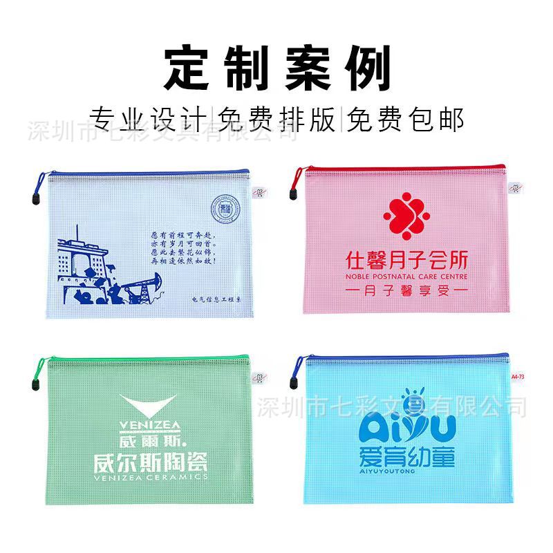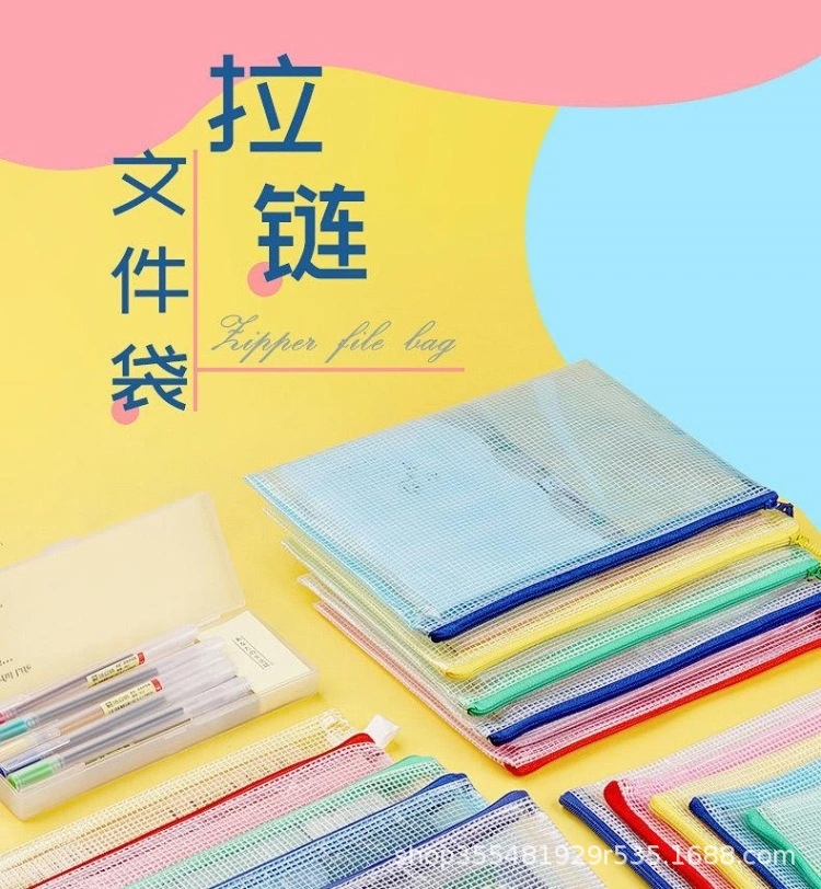 现货PVC透明防水网格拉链文件袋档案袋定 制印刷logo工厂直供外贸