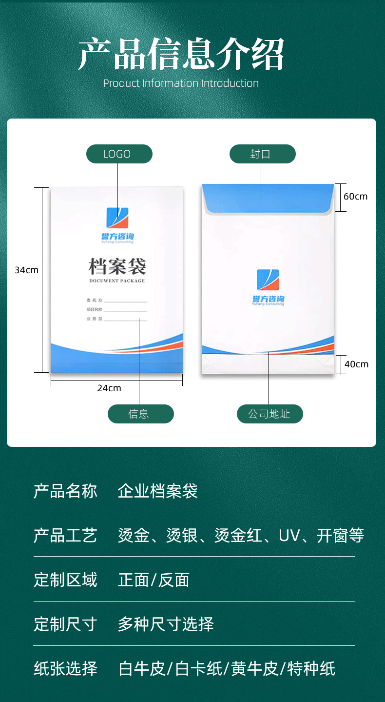 定做企业logo牛皮纸文件袋定制投标合同A4资料袋办公商务档案袋