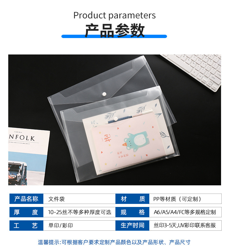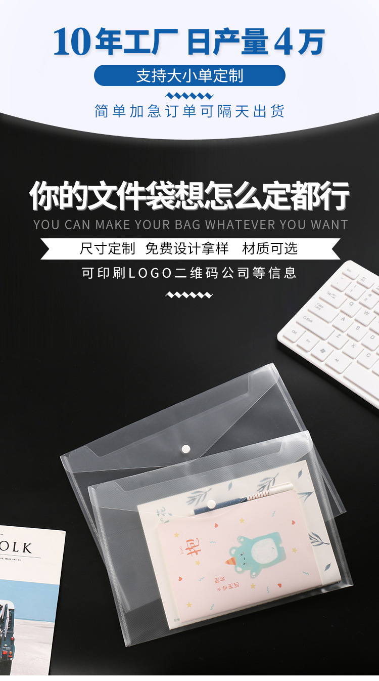 厂家批发塑料pp按扣文件袋a4学生试卷资料袋透明办公文件袋档案袋
