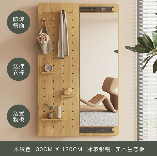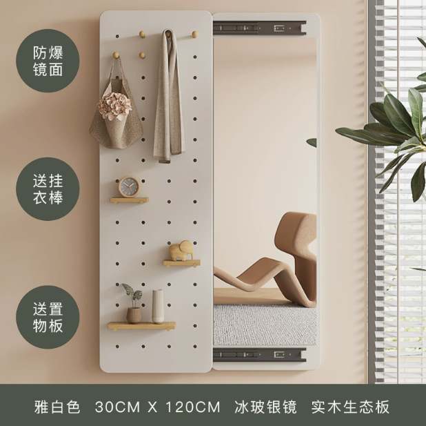 洞洞板穿衣镜子可挂可摆隐藏推拉玄关全身贴墙镜子隐形试衣镜壁挂