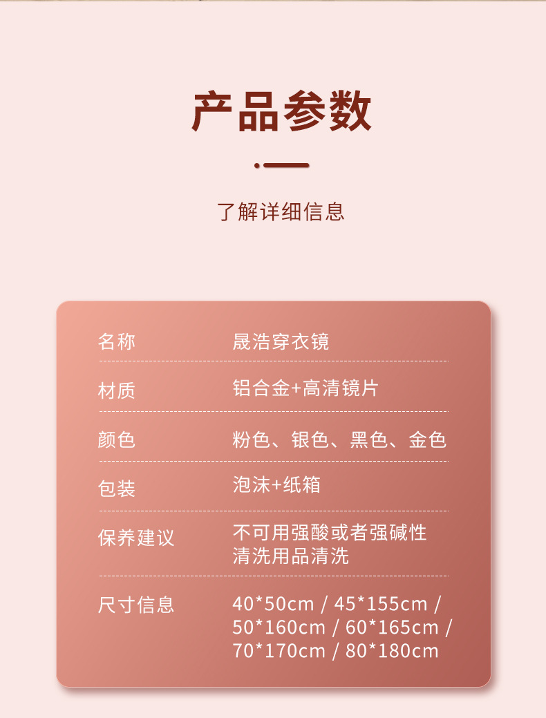 全身落地粉镜子圆角网红简约少女家用试衣卧室穿衣学生宿舍服装店