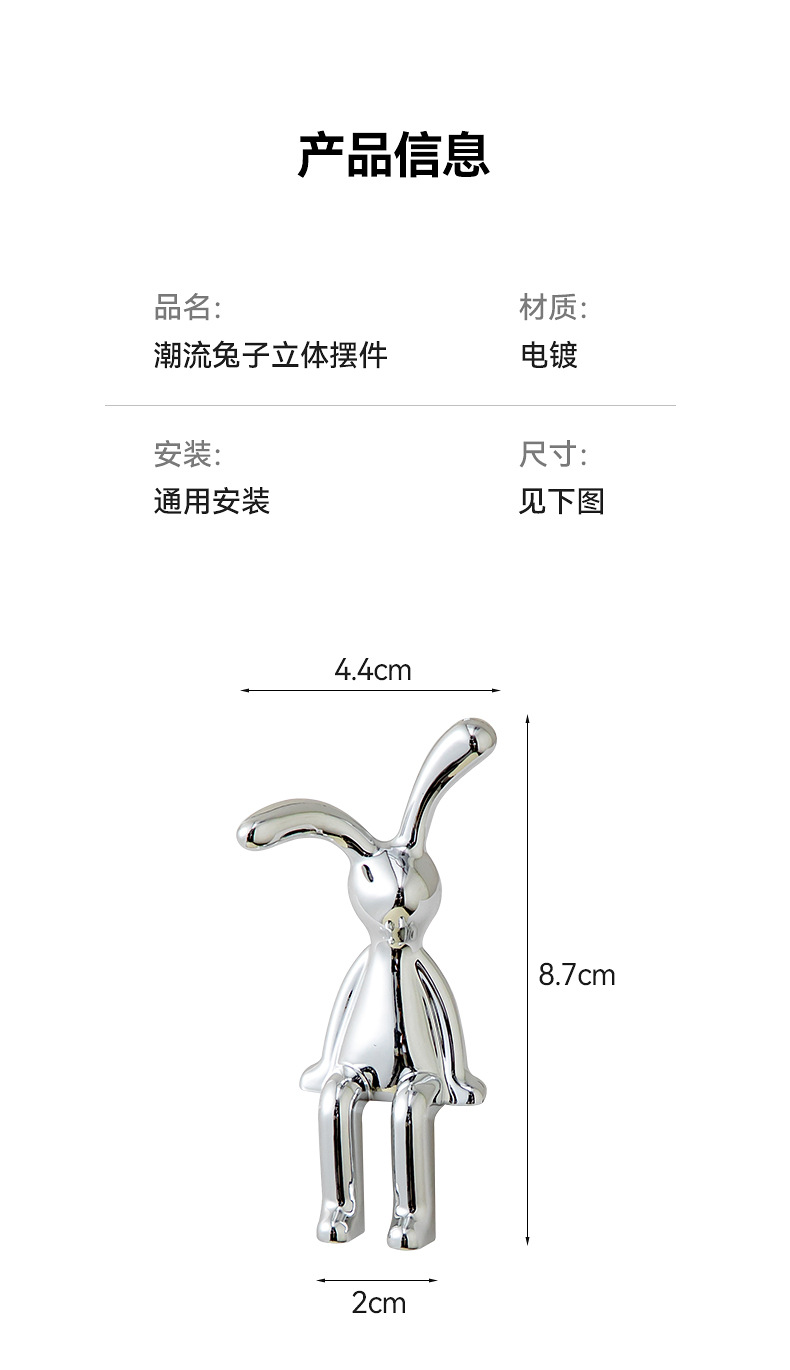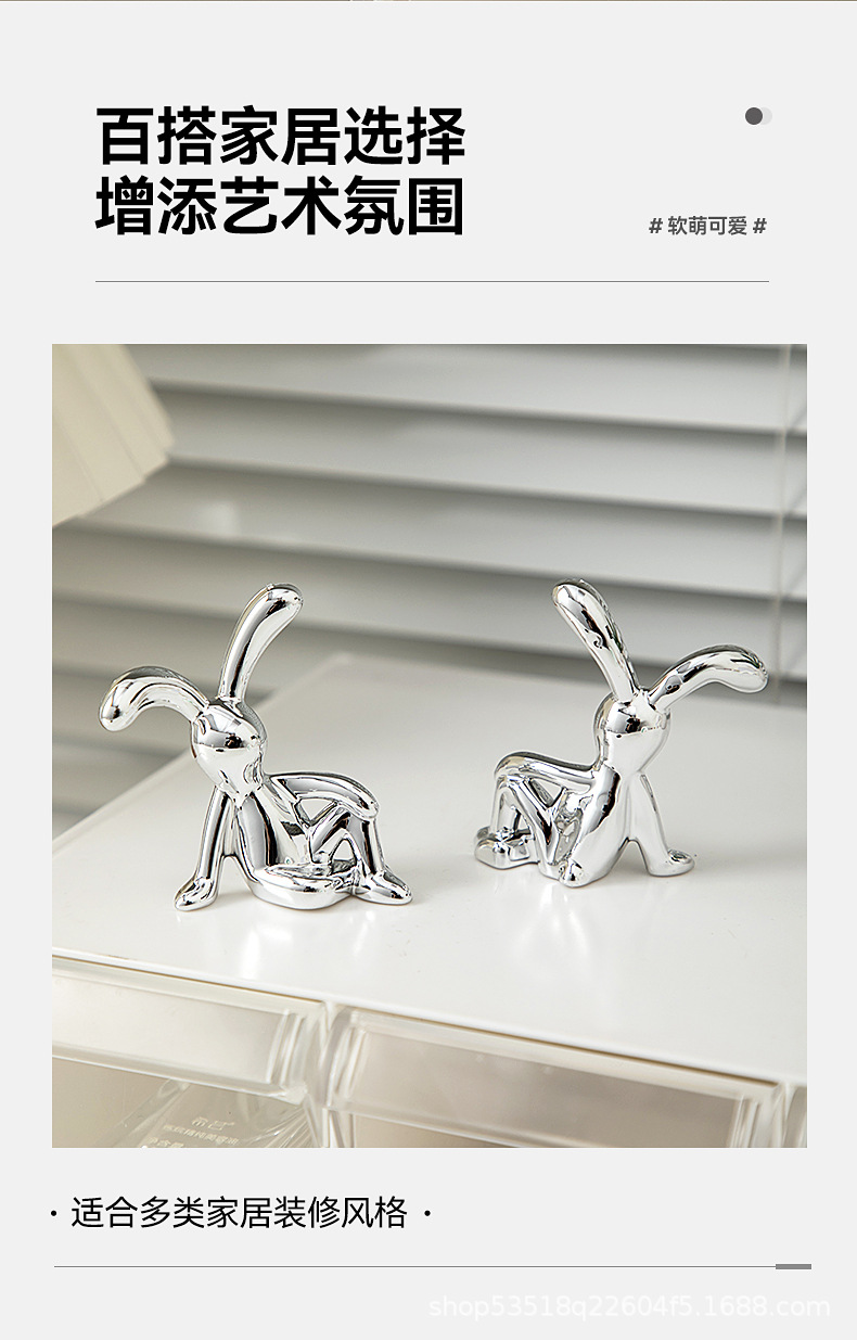 北欧电镀创意兔长耳兔摆件轻奢客厅汽车潮玩摆件电视柜房间装饰物