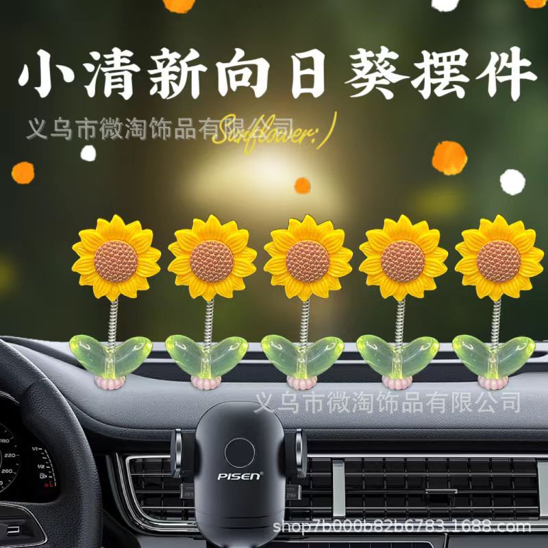 2024新款创意摇头向日葵汽车摆件车载树脂饰品车内中控台装饰用品
