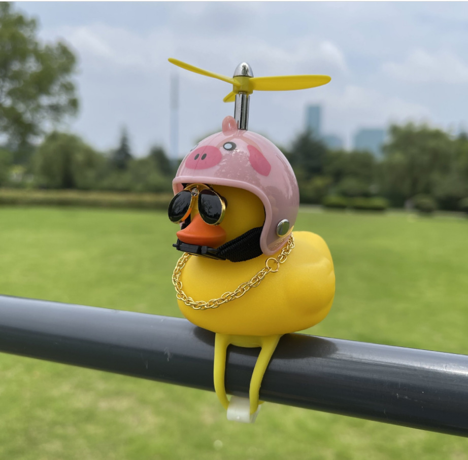 网红社会小黄鸭车载摆件汽车上抖音同款社会网红头盔摩托车鸭子