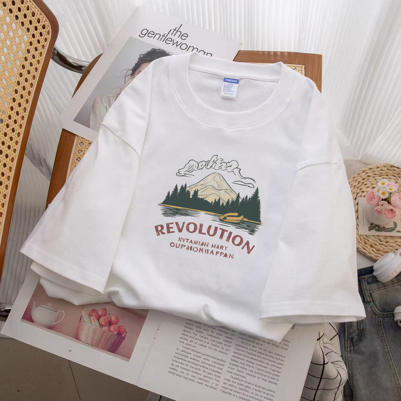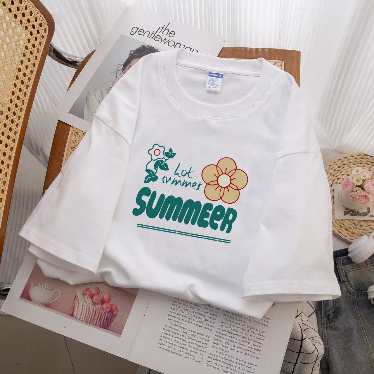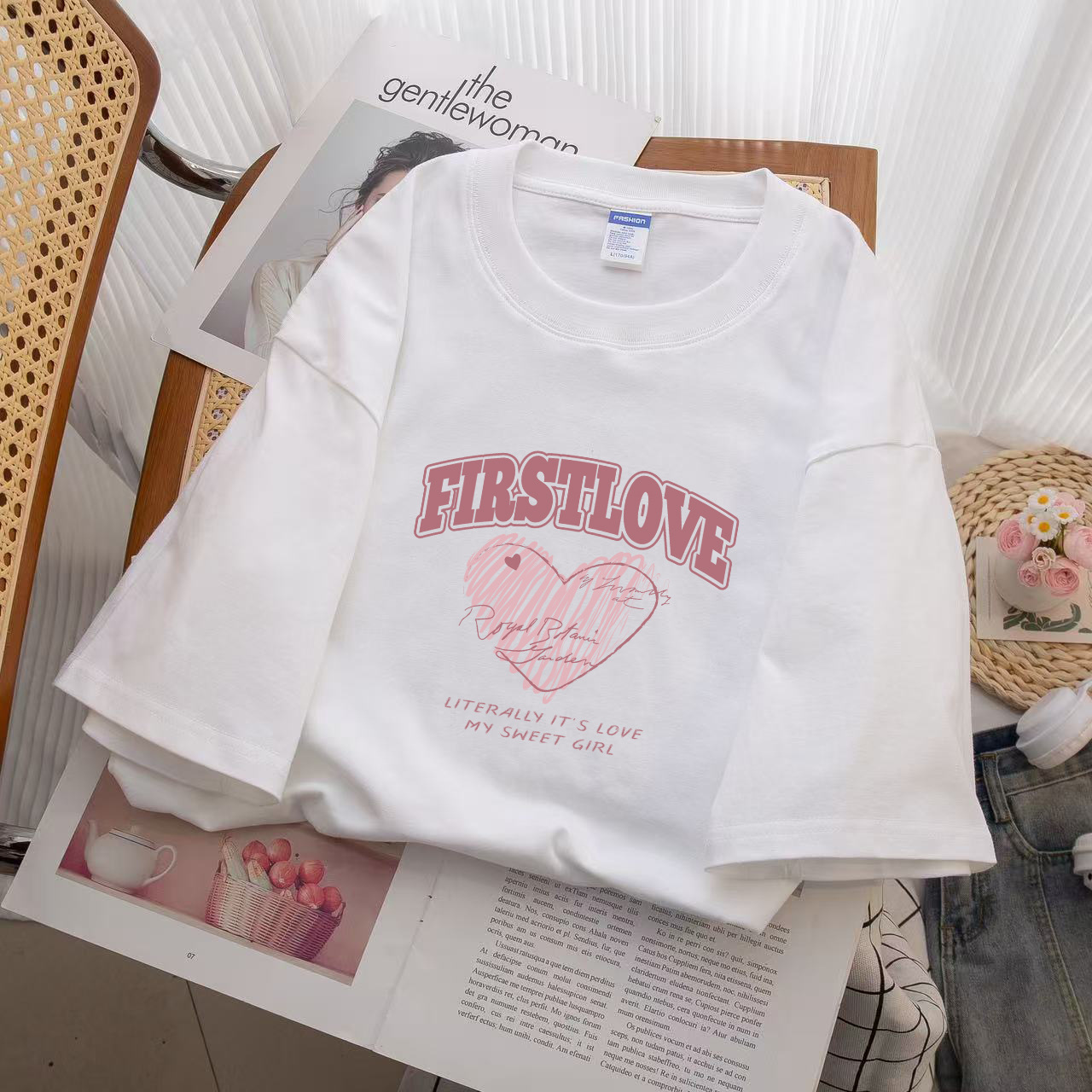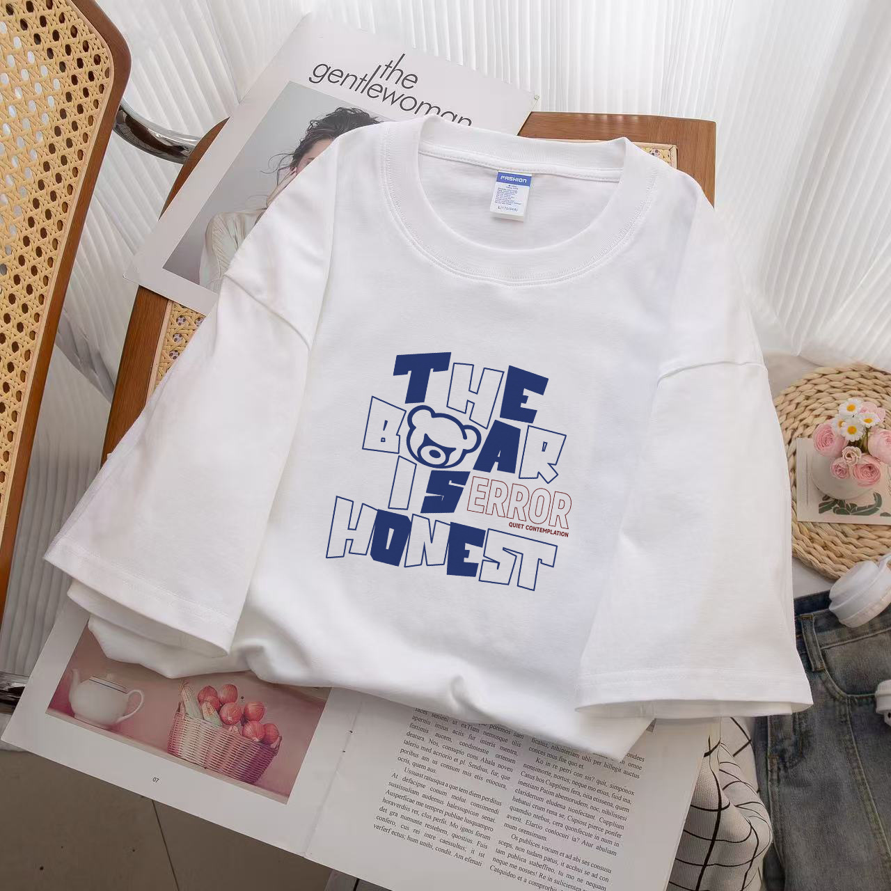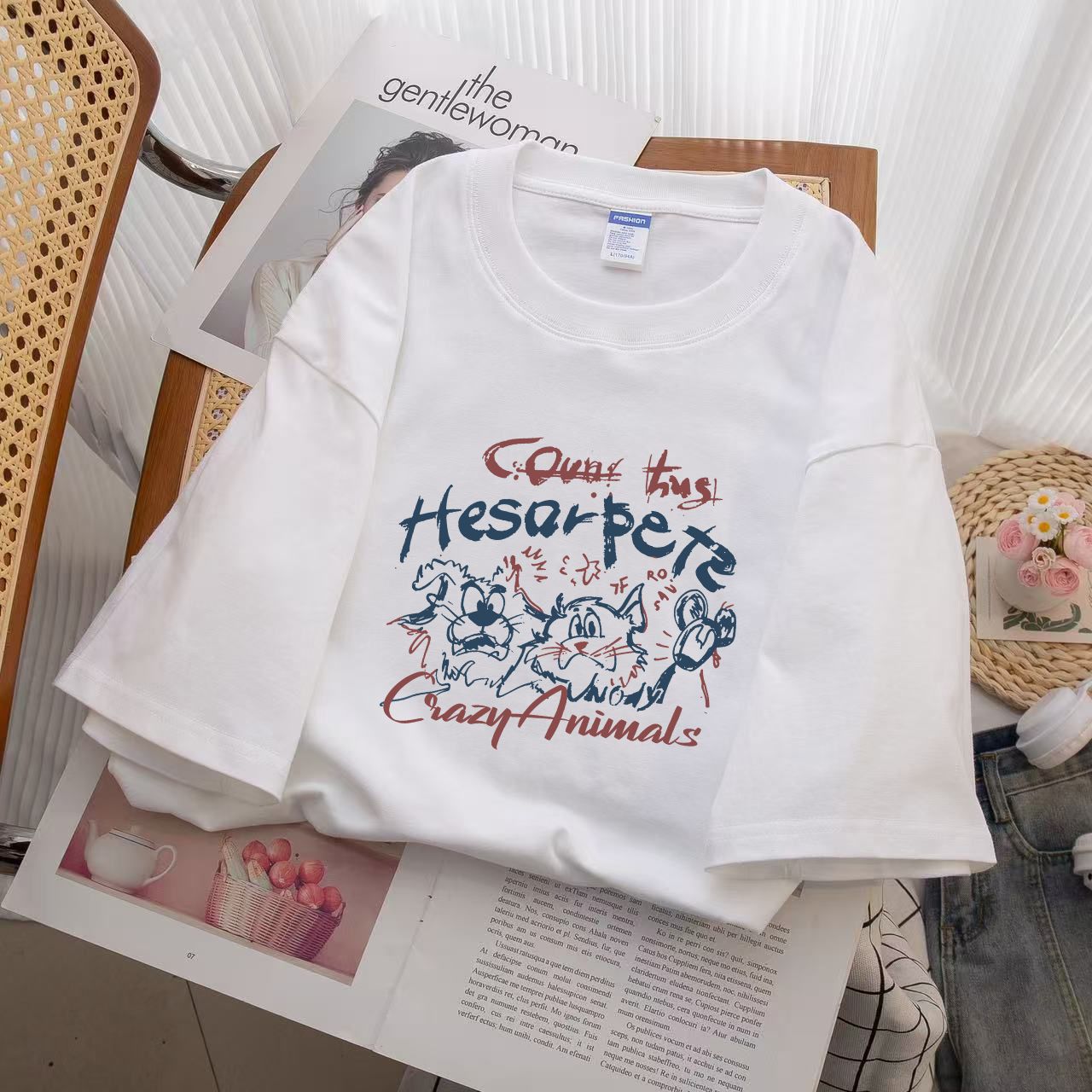 纯棉短袖t恤女夏季韩版宽松圆领洋气印花百搭原宿风上衣潮流女装