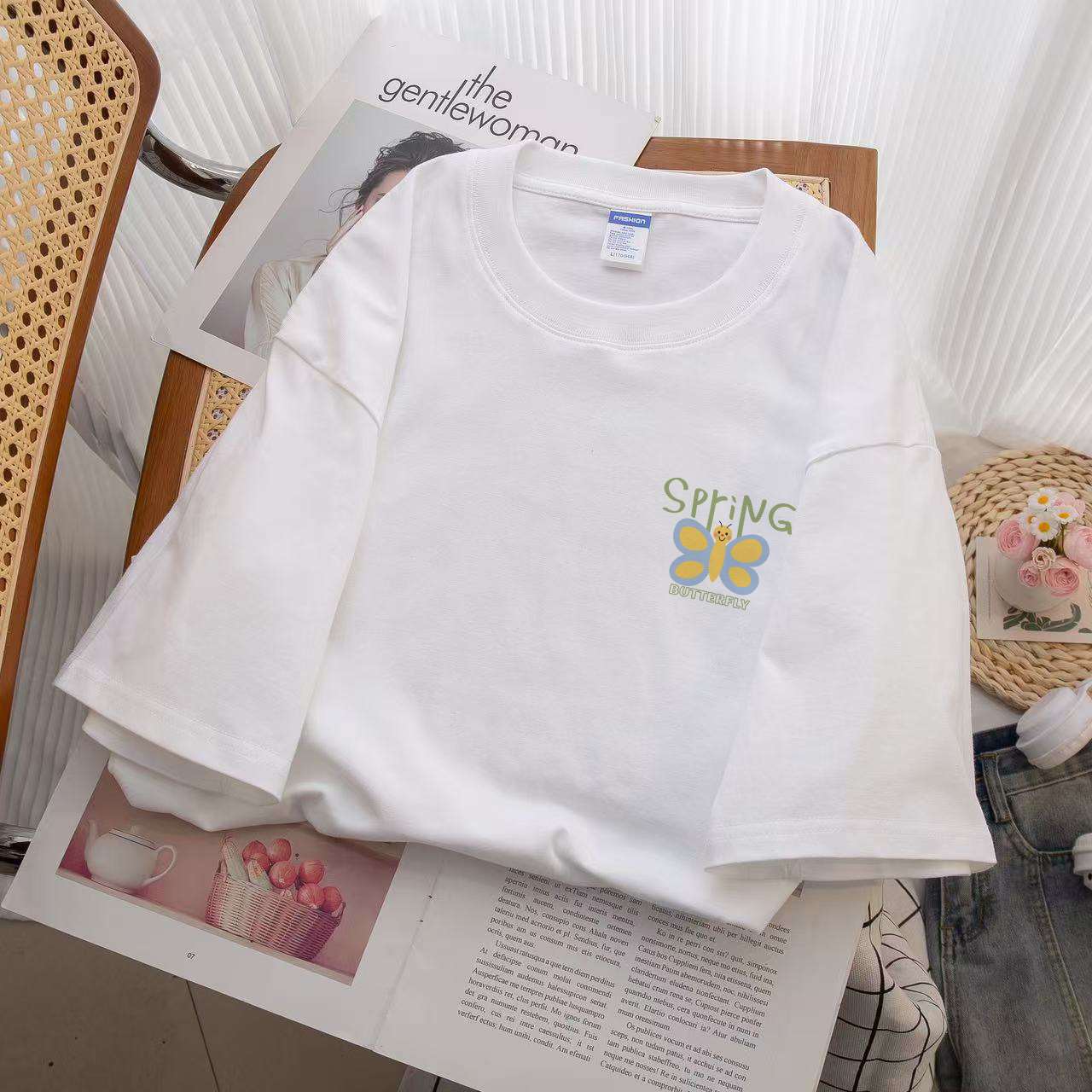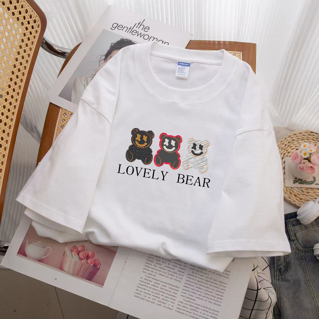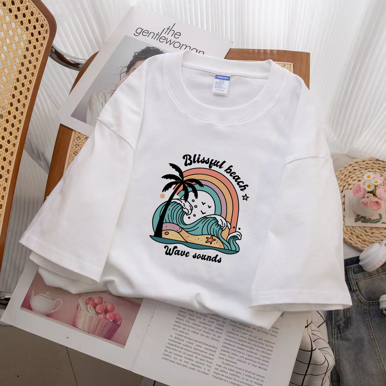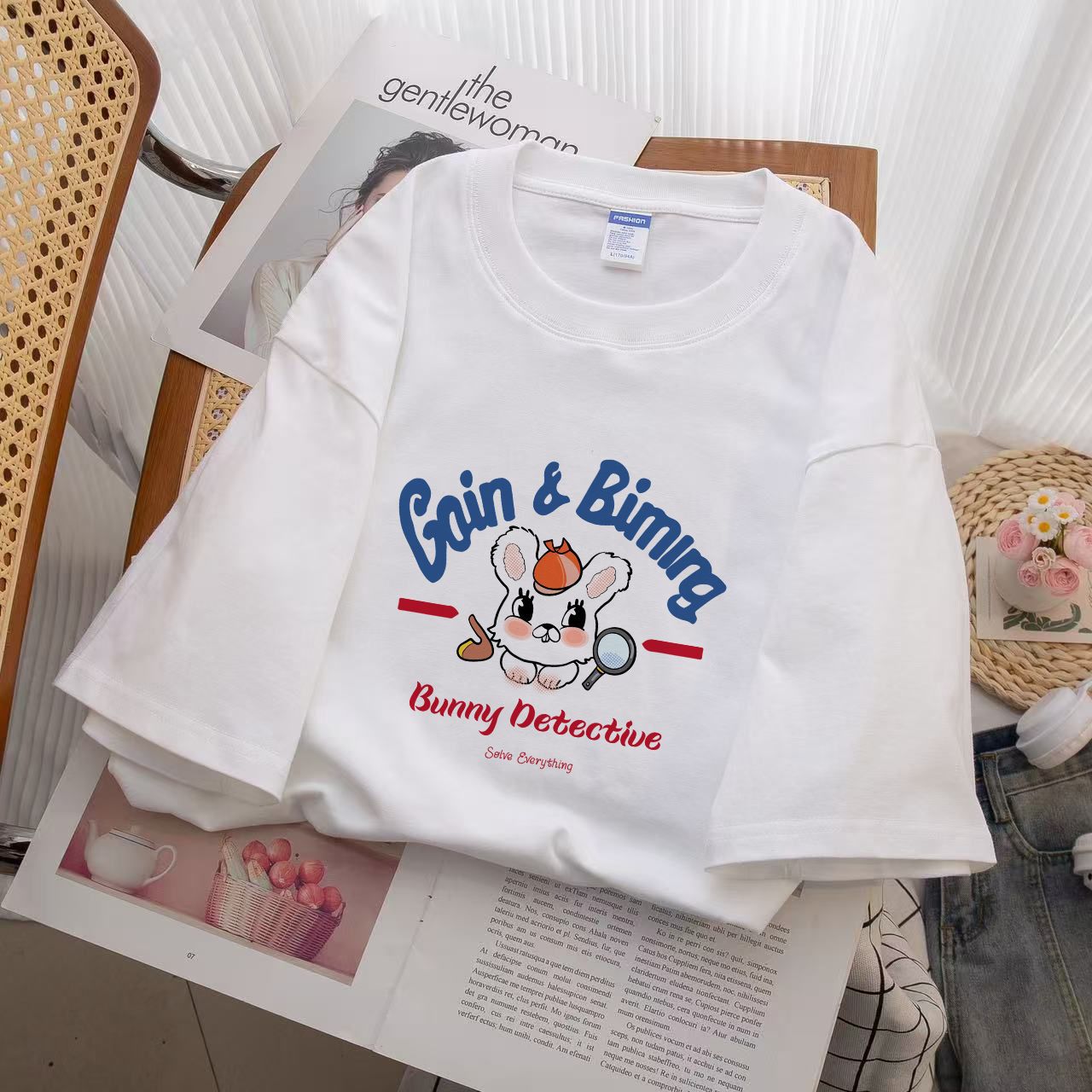 纯棉短袖t恤女夏季韩版宽松圆领洋气印花百搭原宿风上衣潮流女装