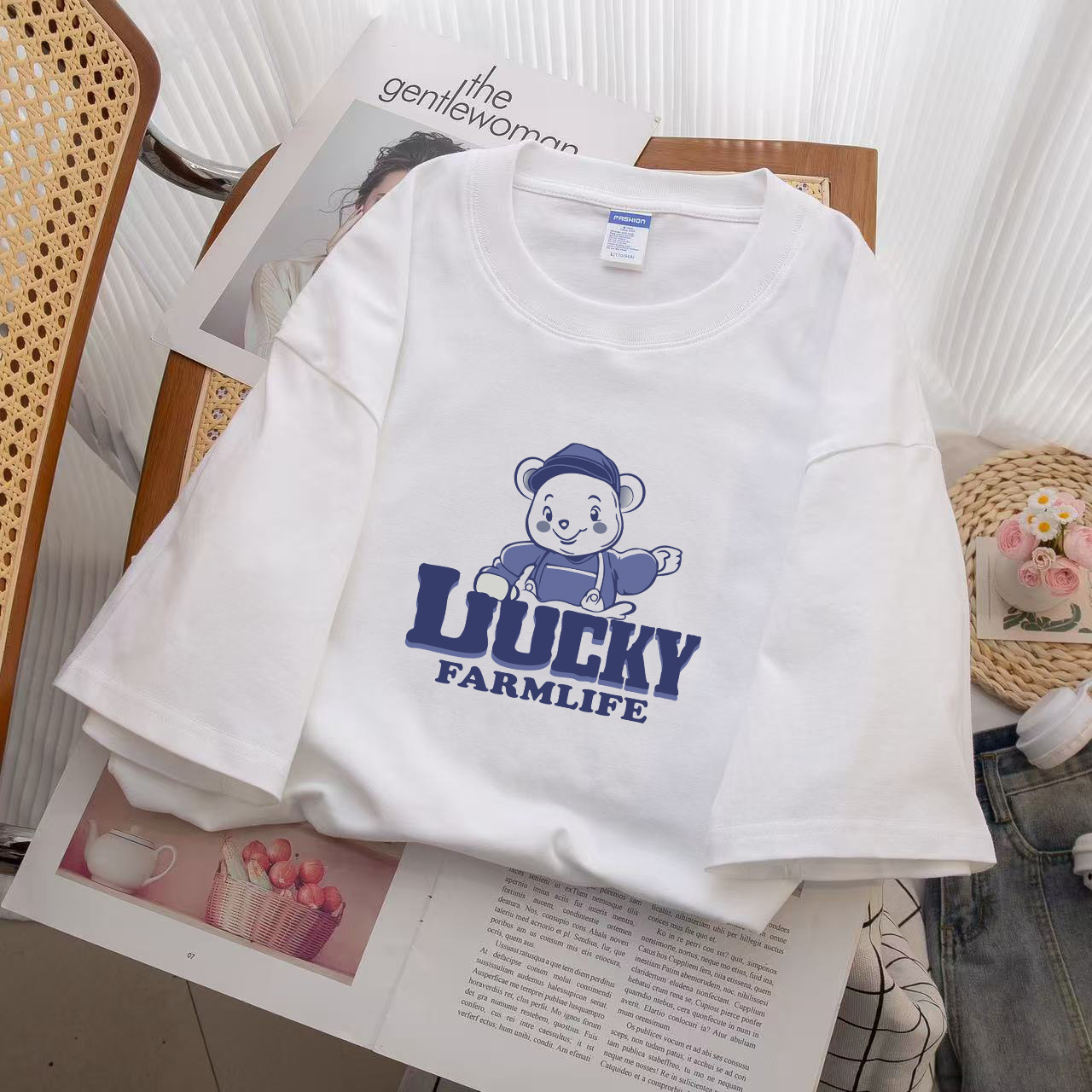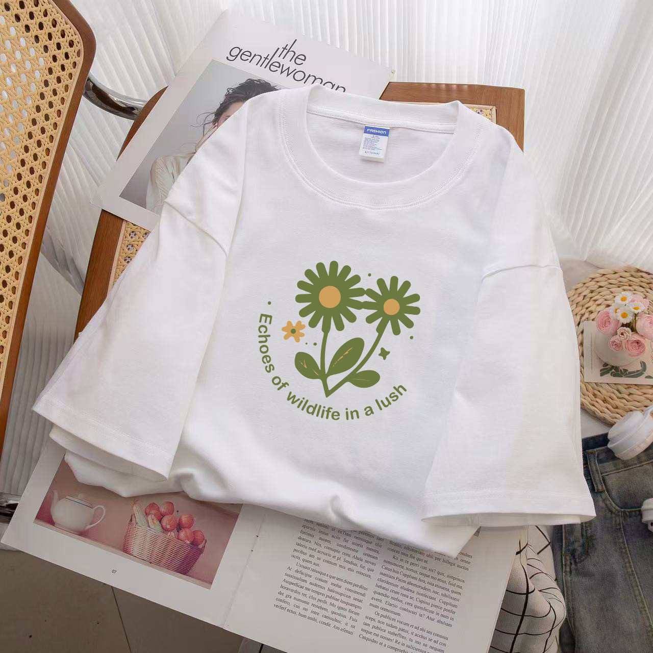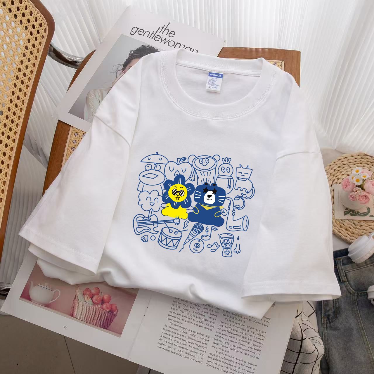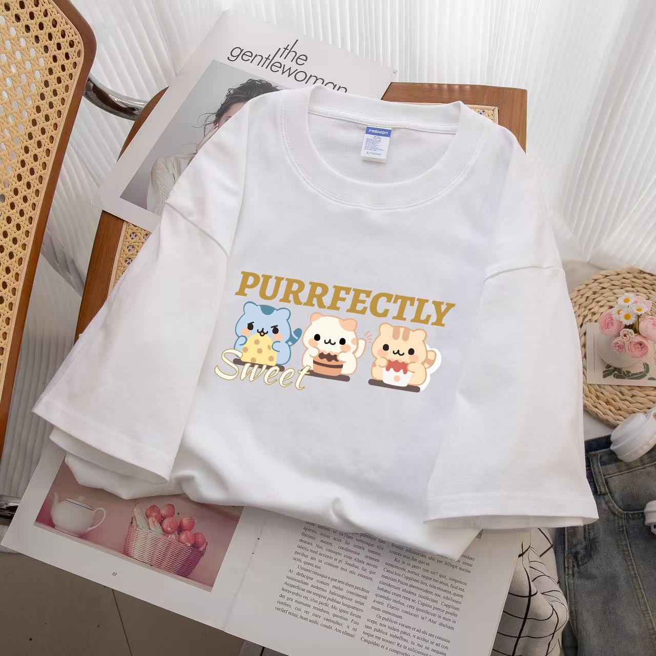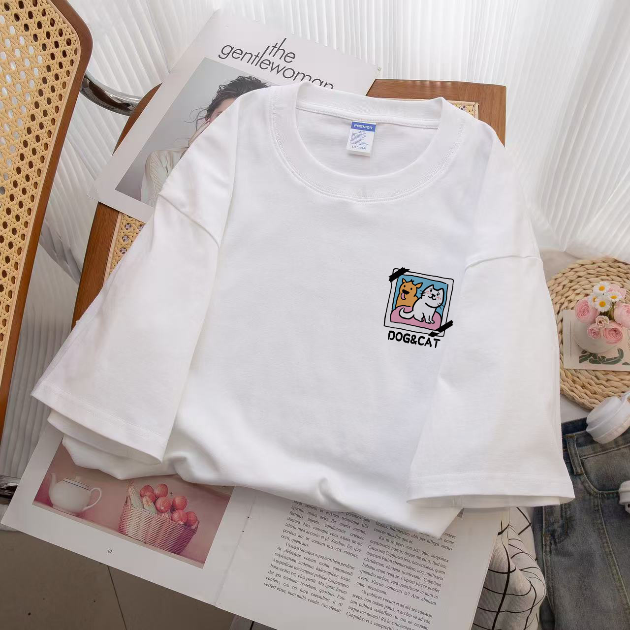 纯棉短袖t恤女夏季韩版宽松圆领洋气印花百搭原宿风上衣潮流女装