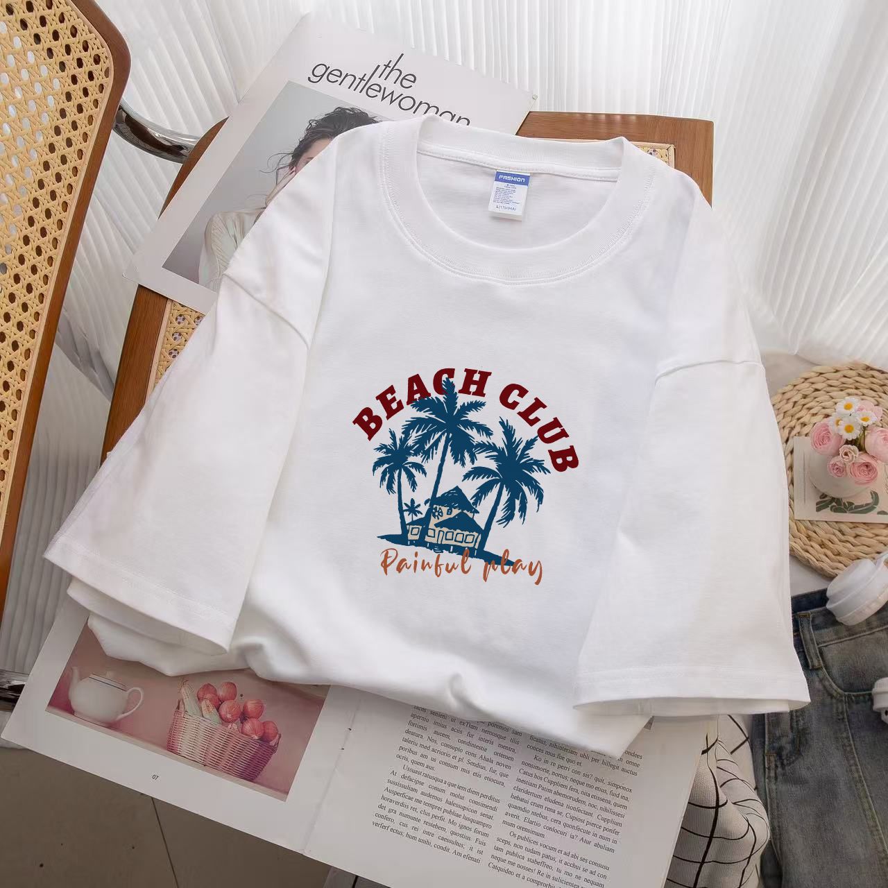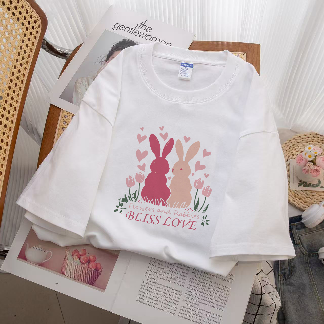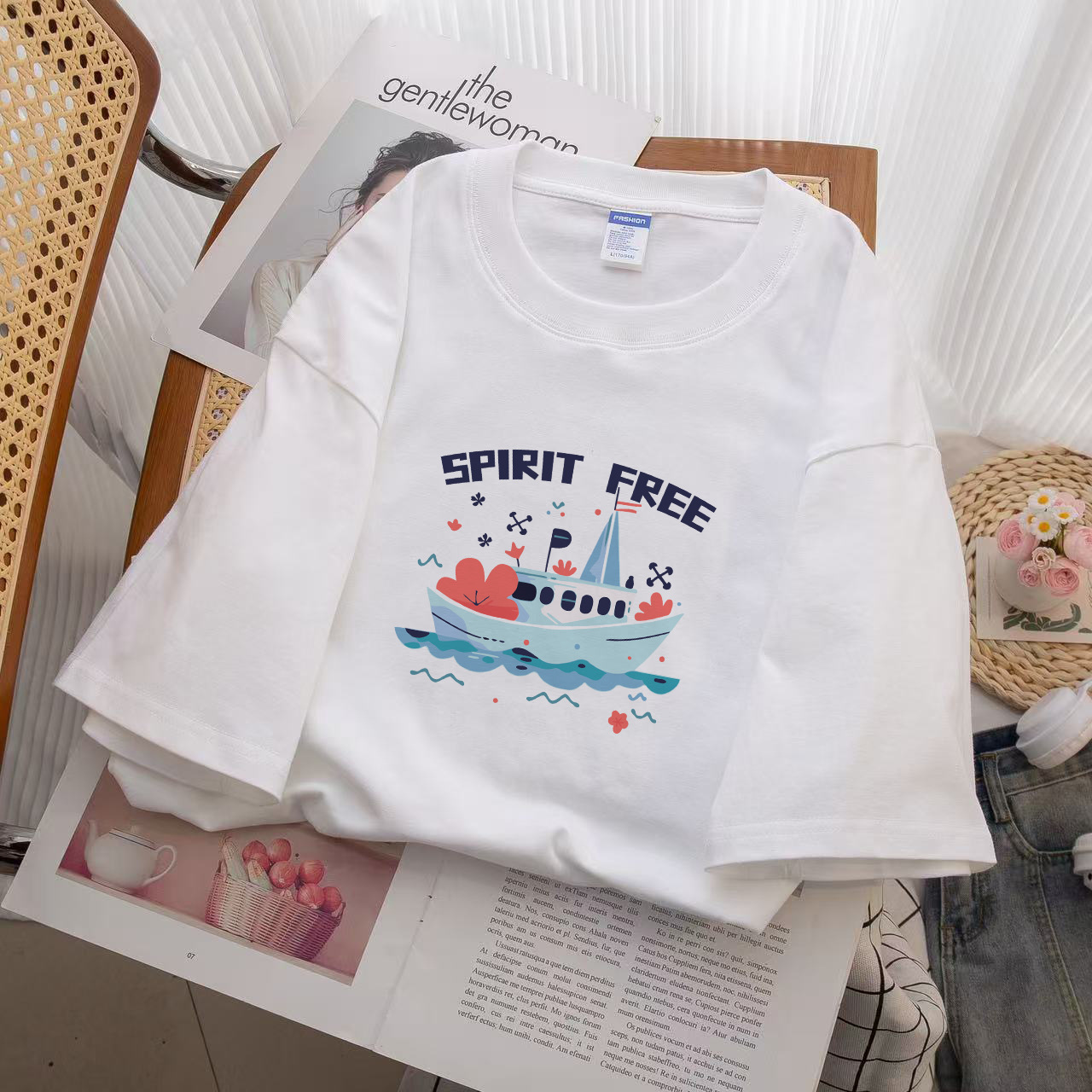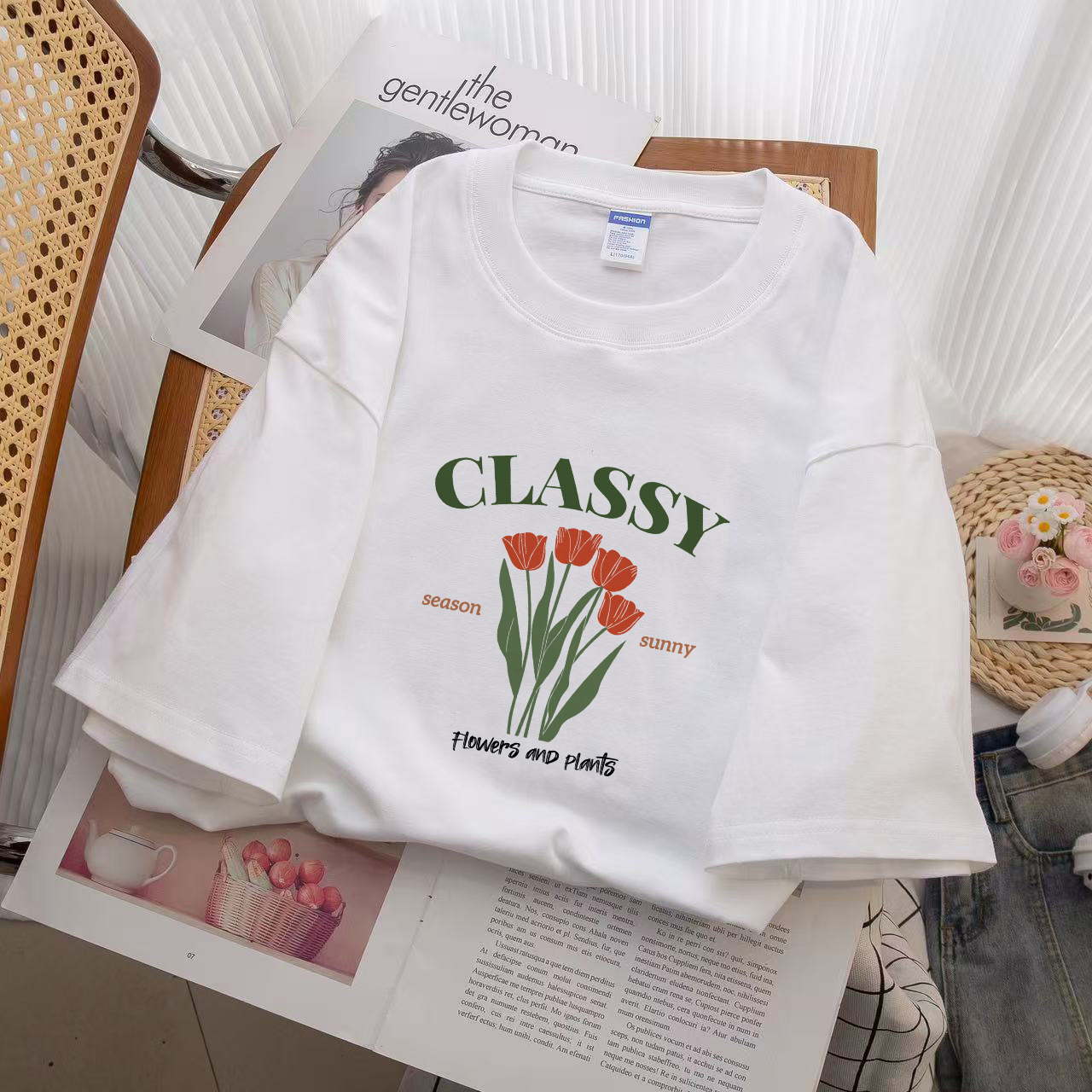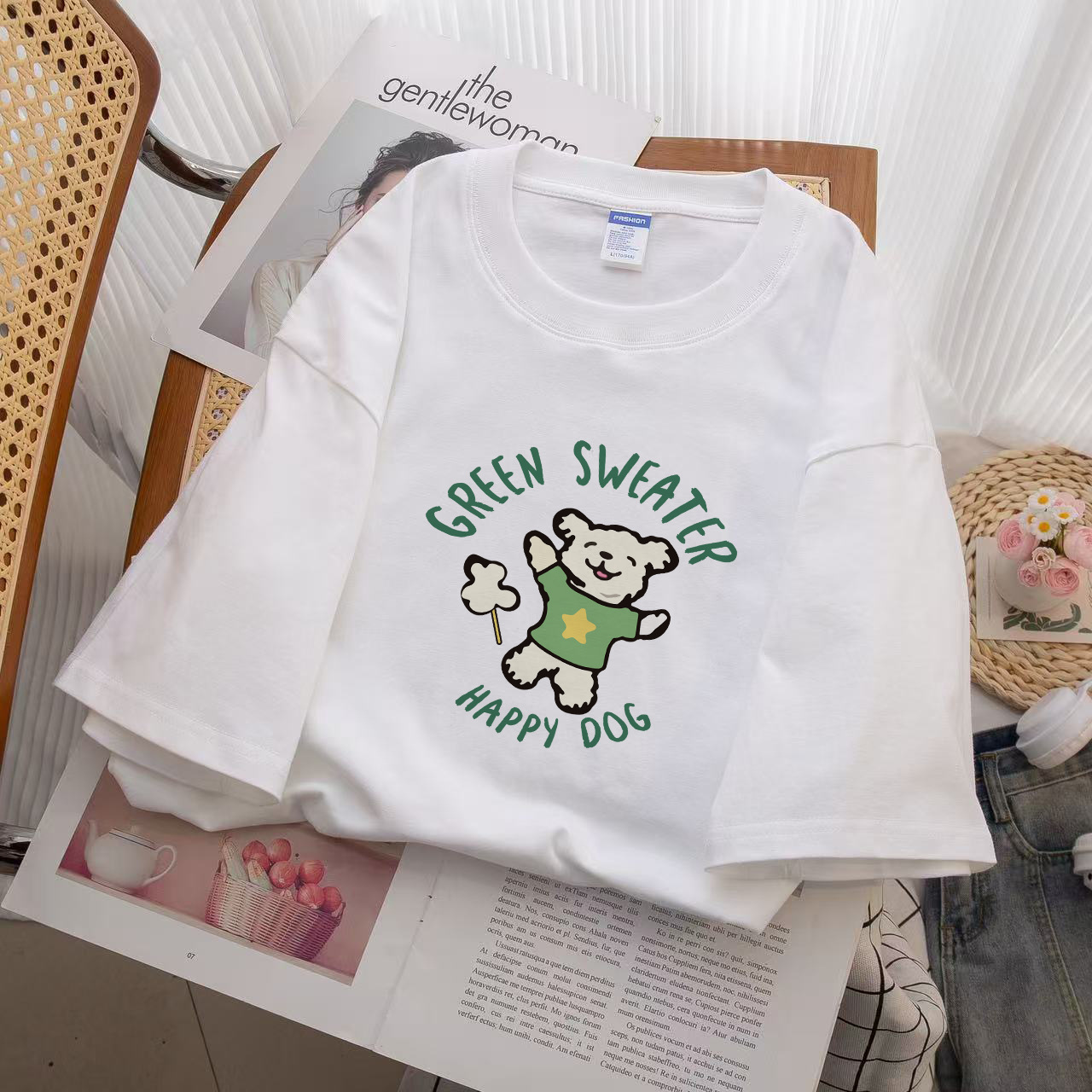 纯棉短袖t恤女夏季韩版宽松圆领洋气印花百搭原宿风上衣潮流女装