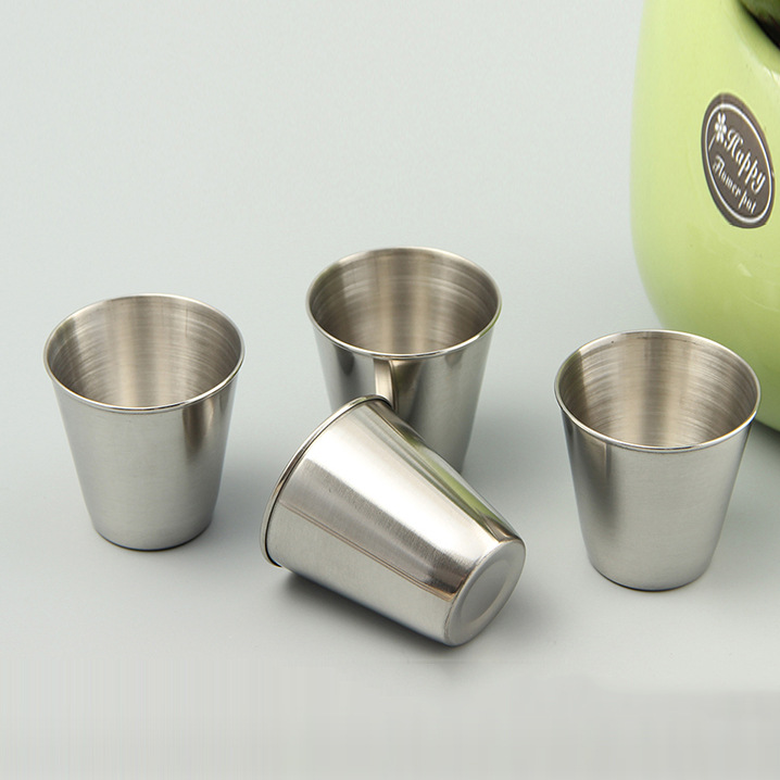 定制logo厂家直供不锈钢啤酒杯印制单层白酒口杯卷边不锈钢烈酒杯