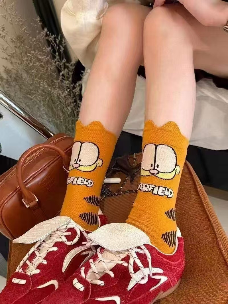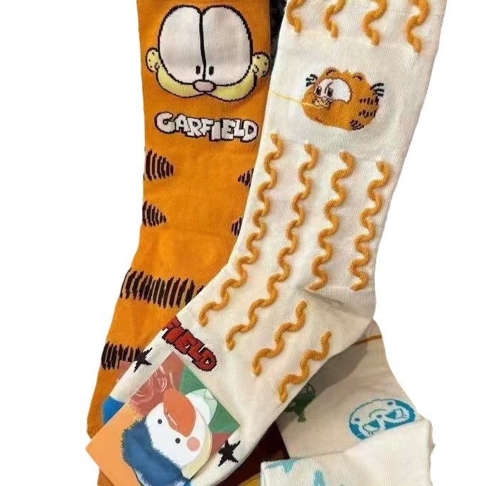 秋冬卡通加菲猫日系可爱袜子少女长袜创意搞怪设计堆堆袜子中筒袜