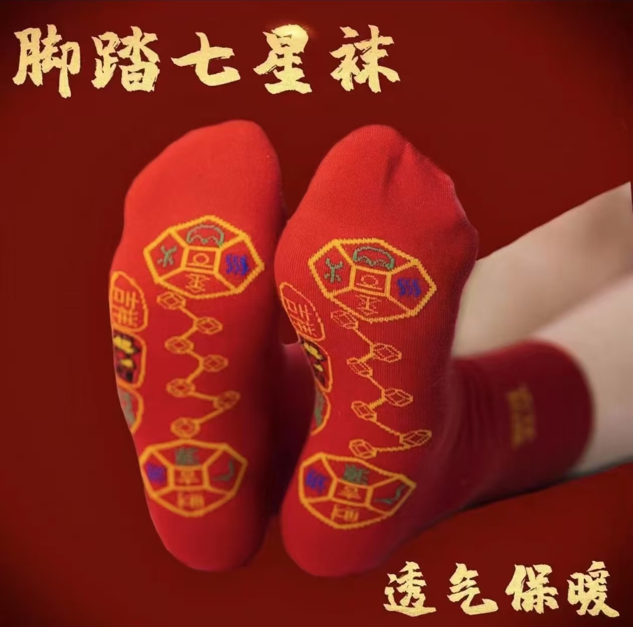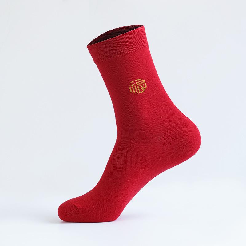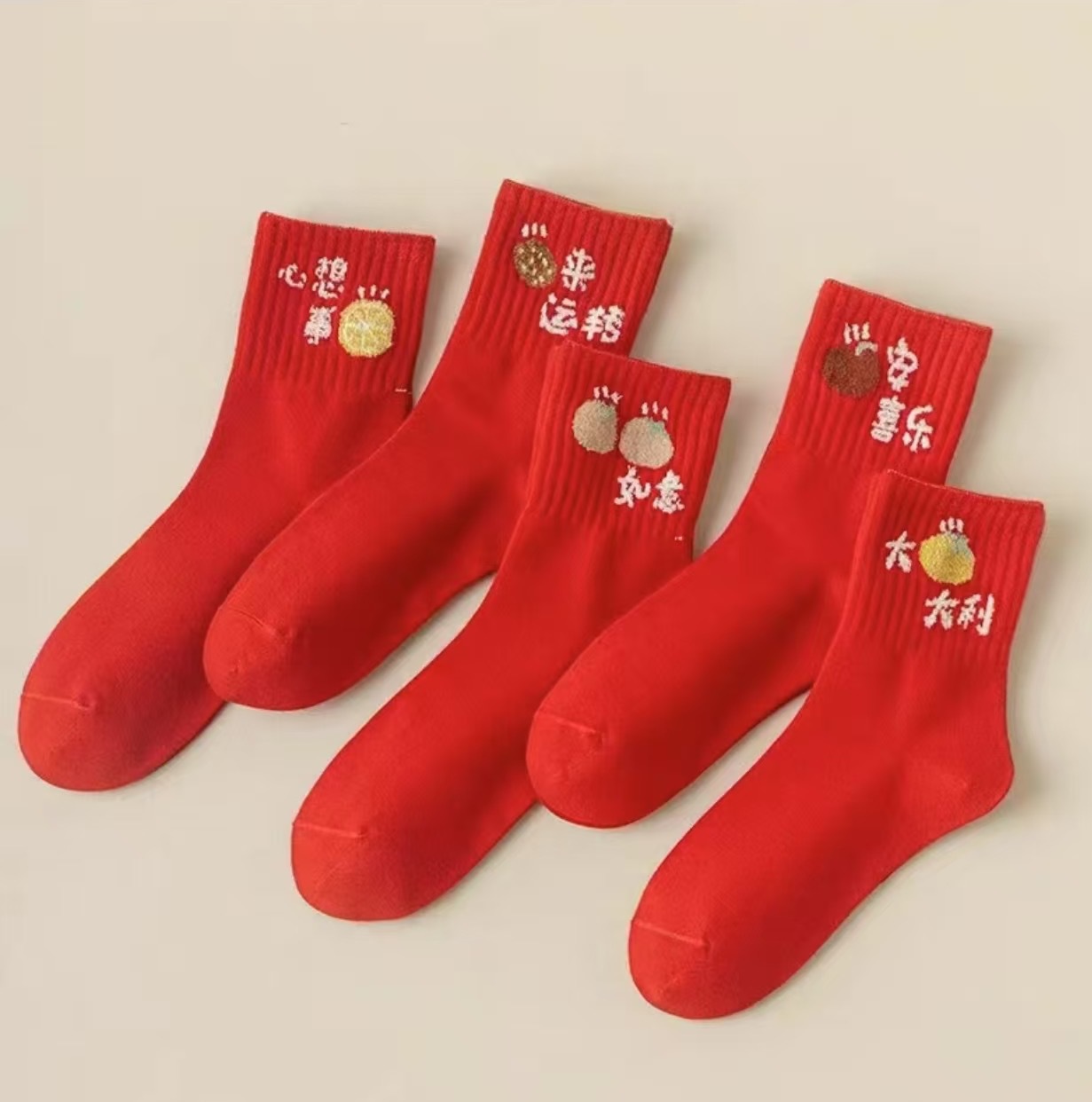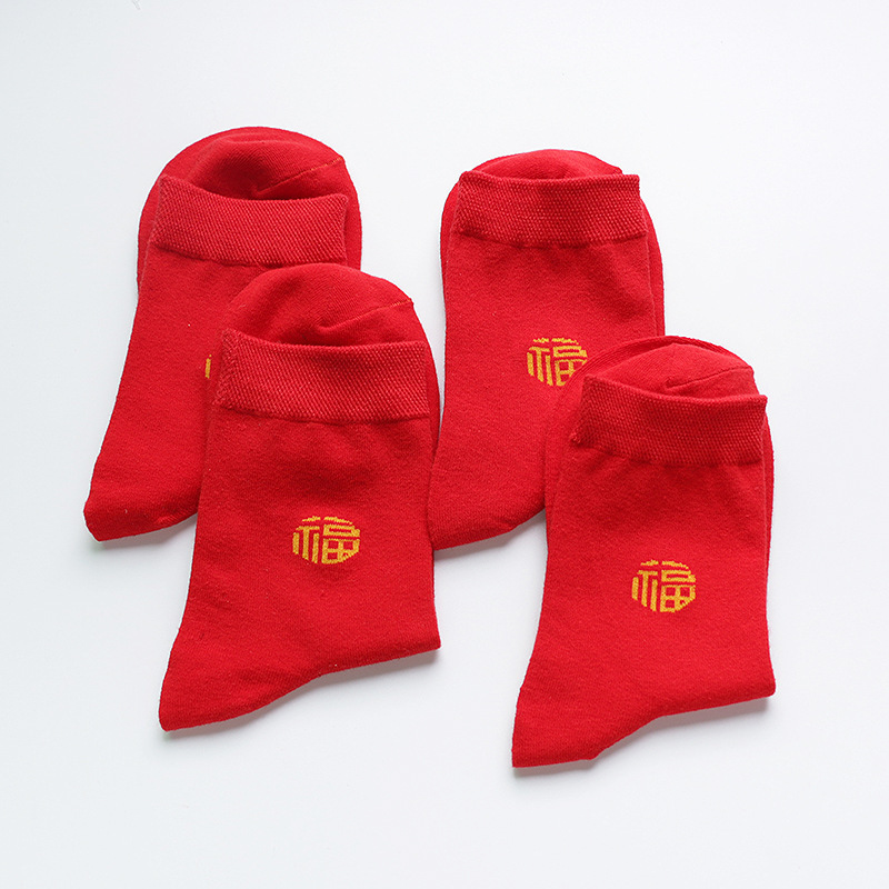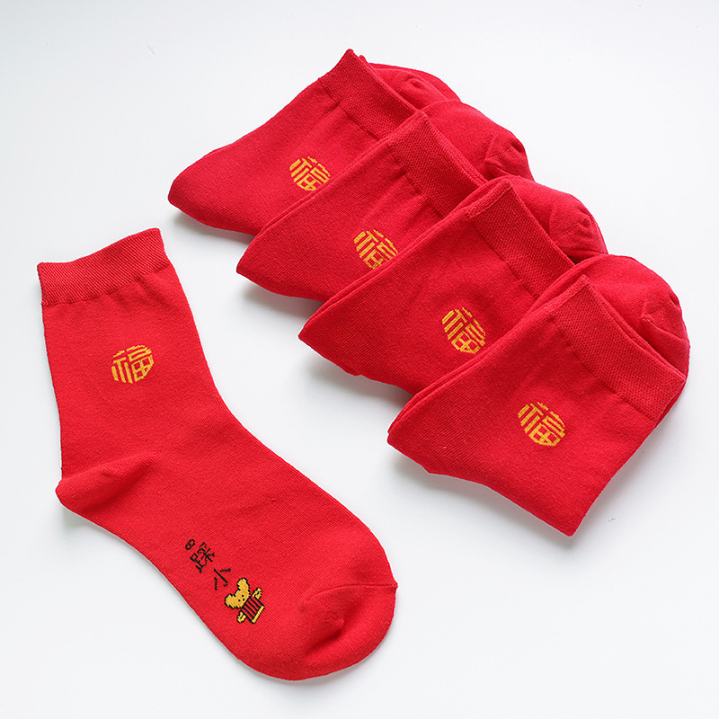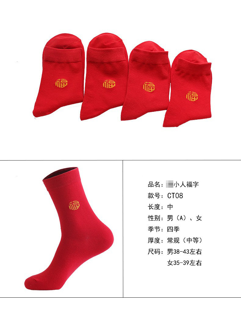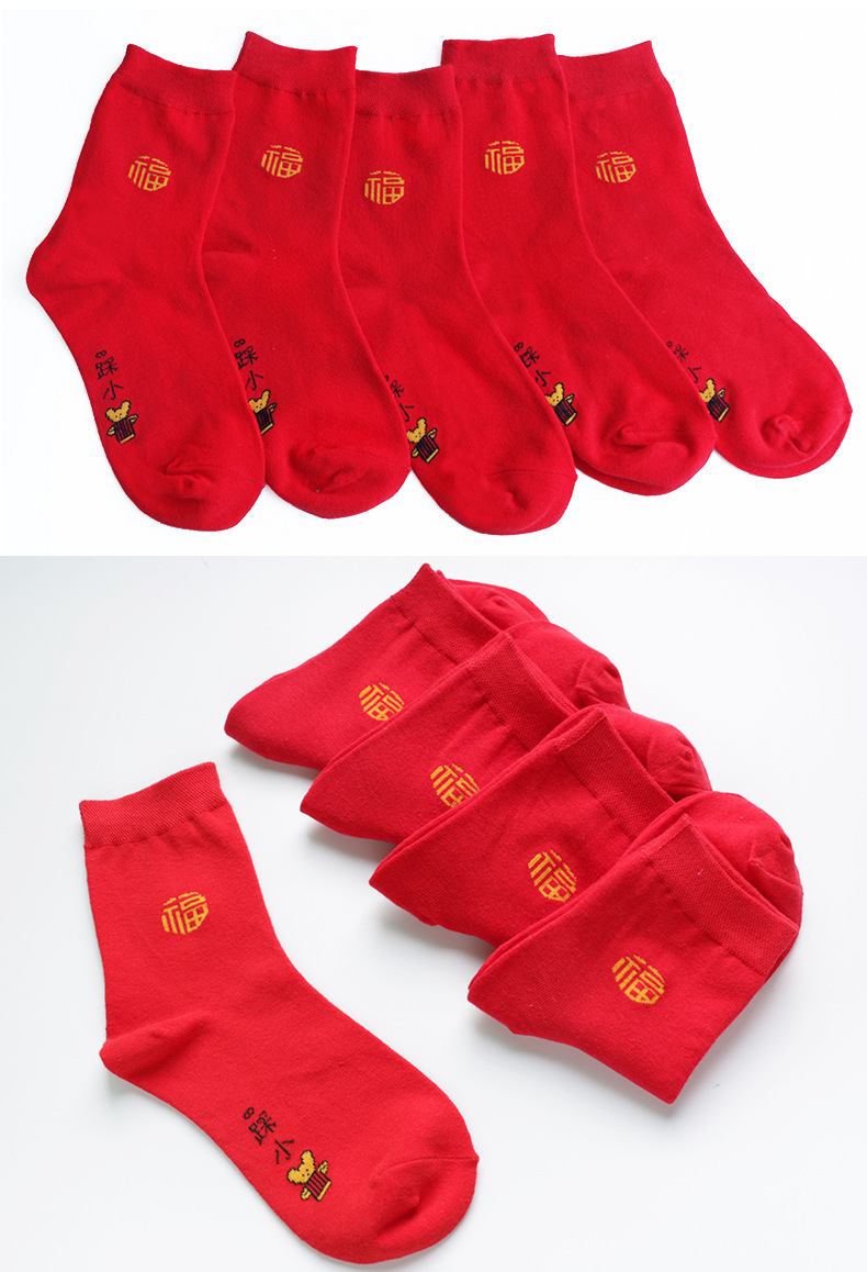 现货本命年红袜子男女福字中筒袜小人大红色新年袜喜庆袜子好运袜