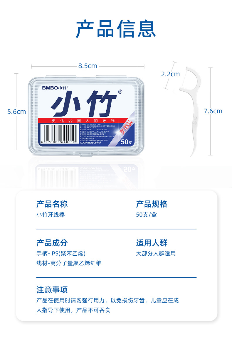 小竹牙线 牙线棒 一次性独立包装高分子50支便携家庭盒装工厂预售