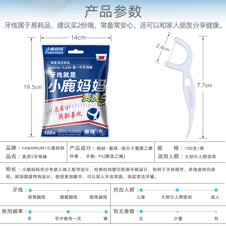 小鹿妈妈牙线棒 便携随身 牙线 盒剔牙签线牙线定制袋装批发厂家