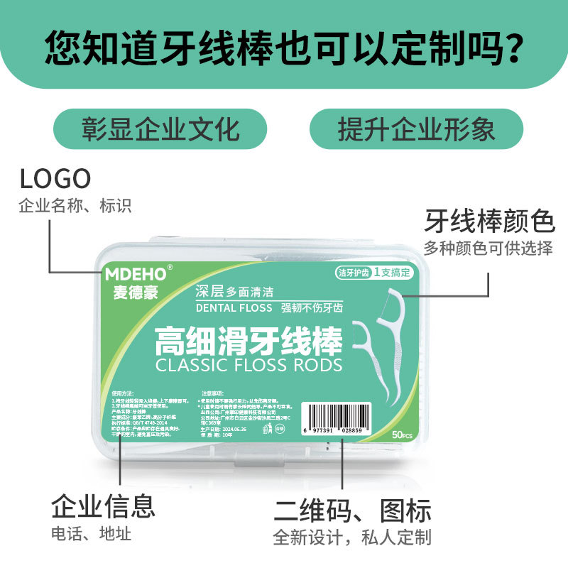 超细牙线棒50支盒装批发高分子牙线签独立包装诊所牙线定制logo