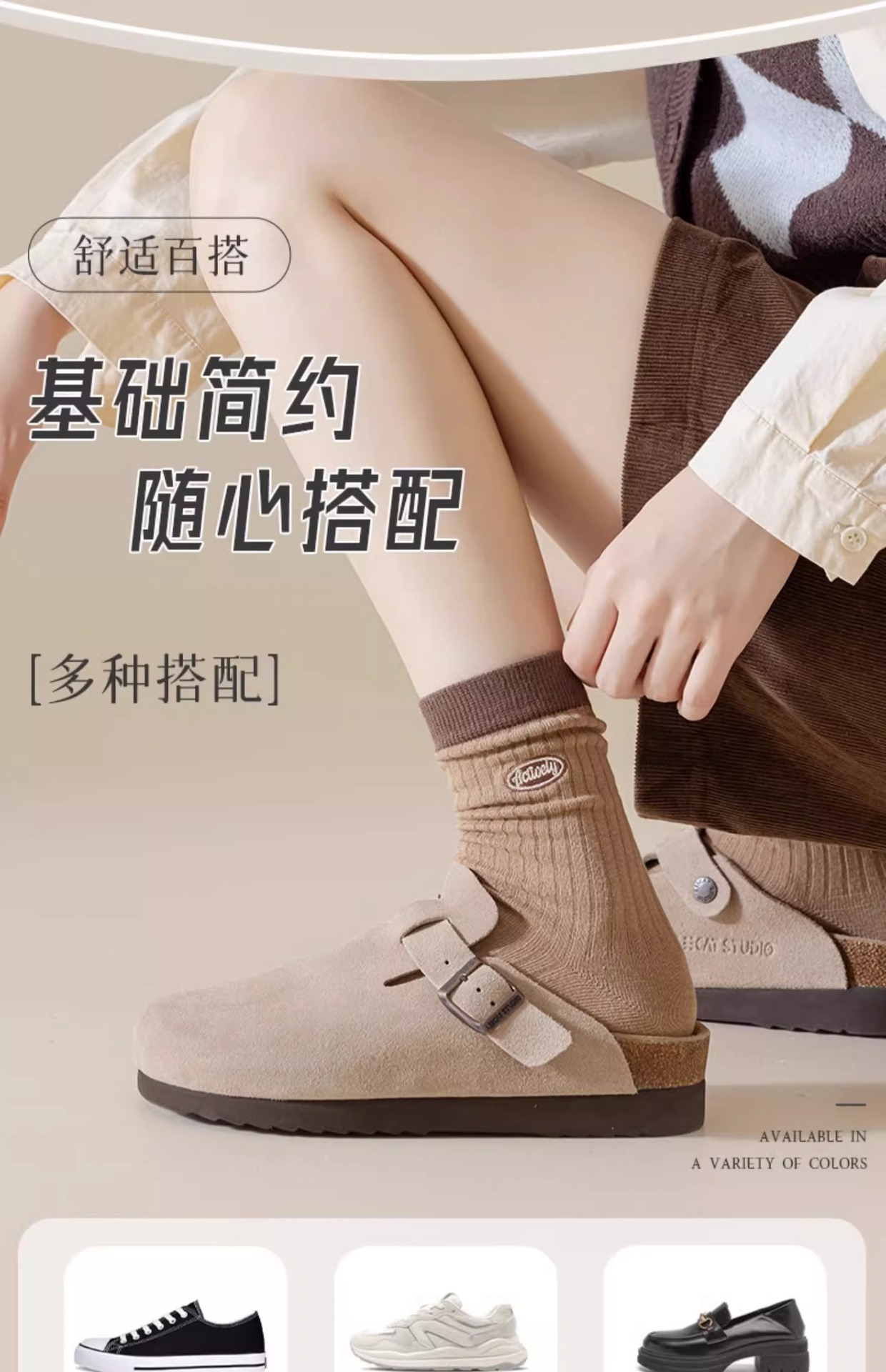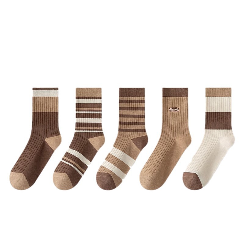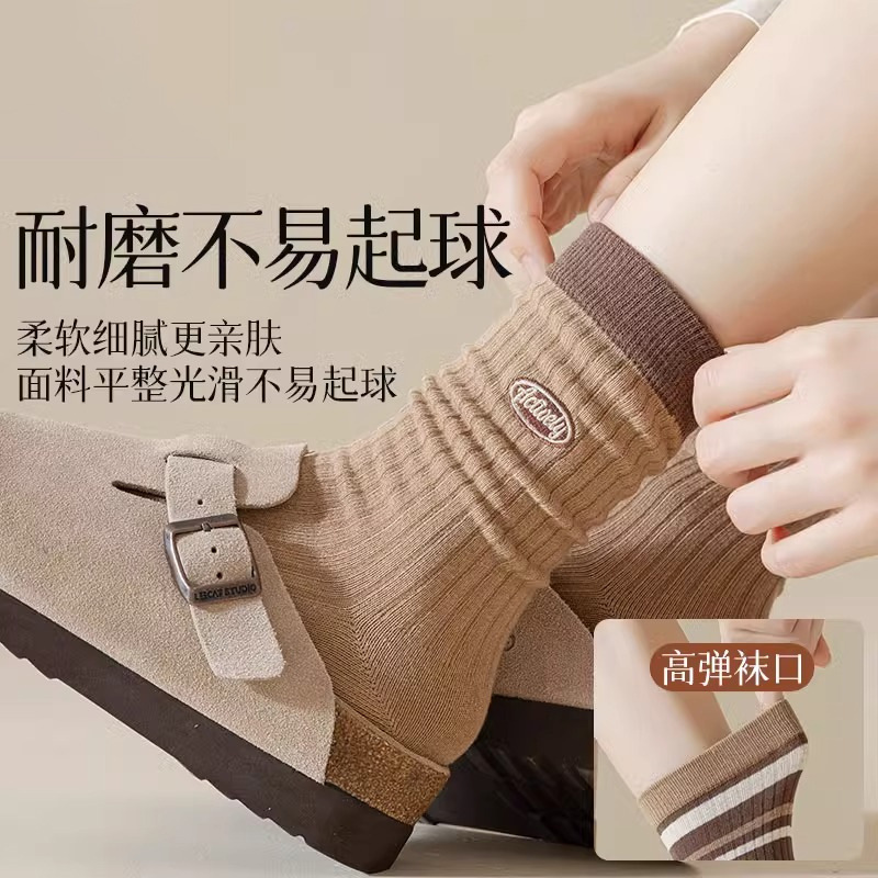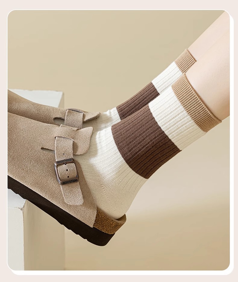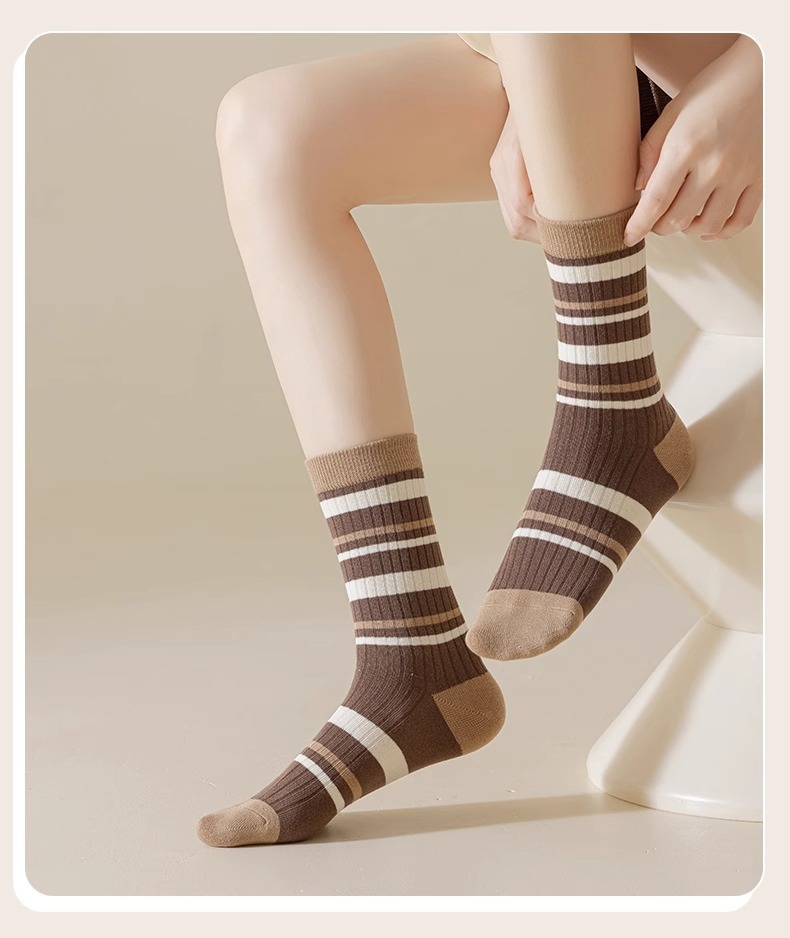 秋冬袜子堆堆女中筒袜子女士中筒新款条纹长袜吸汗美拉德袜子长筒