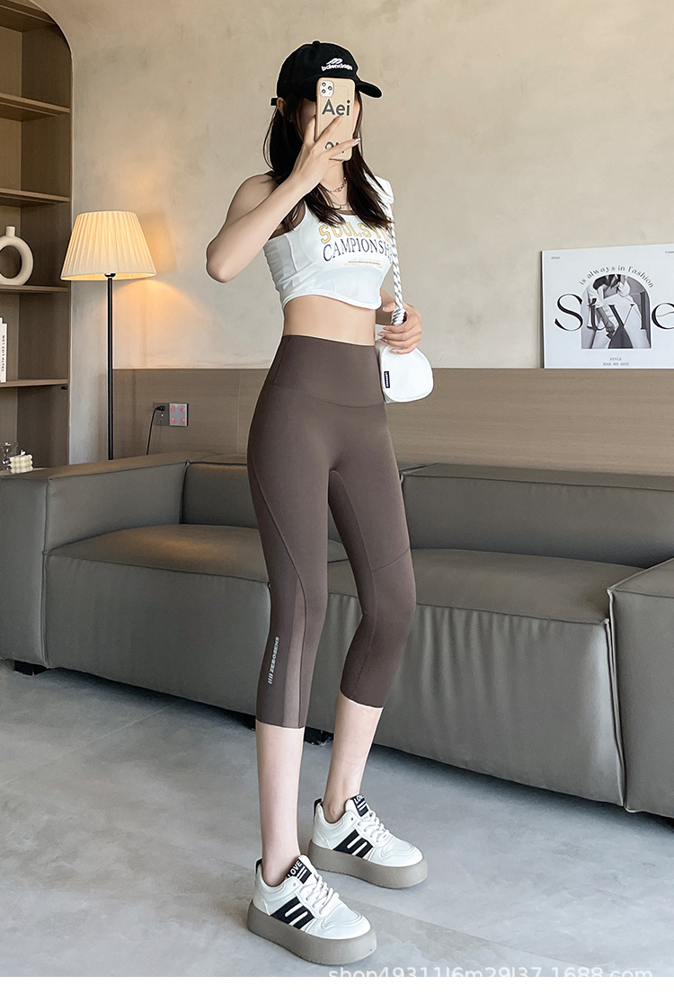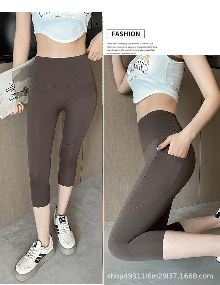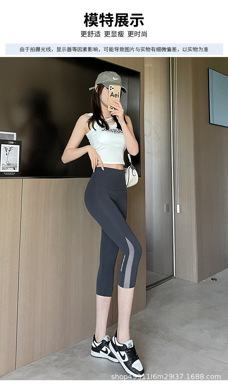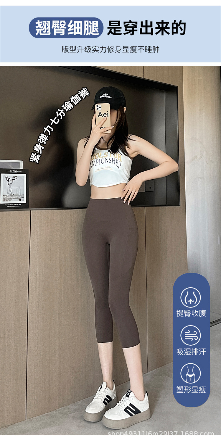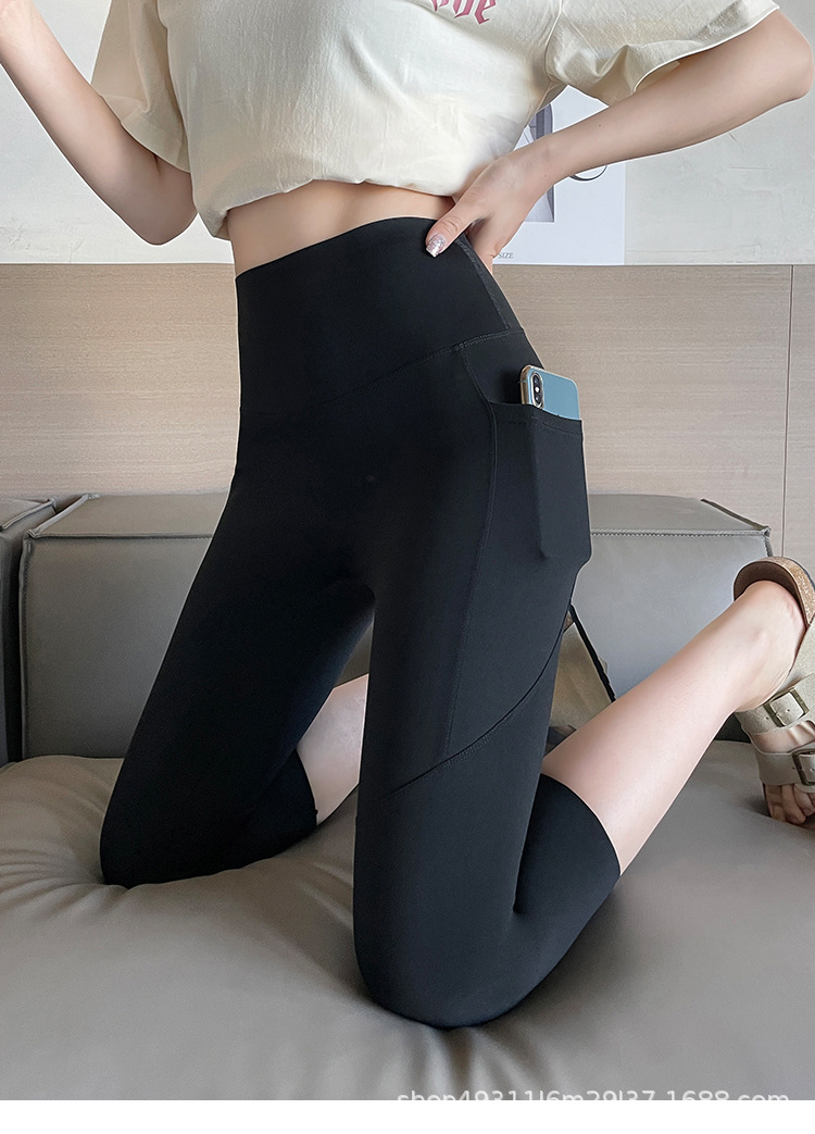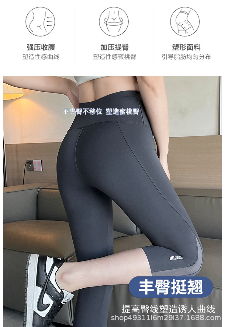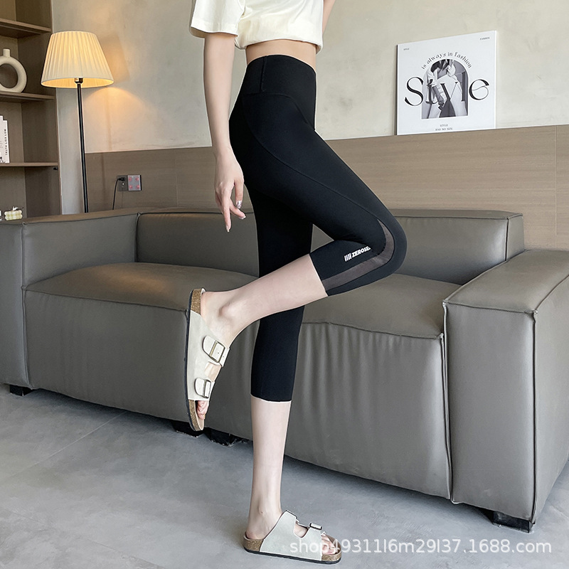 口袋七分鲨鱼裤女外穿夏季薄款收腹提臀瑜伽芭比裤高腰网纱打底裤