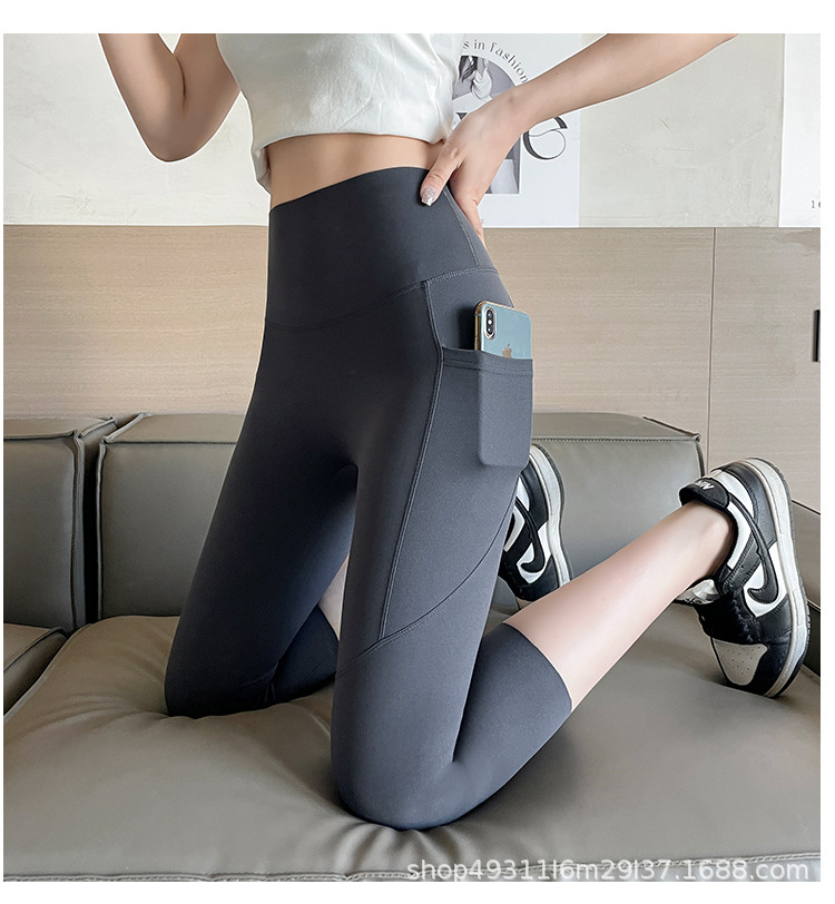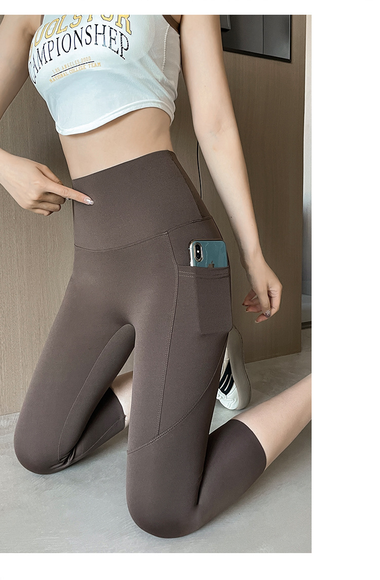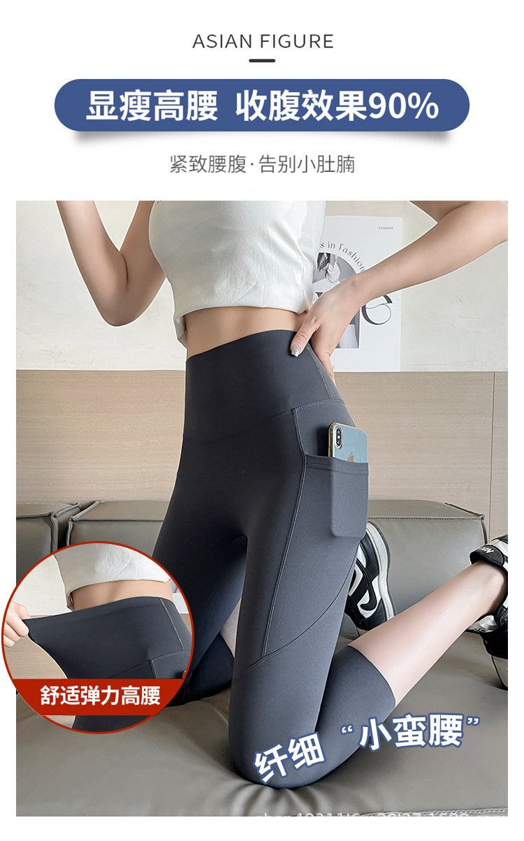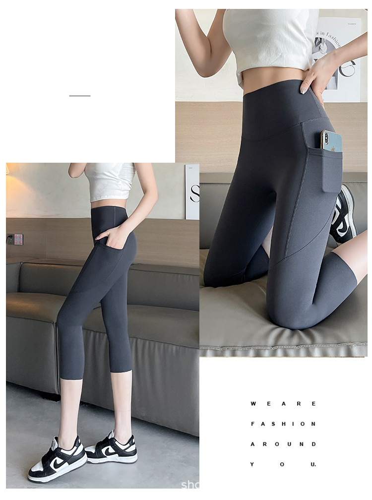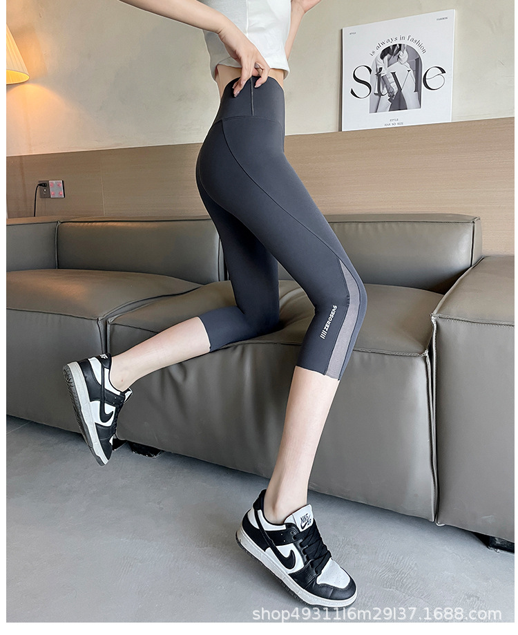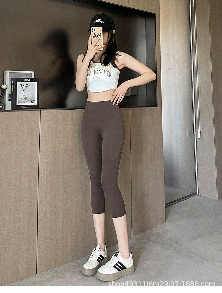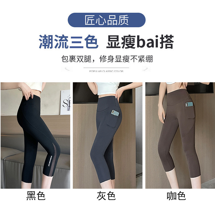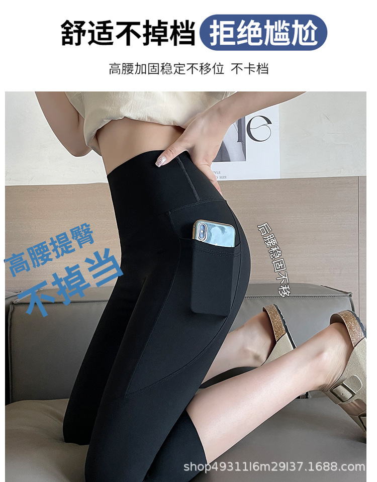 口袋七分鲨鱼裤女外穿夏季薄款收腹提臀瑜伽芭比裤高腰网纱打底裤