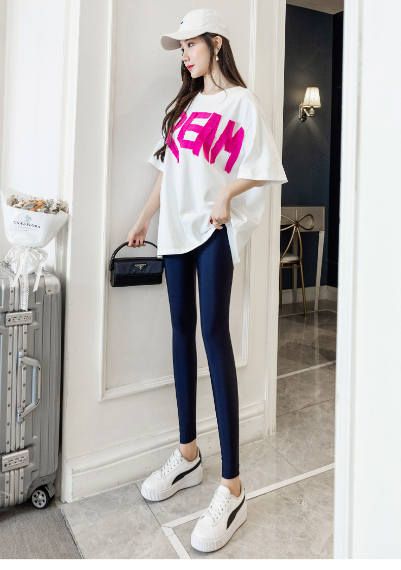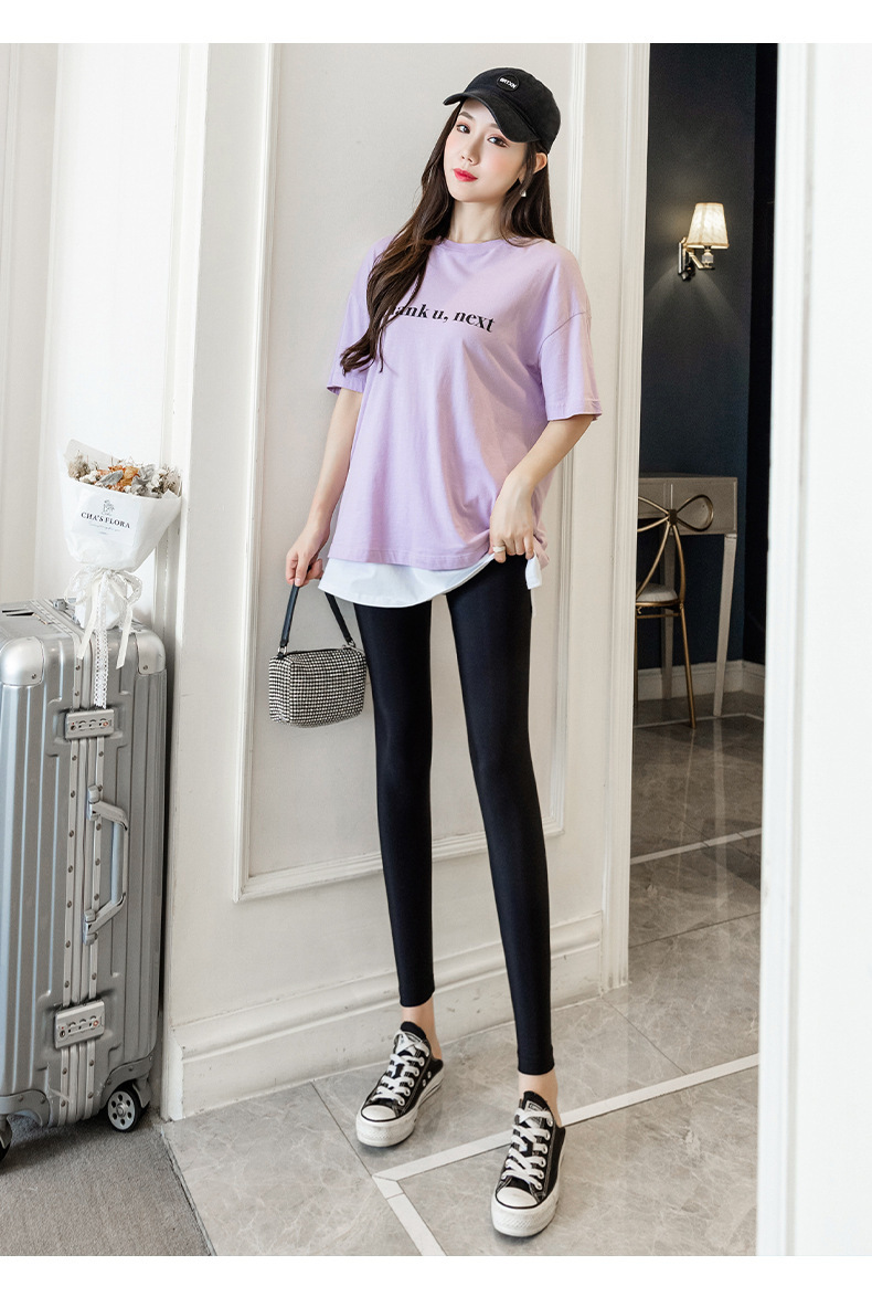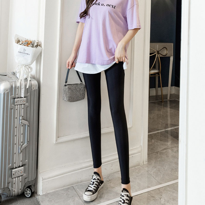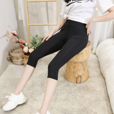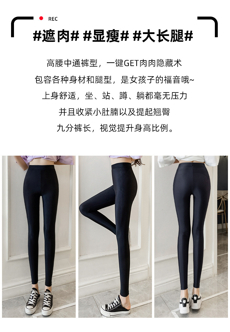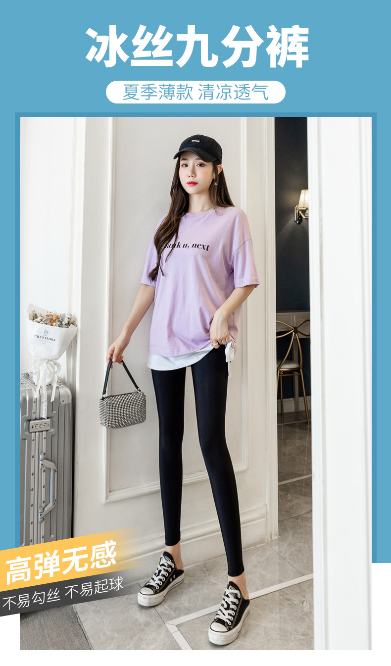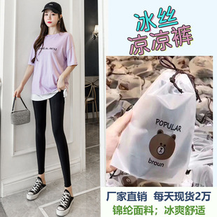 打底裤女外穿春夏季小熊冰丝薄款弹力大码紧身显瘦超薄高腰九分裤