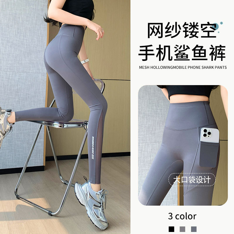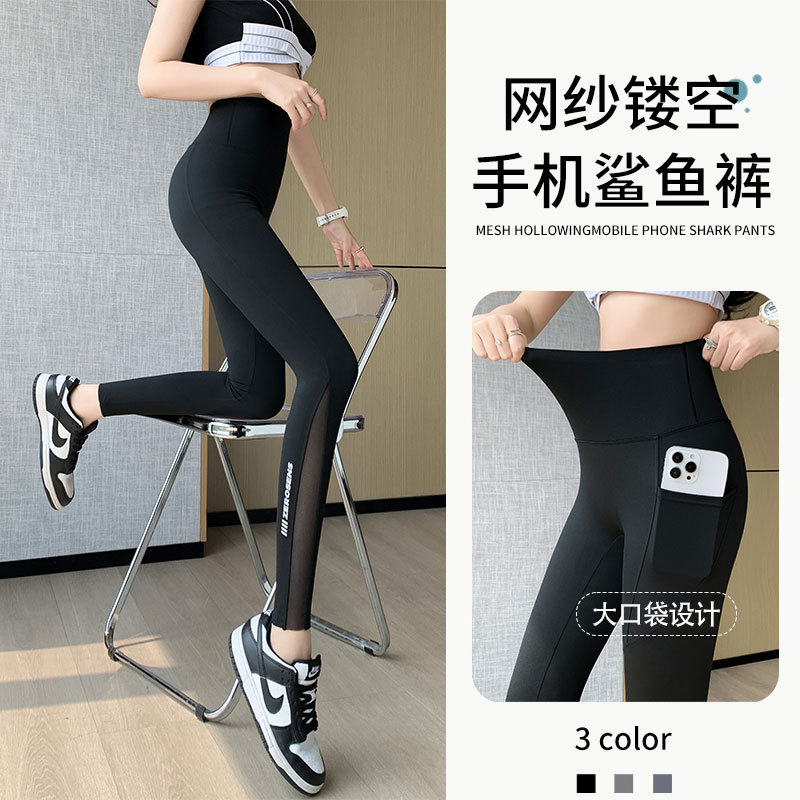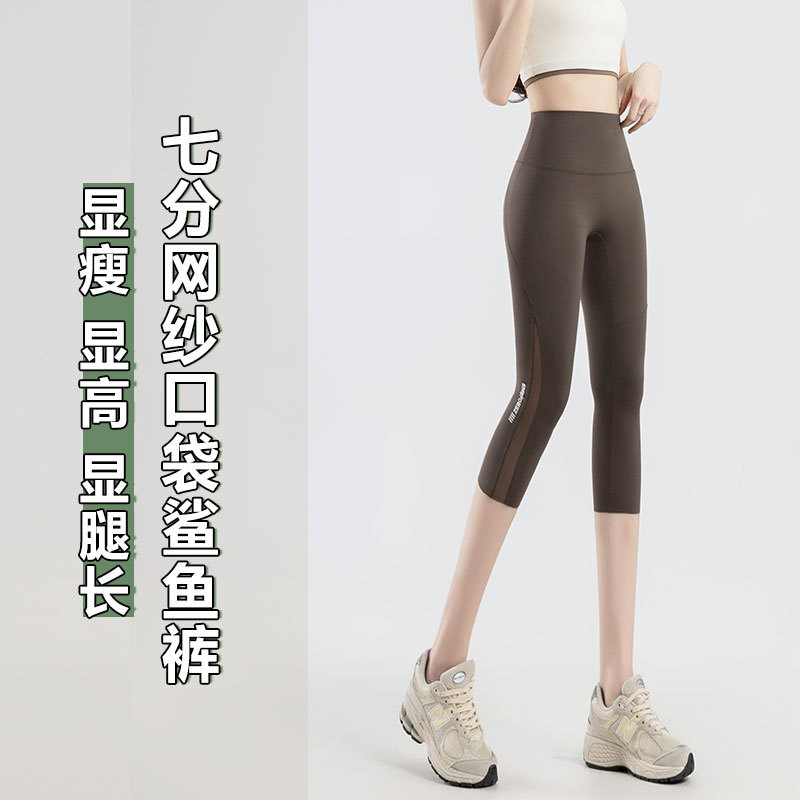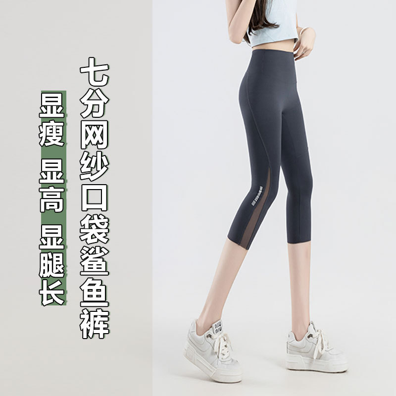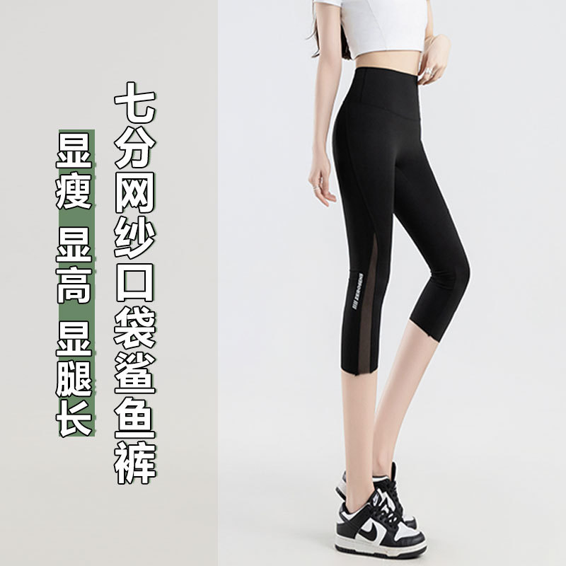 鲨鱼裤夏季外穿锦纶透气防晒薄款女口袋九分瑜伽裤收腹紧身打底裤