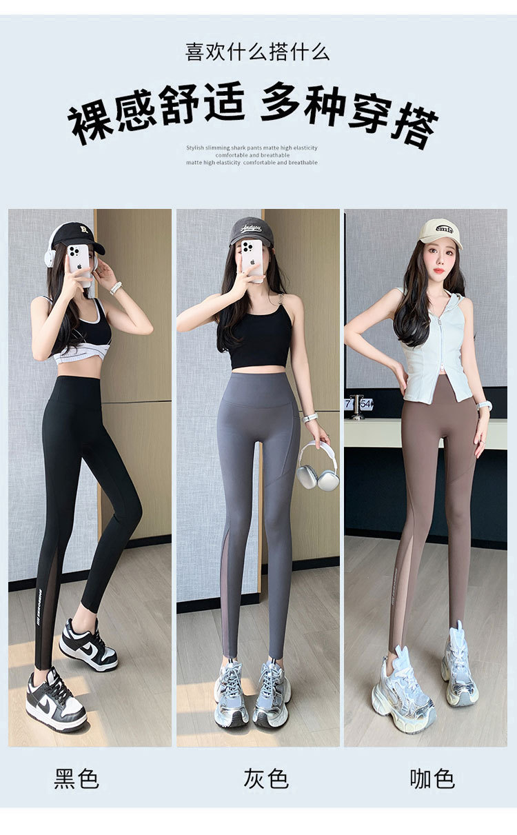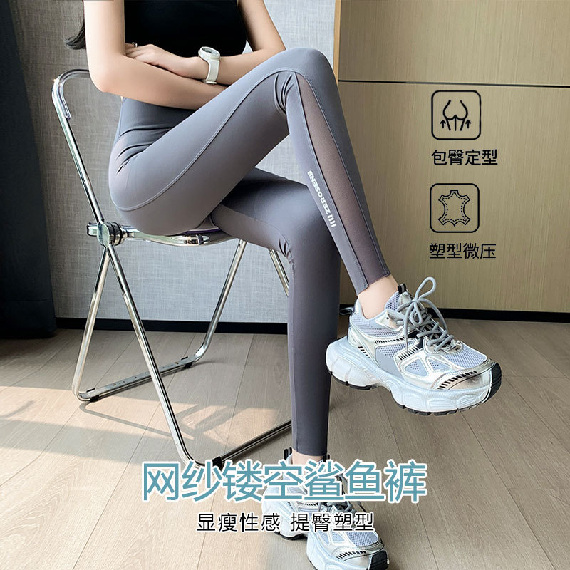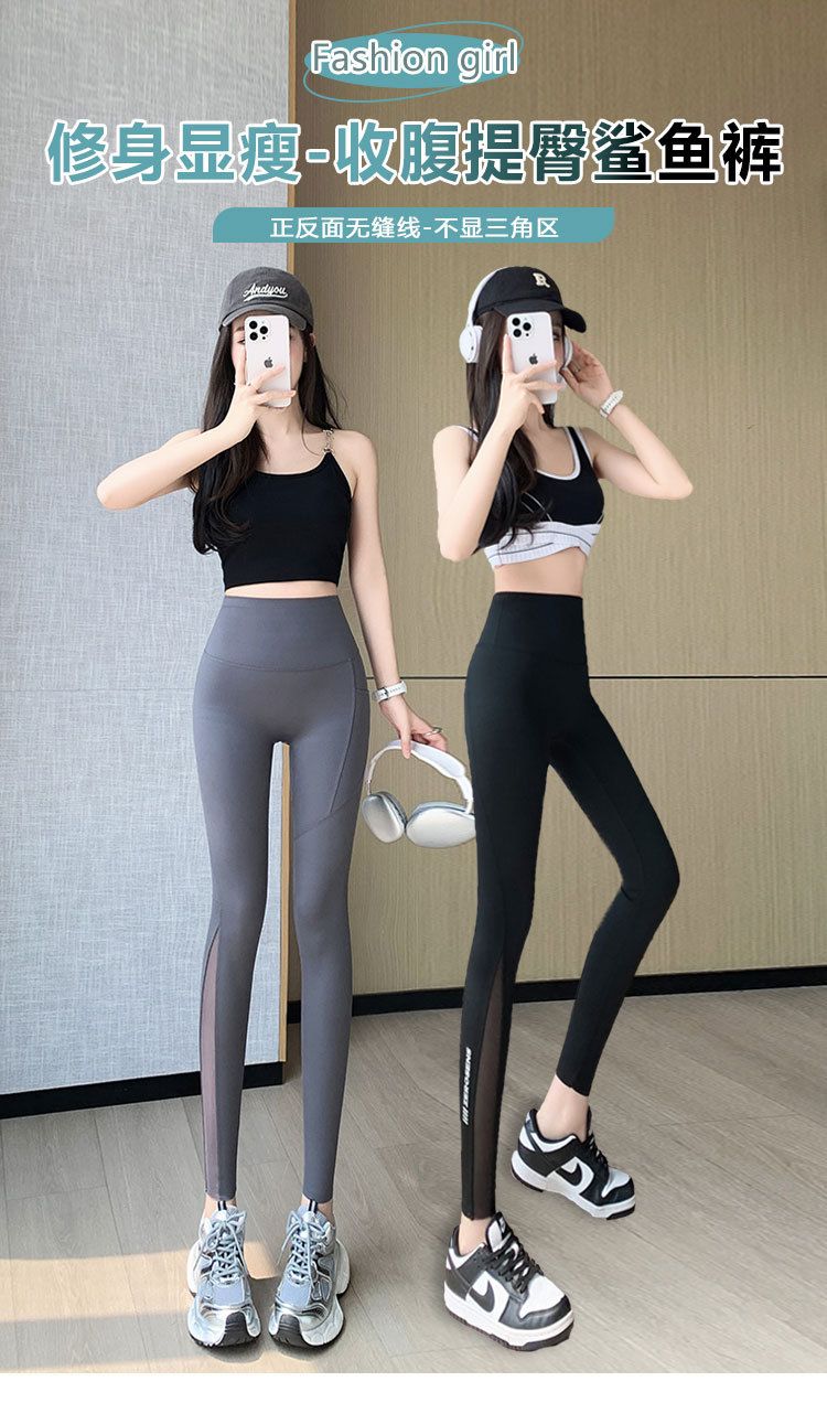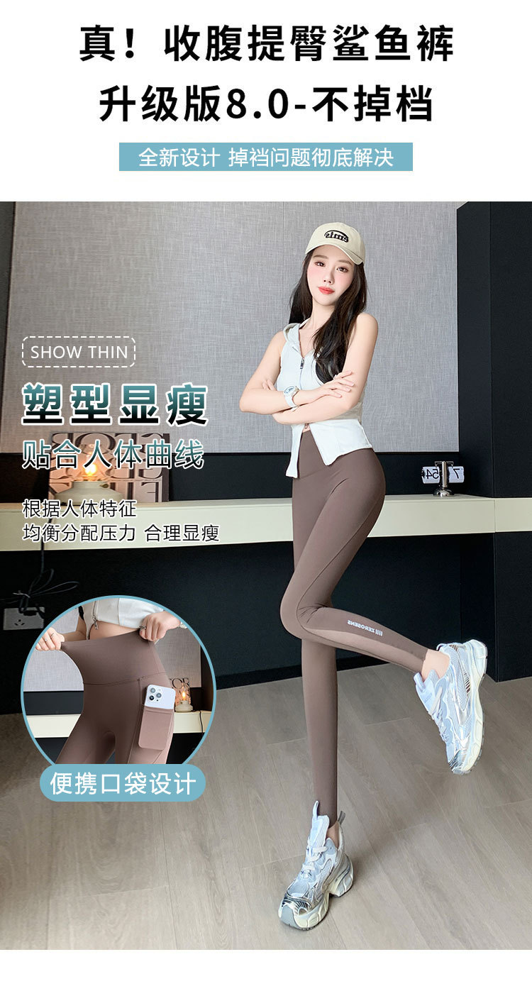 鲨鱼裤夏季外穿锦纶透气防晒薄款女口袋九分瑜伽裤收腹紧身打底裤