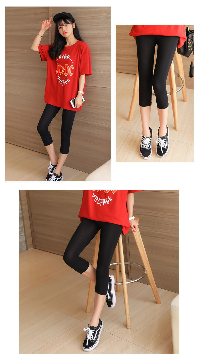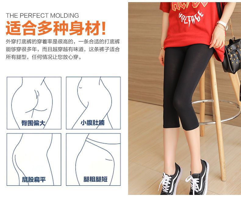 夏季莫代尔七分裤打底裤高腰薄款弹力修身外穿加肥加大码显瘦女裤