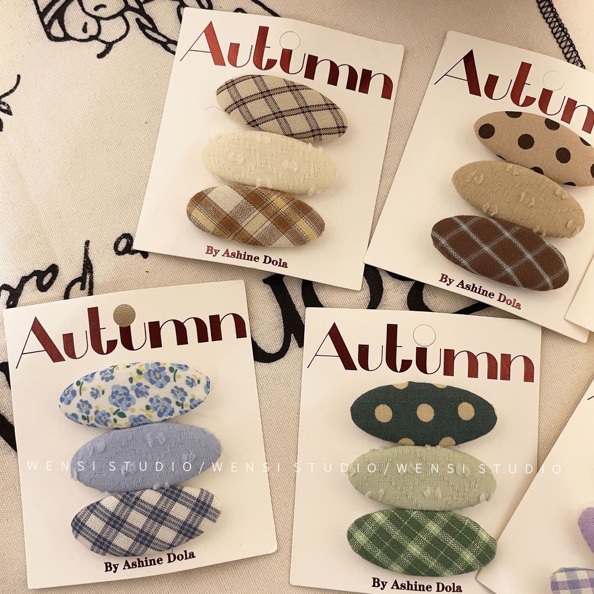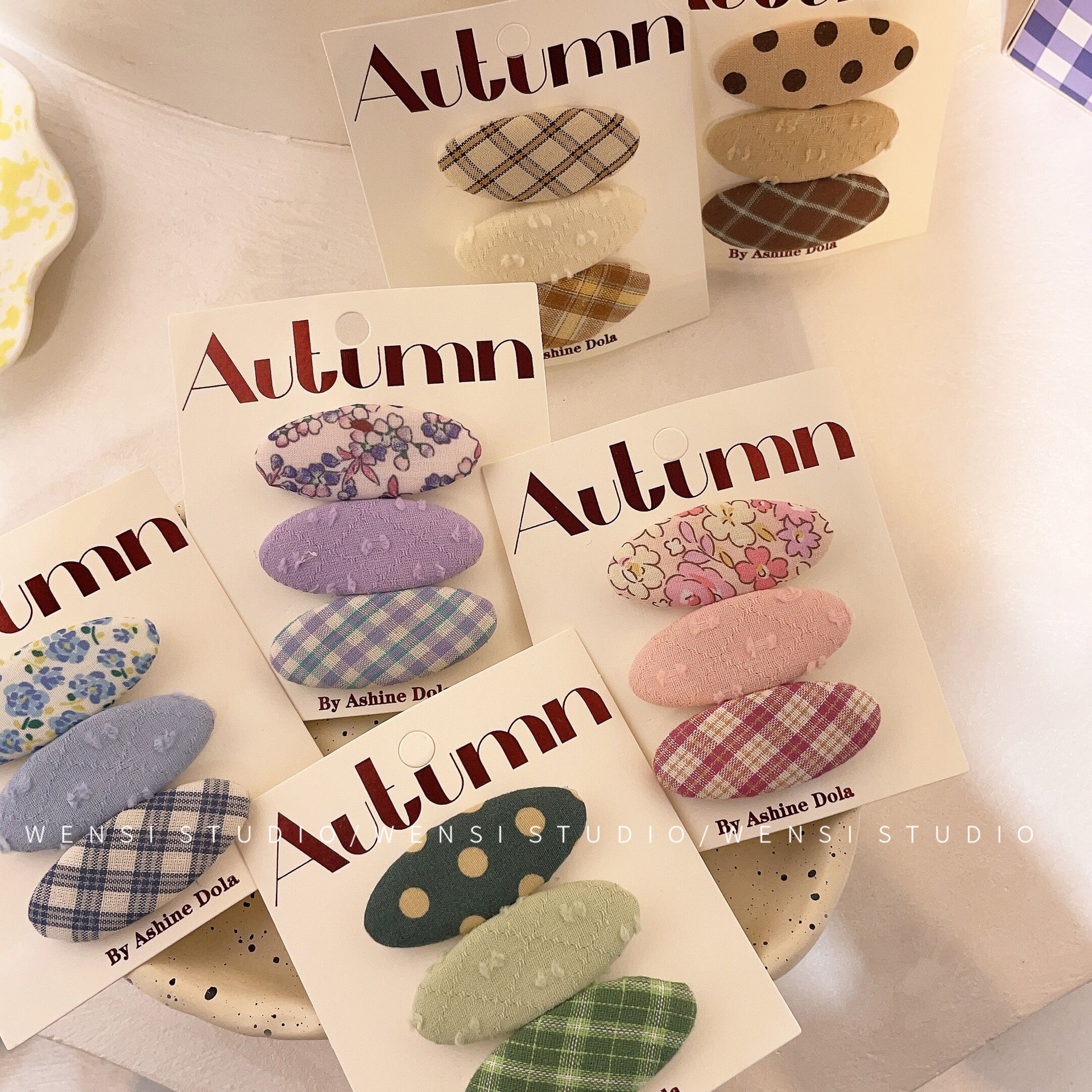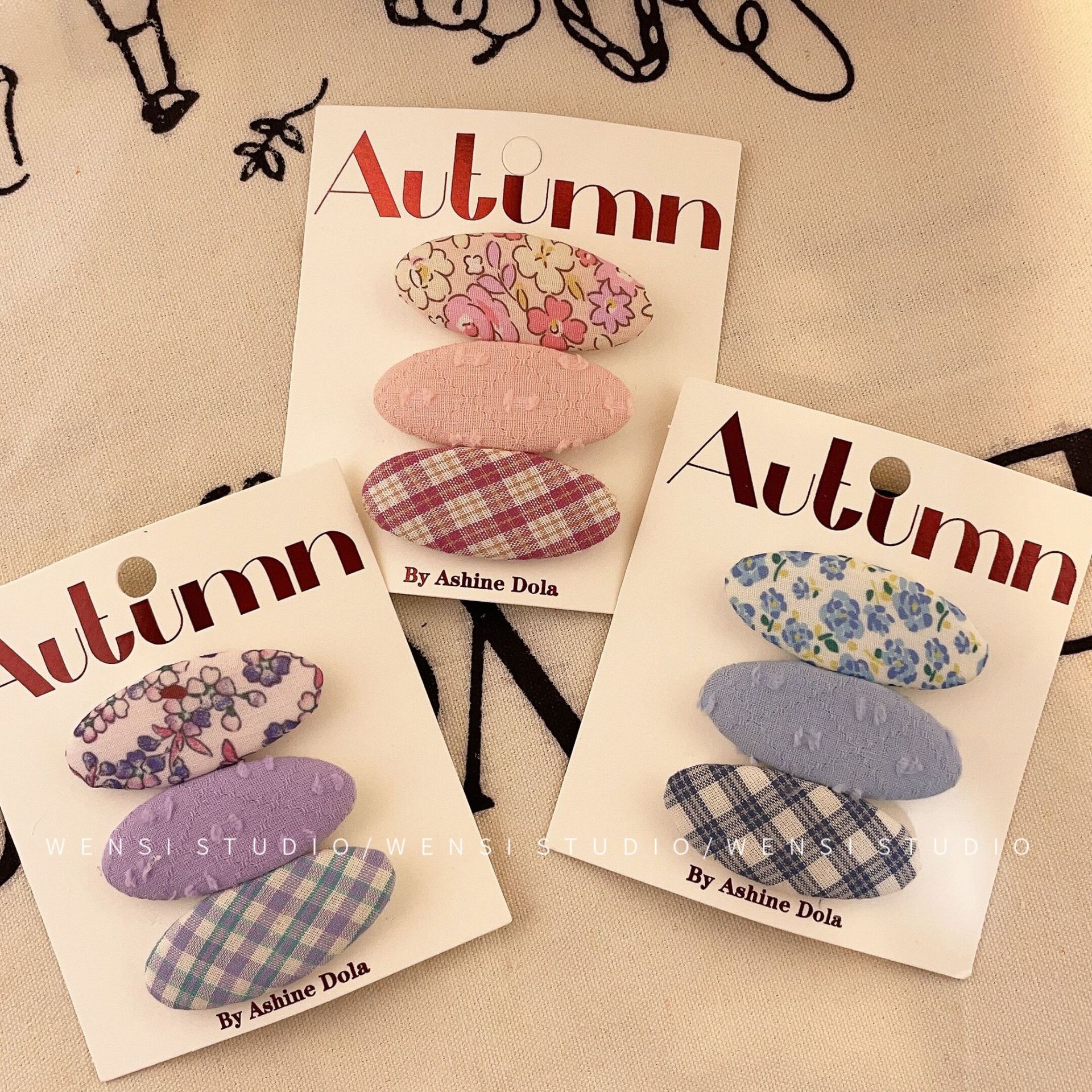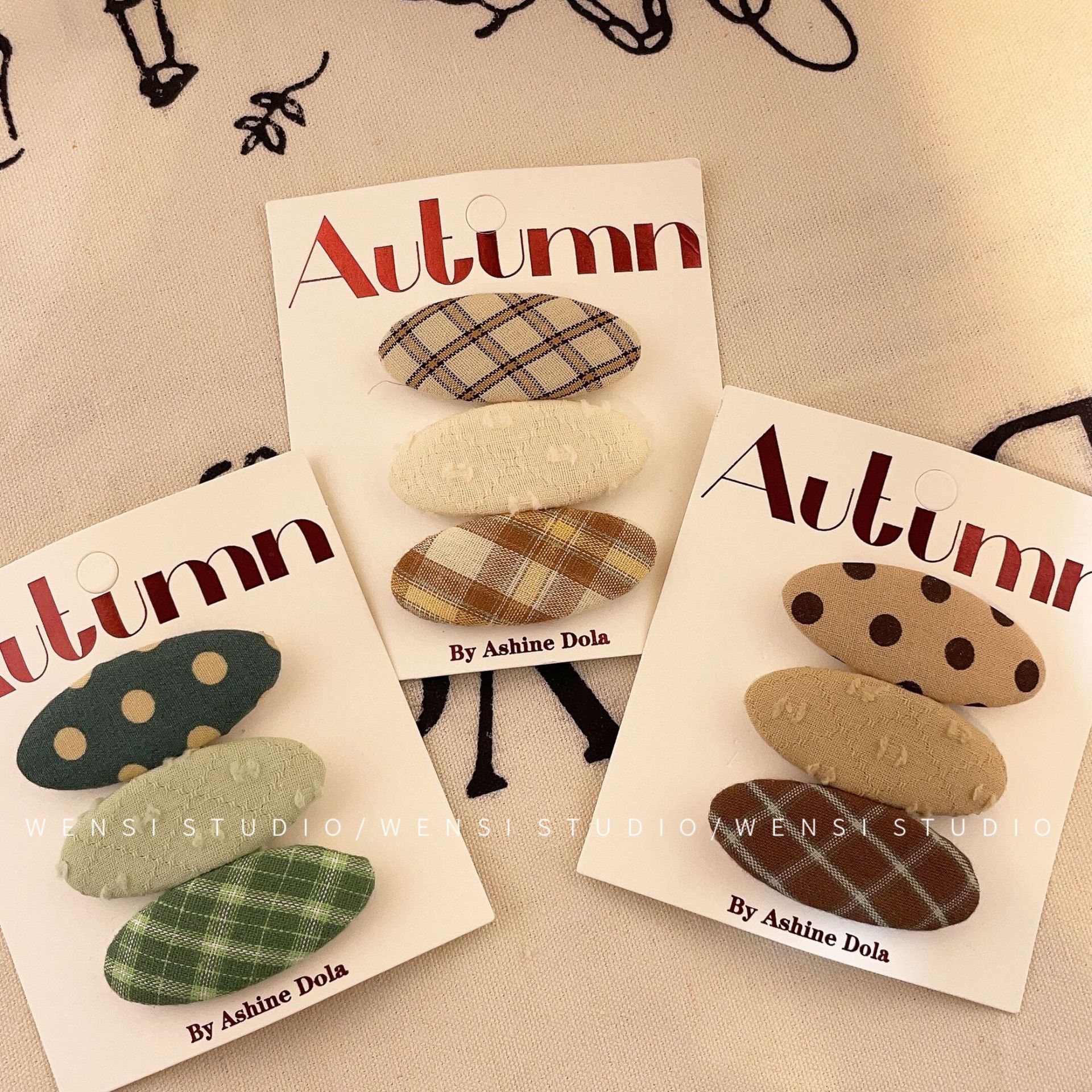 韩系简约撞色三件套发夹甜美布艺格纹女童碎发夹碎可爱碎花BB夹