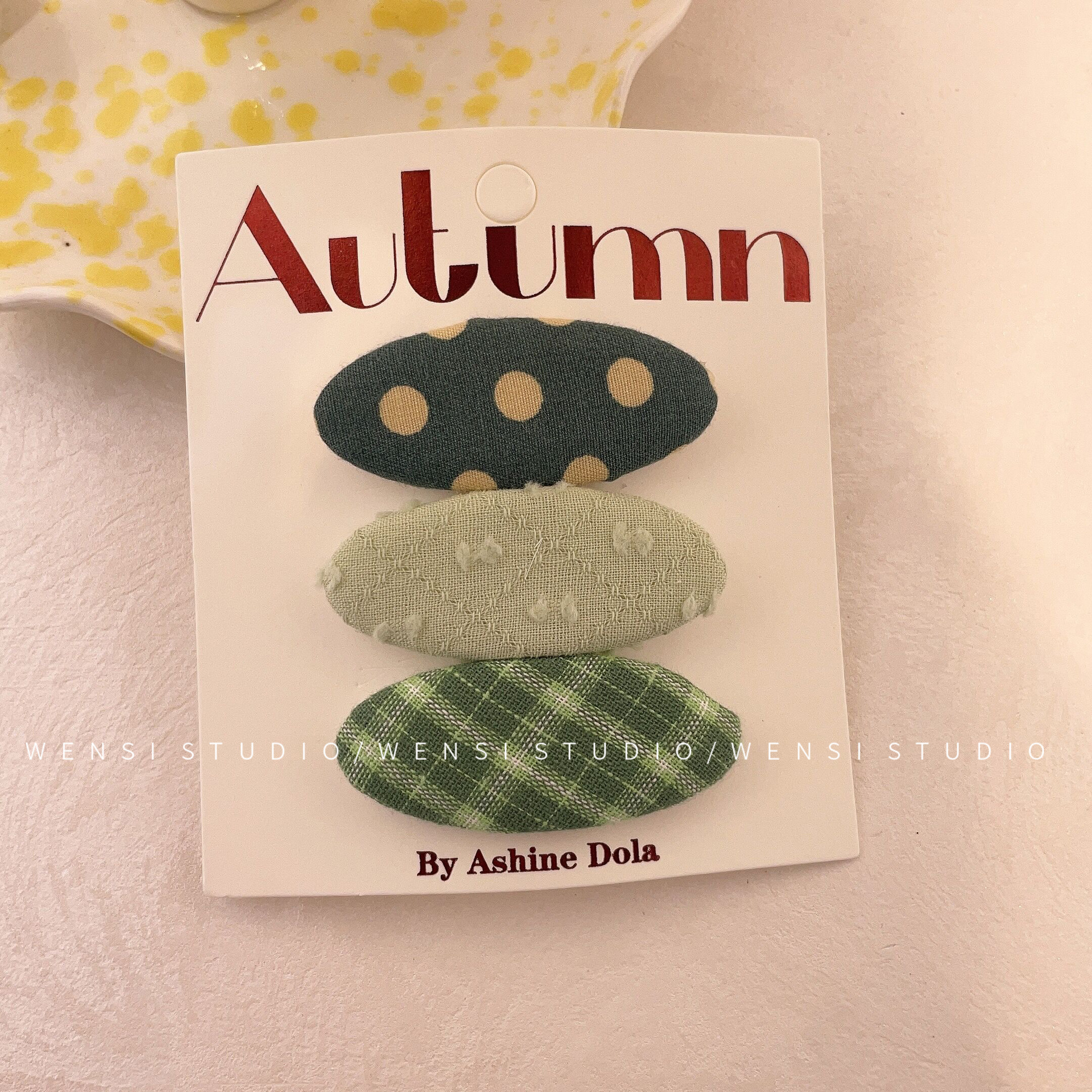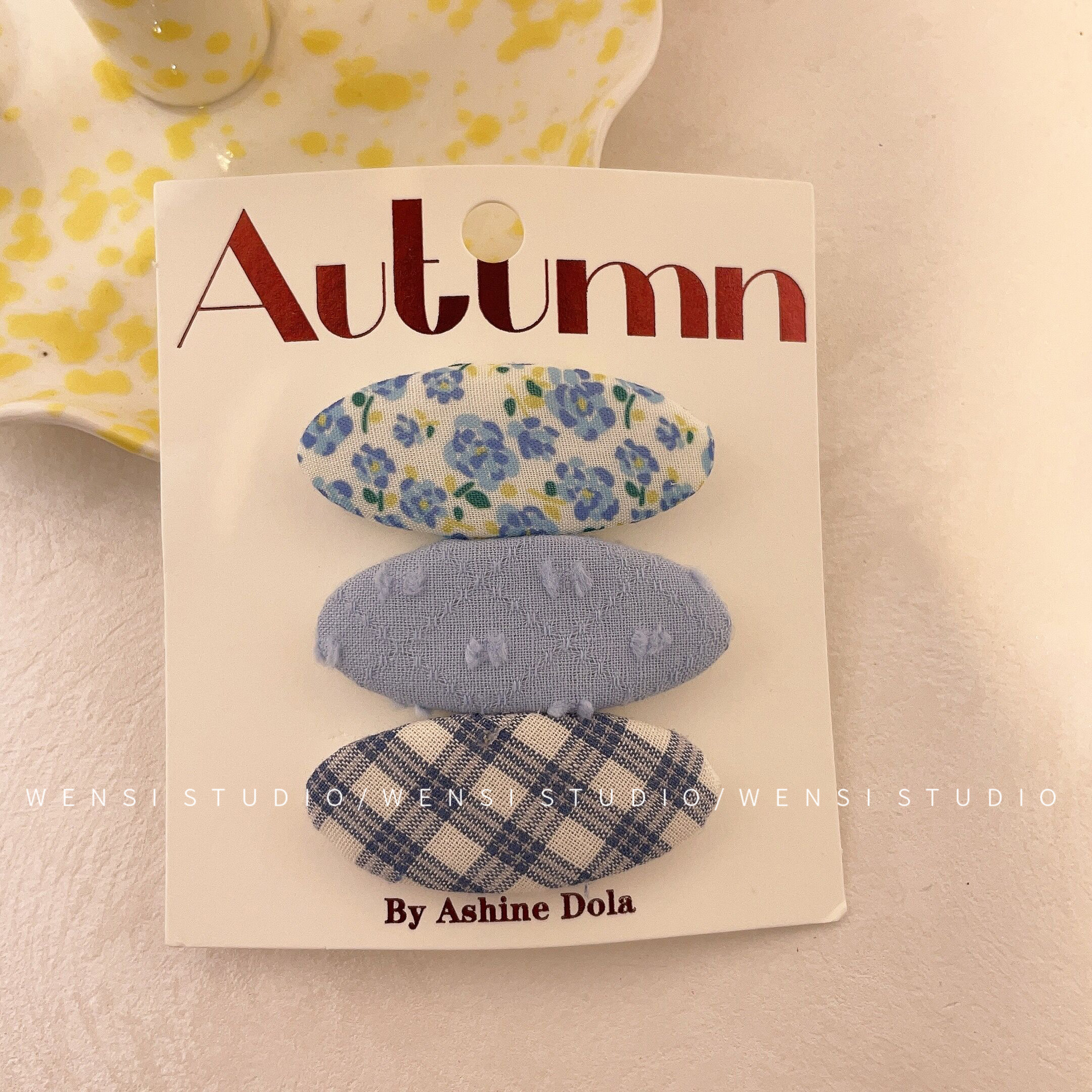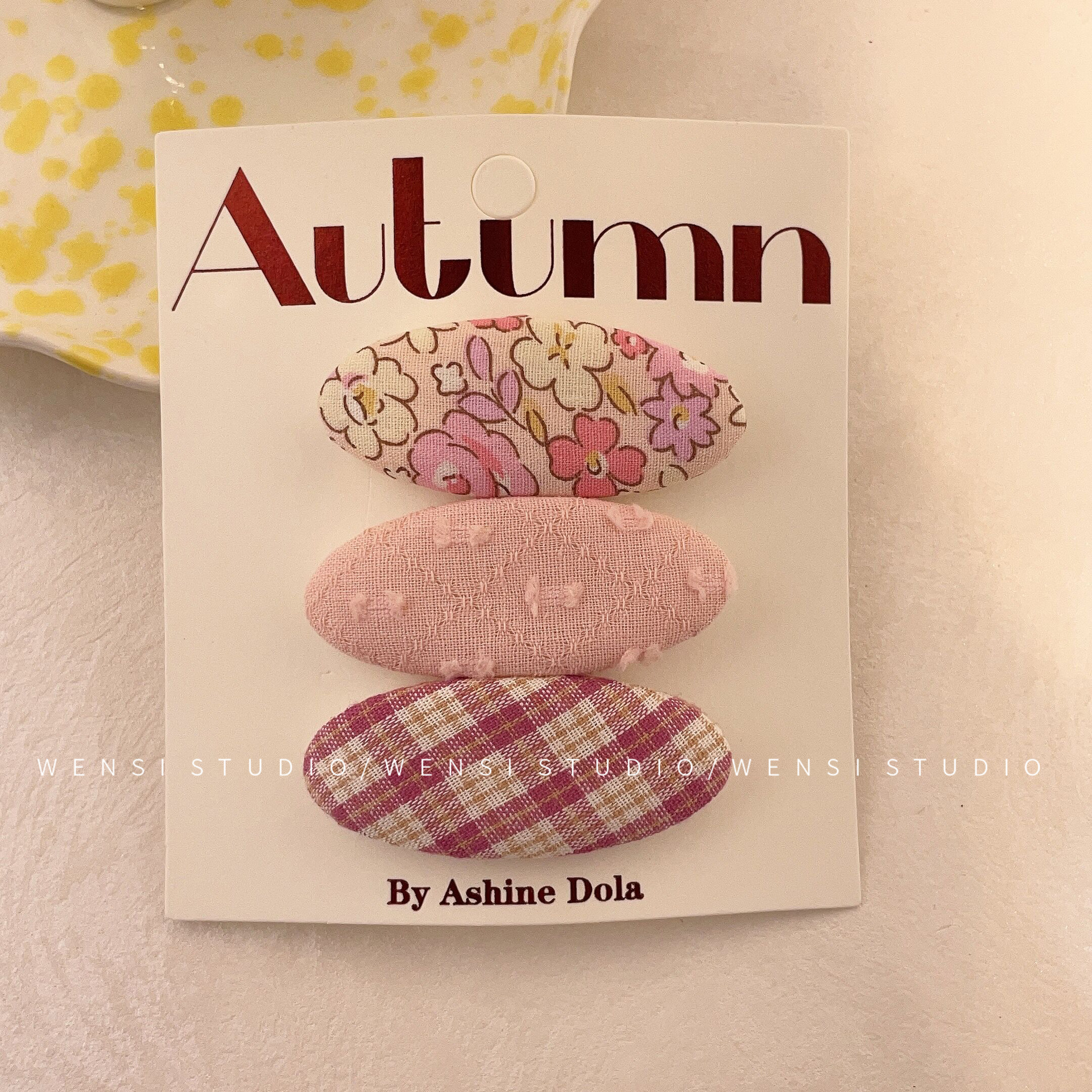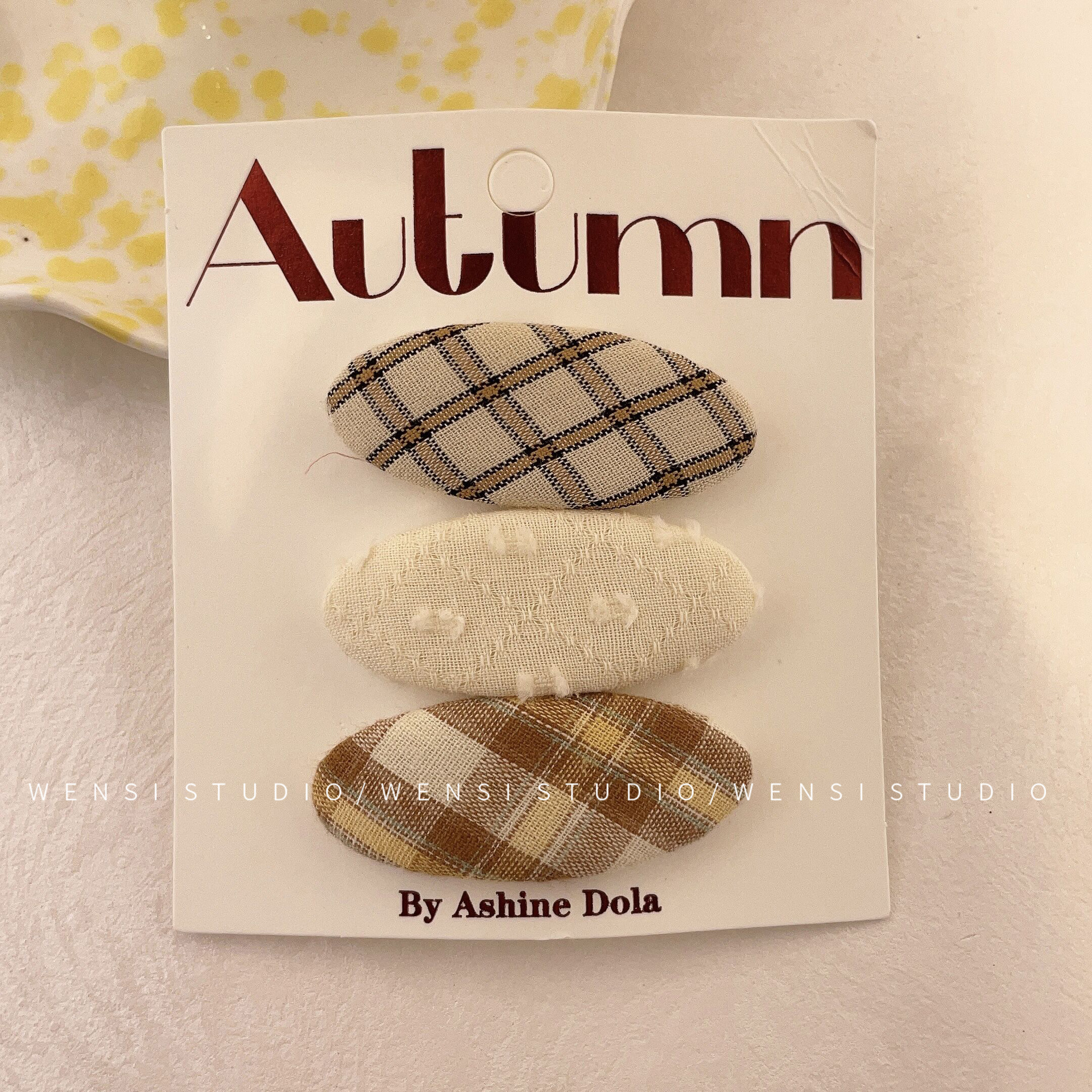 韩系简约撞色三件套发夹甜美布艺格纹女童碎发夹碎可爱碎花BB夹