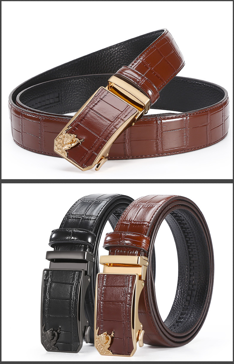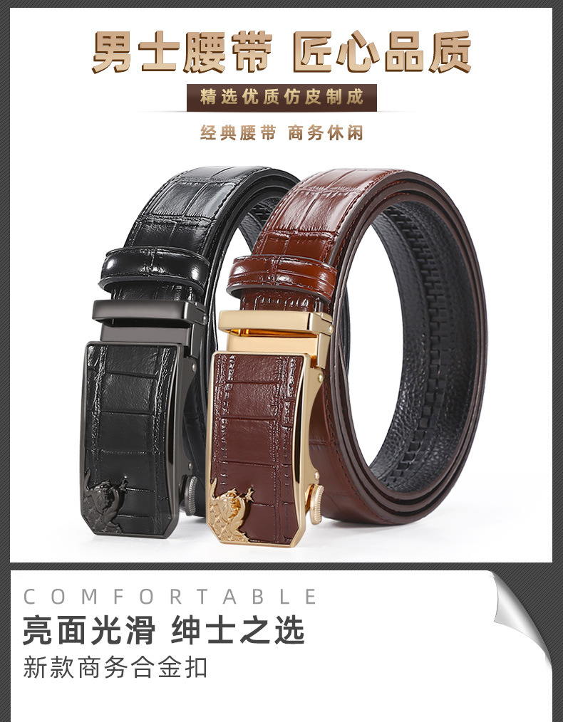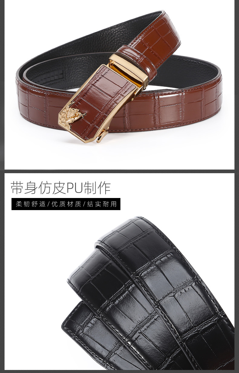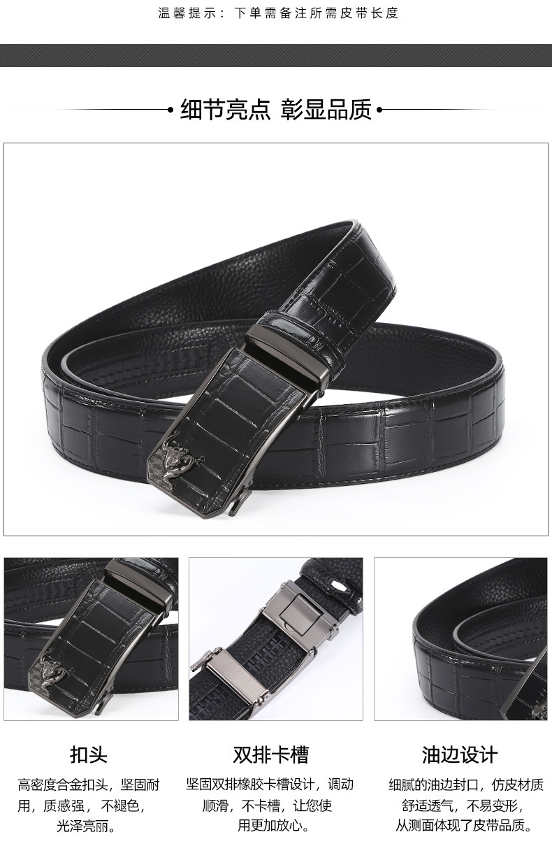 皮带男士商务时尚高端鳄鱼纹自动扣纯牛皮裤腰带厂家直供现货批发