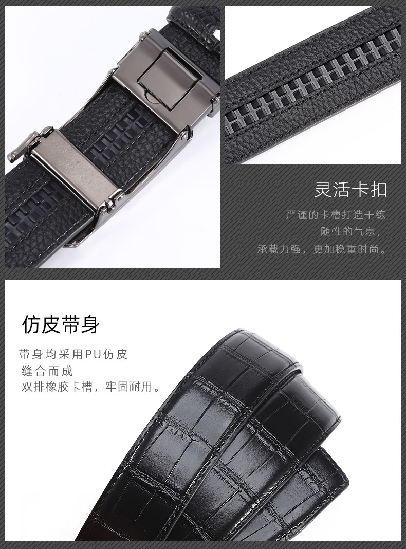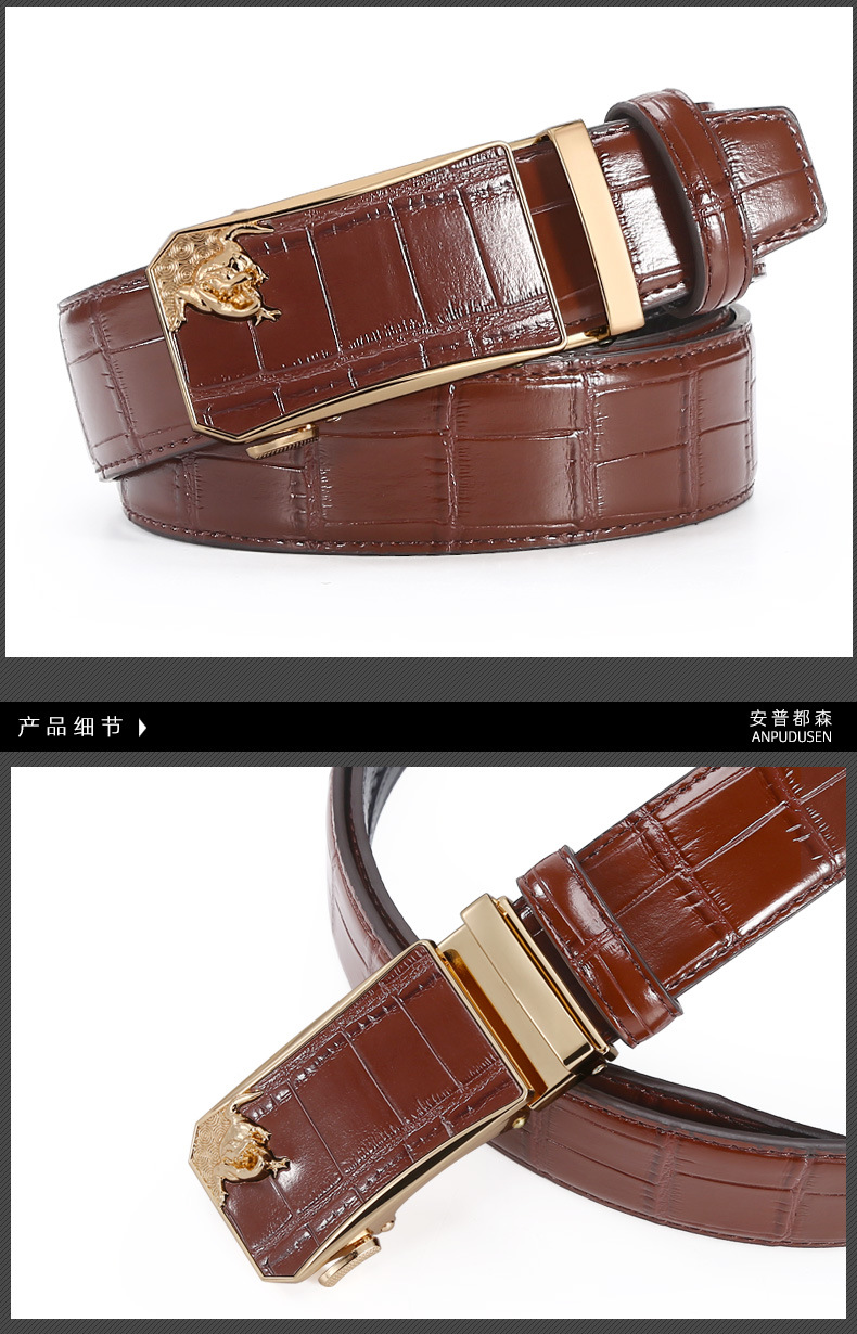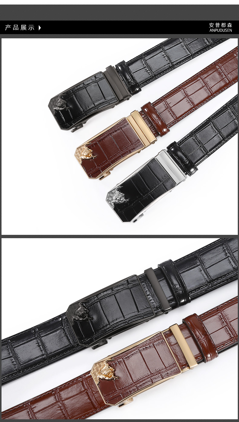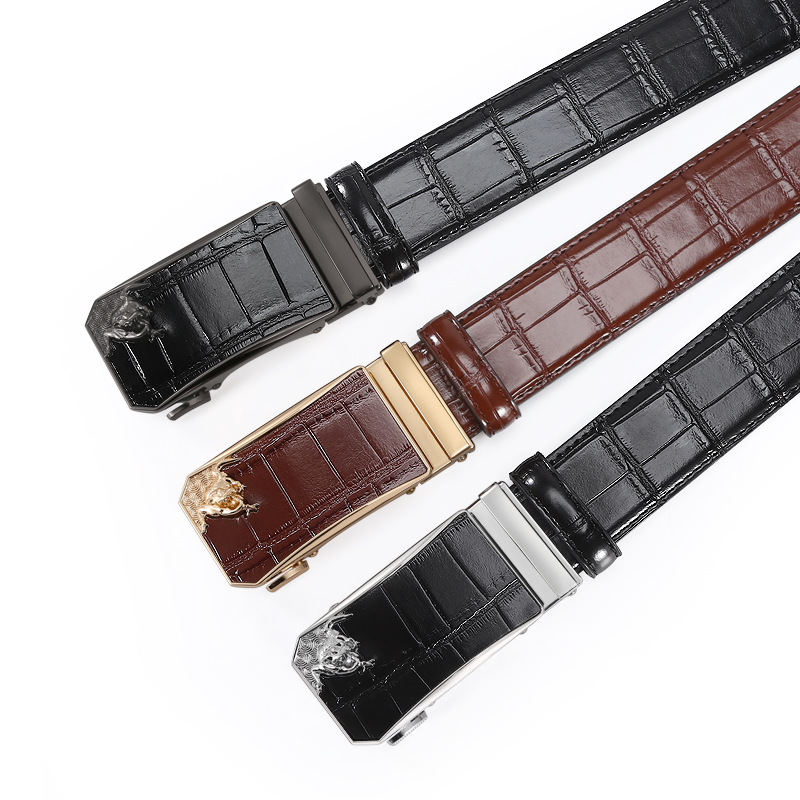 皮带男士商务时尚高端鳄鱼纹自动扣纯牛皮裤腰带厂家直供现货批发