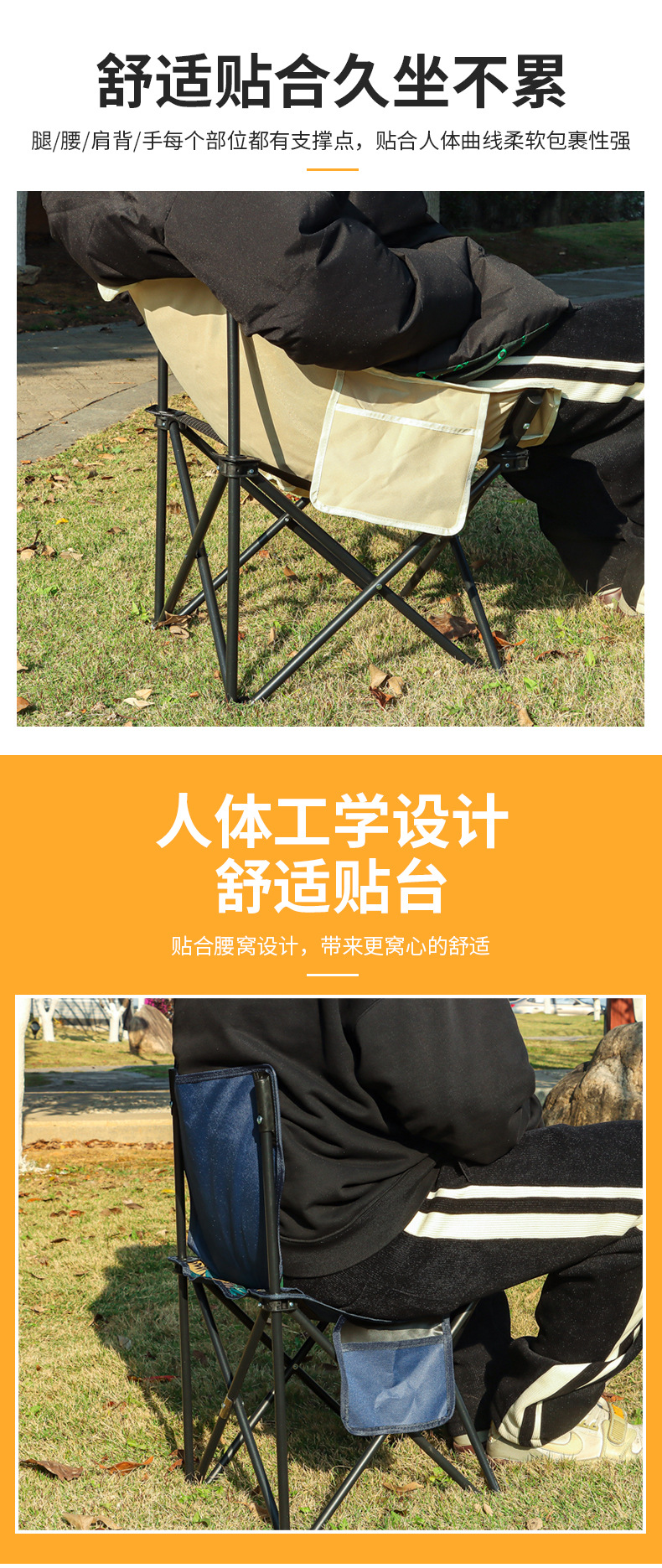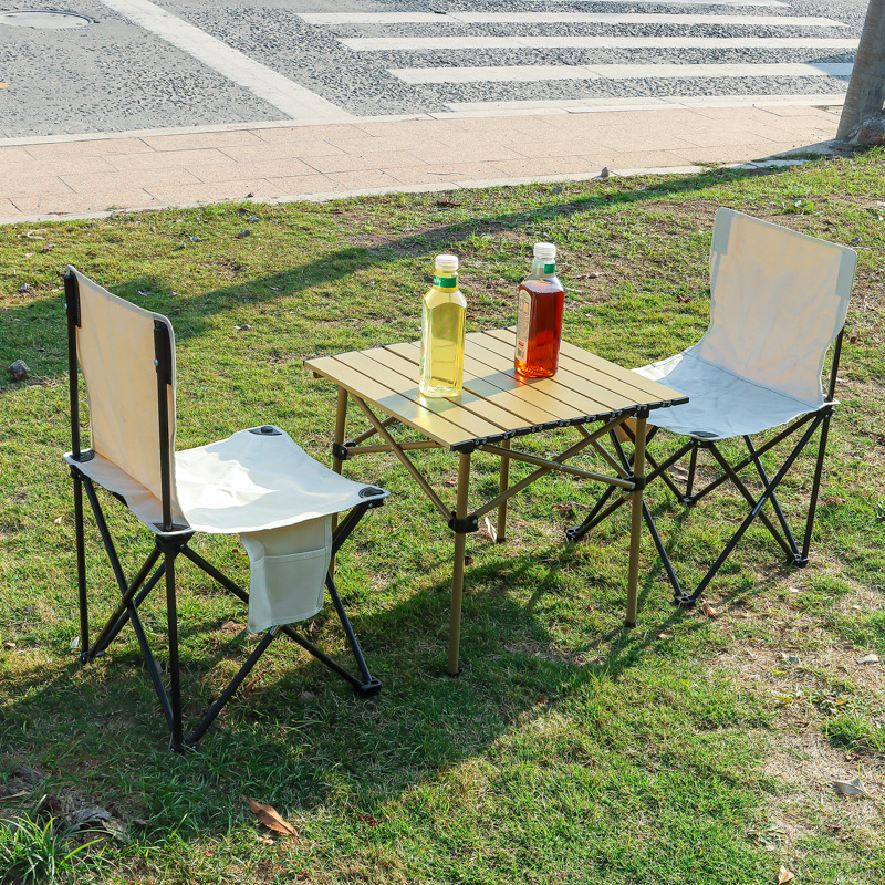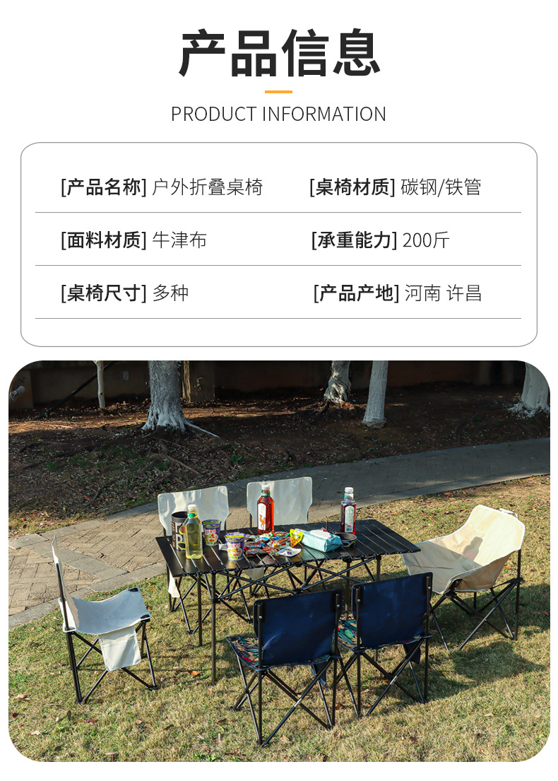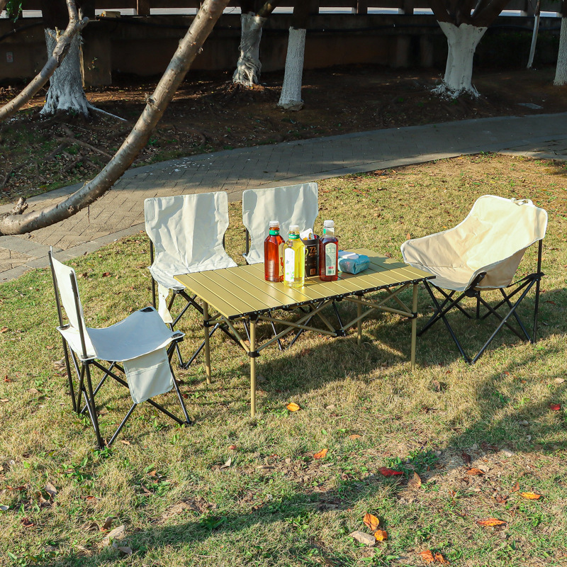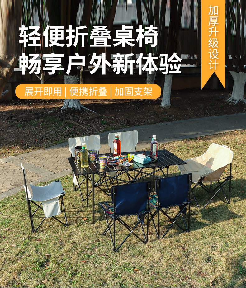 现货户外折叠桌椅露营野餐月亮椅折叠凳子便携蛋卷桌靠背椅沙滩椅