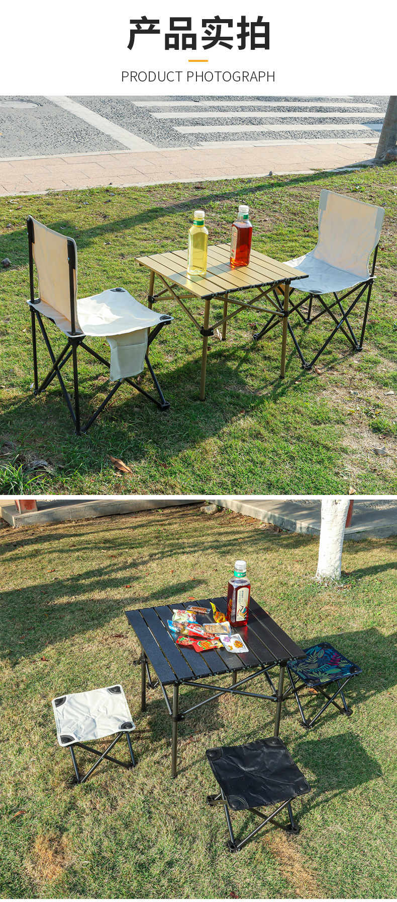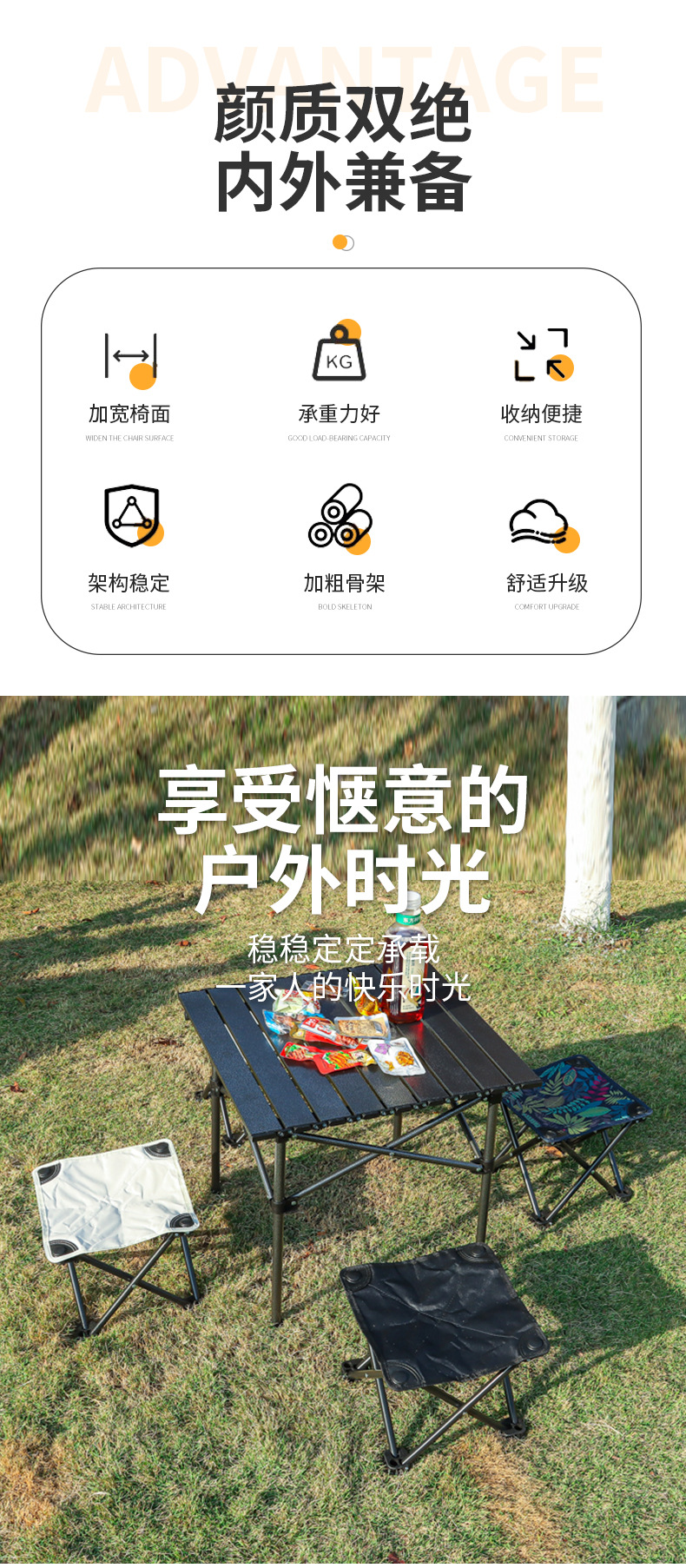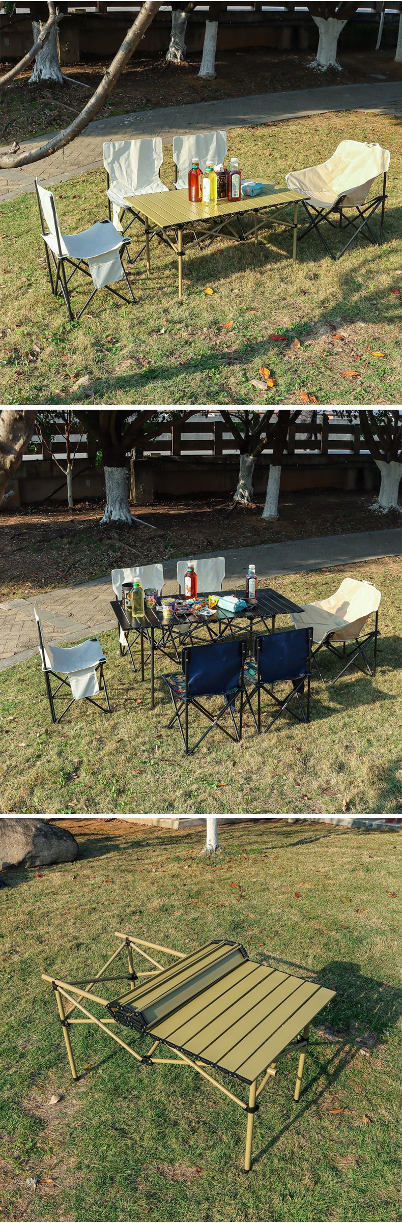 现货户外折叠桌椅露营野餐月亮椅折叠凳子便携蛋卷桌靠背椅沙滩椅