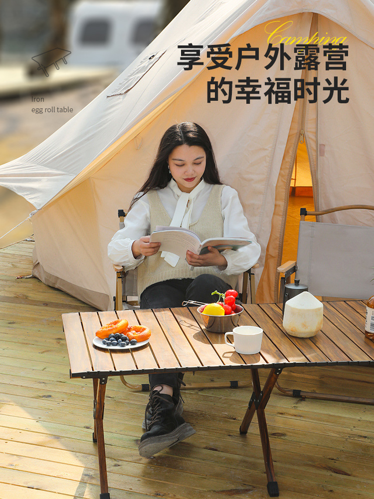 户外露营蛋卷桌碳钢折叠桌便携室外庭院花园露天野餐桌椅阳台用品
