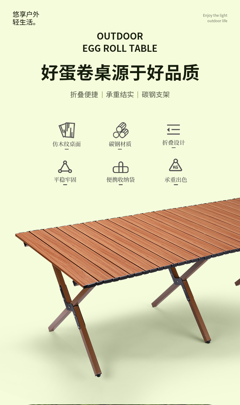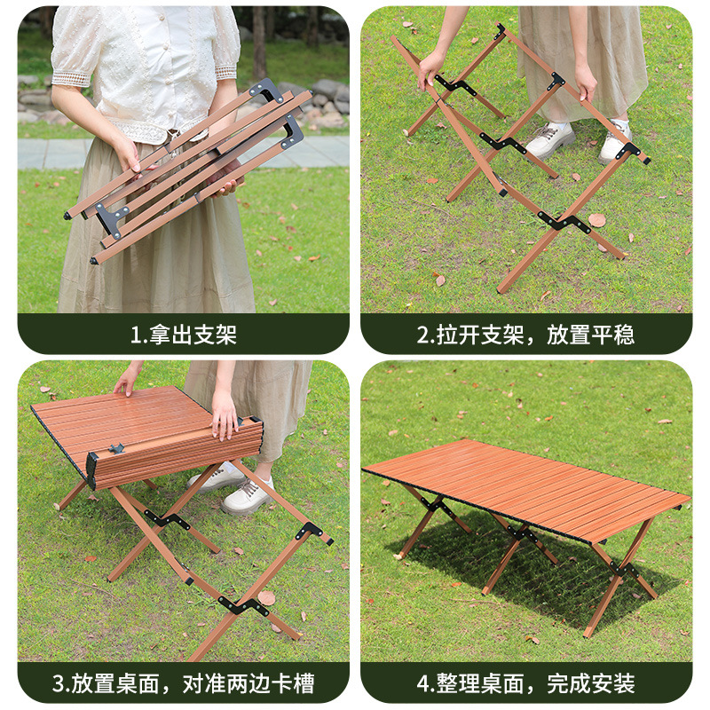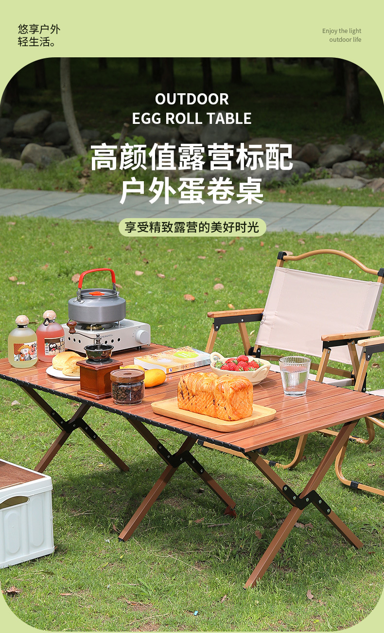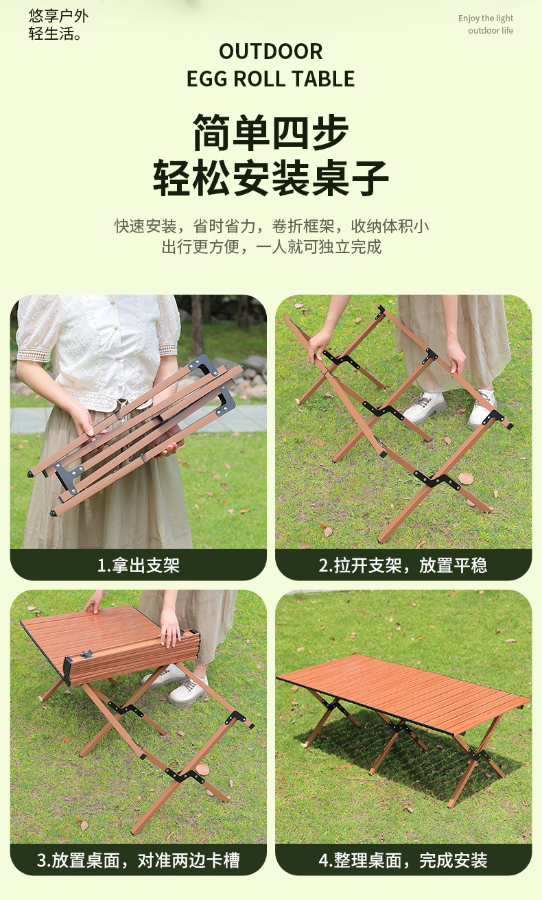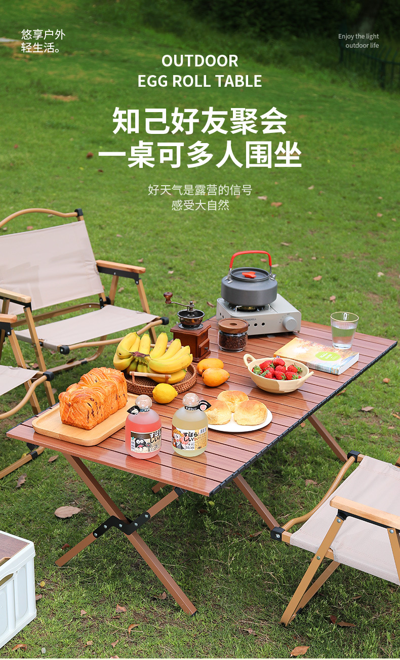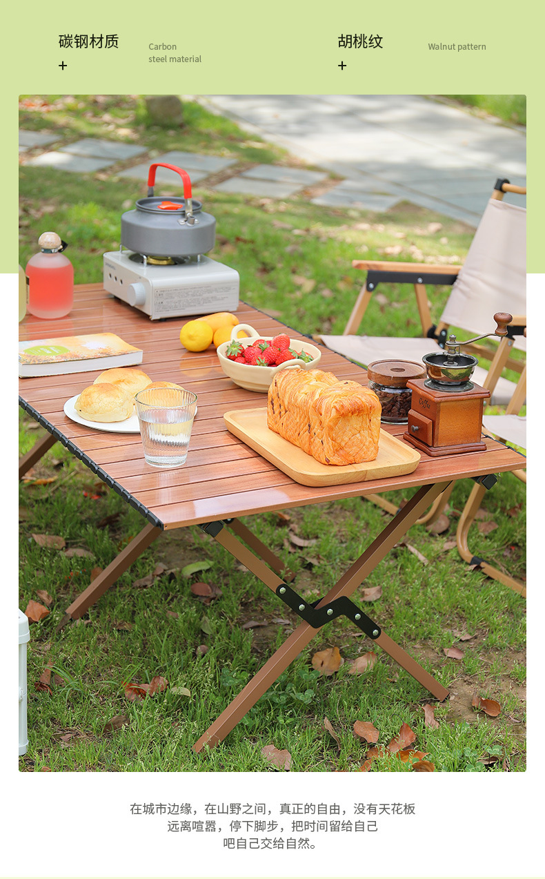 户外便携式装备露营桌子车载超轻折叠式碳钢蛋卷野营野餐桌椅跨境