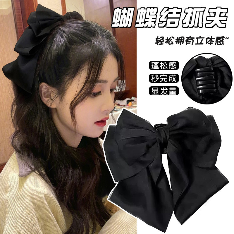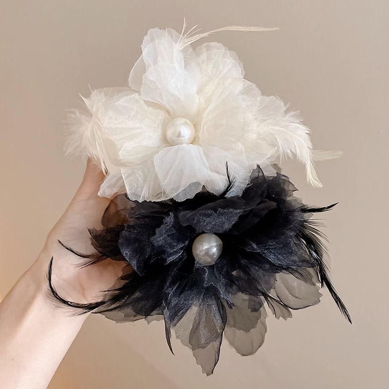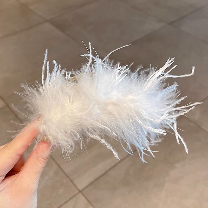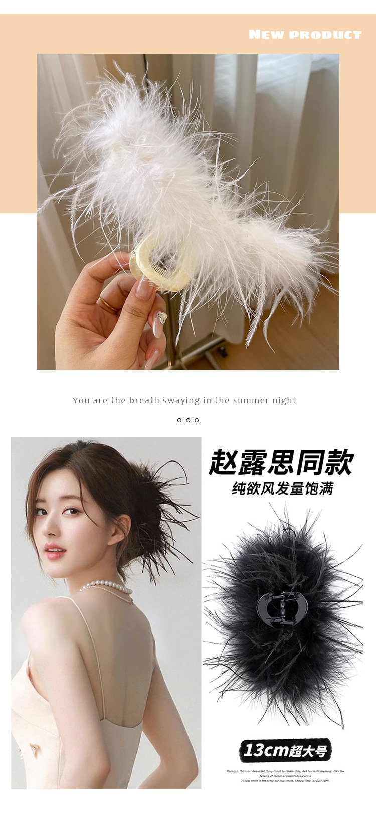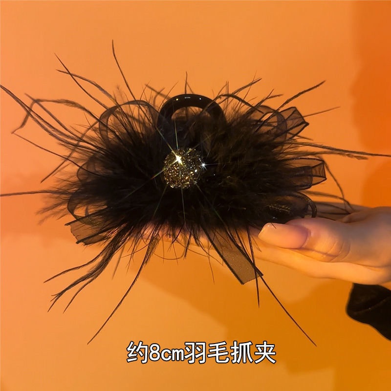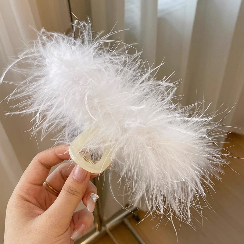 2024新款网红羽毛抓夹大号高级感鸡毛掸子发夹女鲨鱼夹毛毛夹头饰