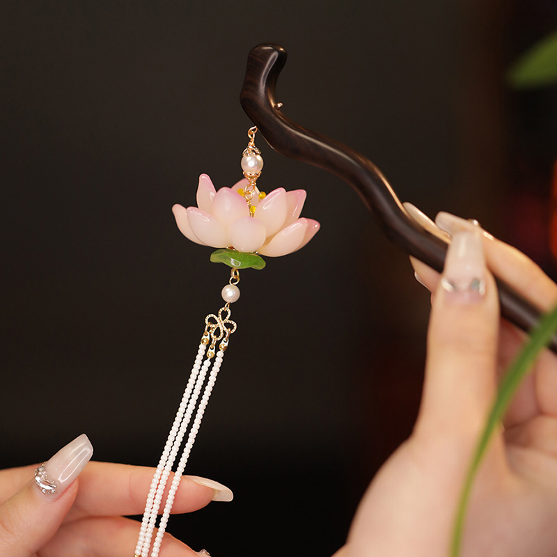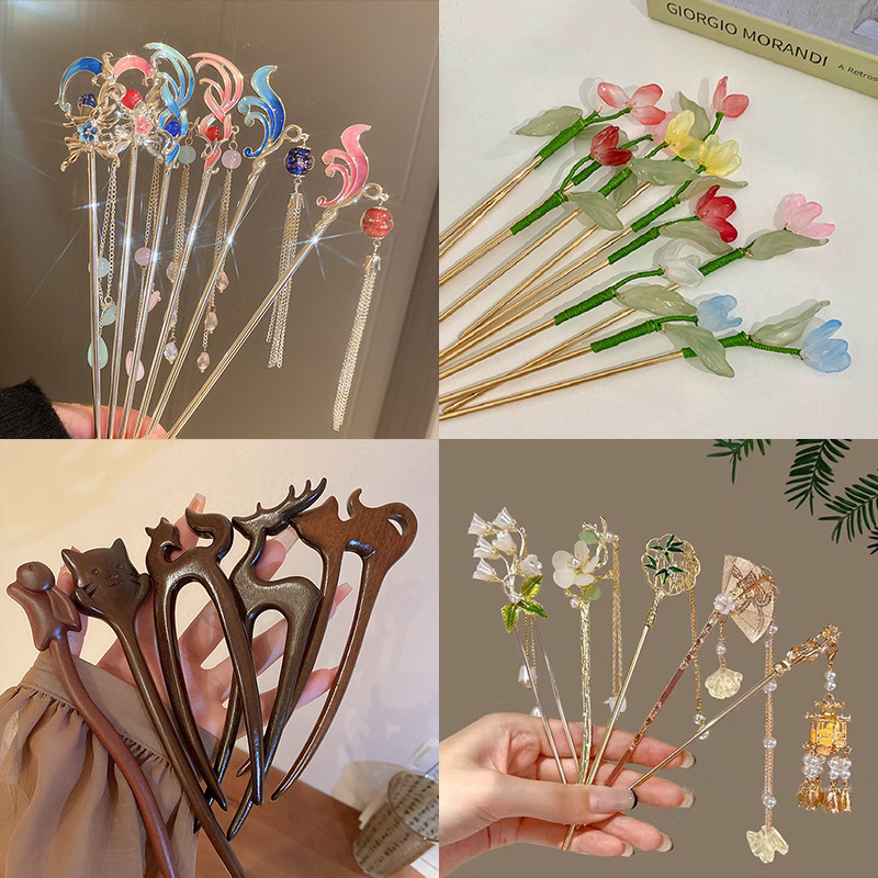国潮花朵流苏发簪新中式步摇小清新发钗古风旗袍汉服百搭发饰批发