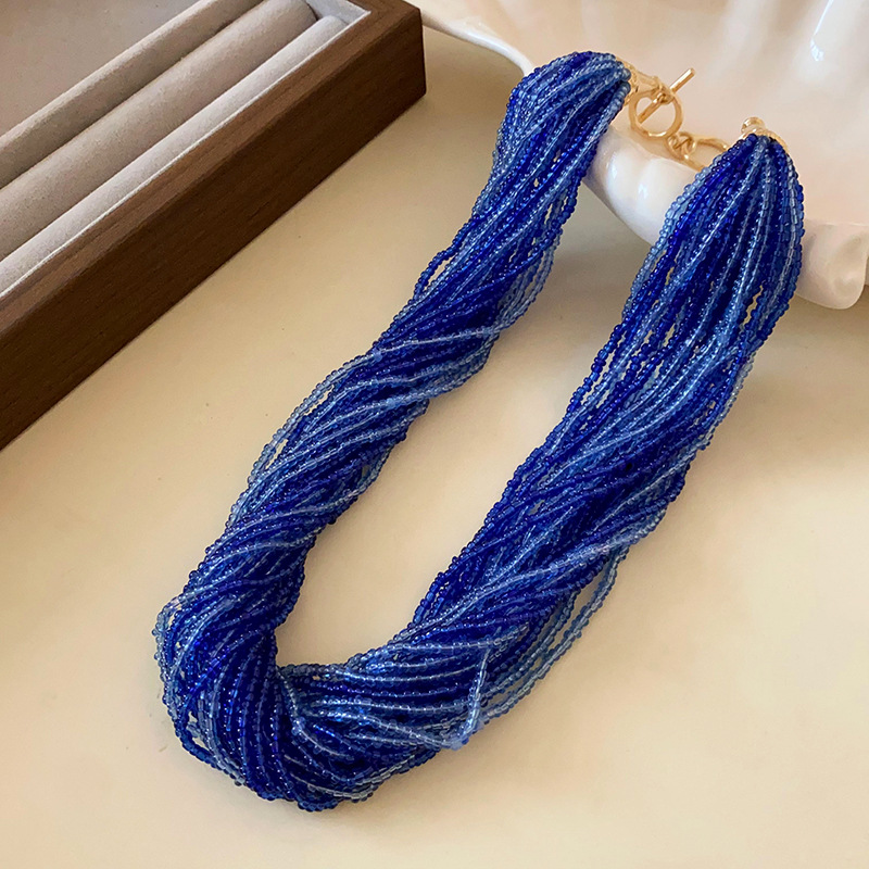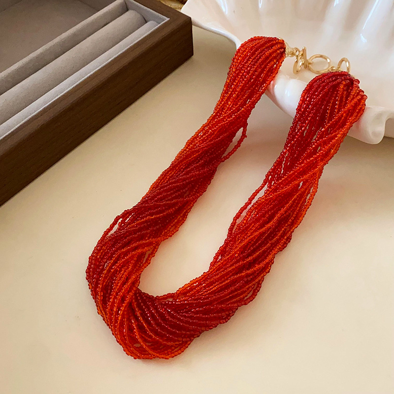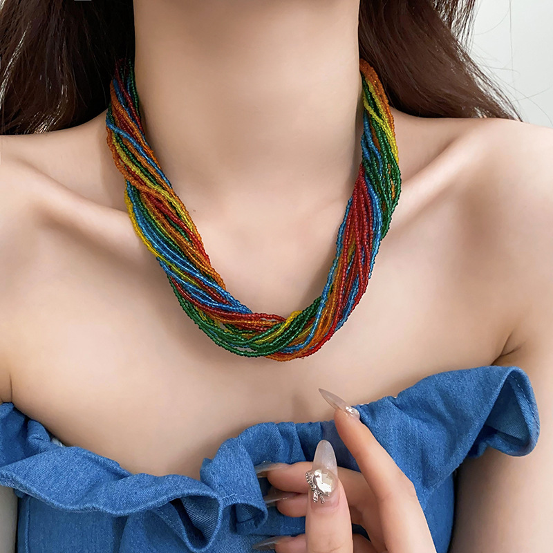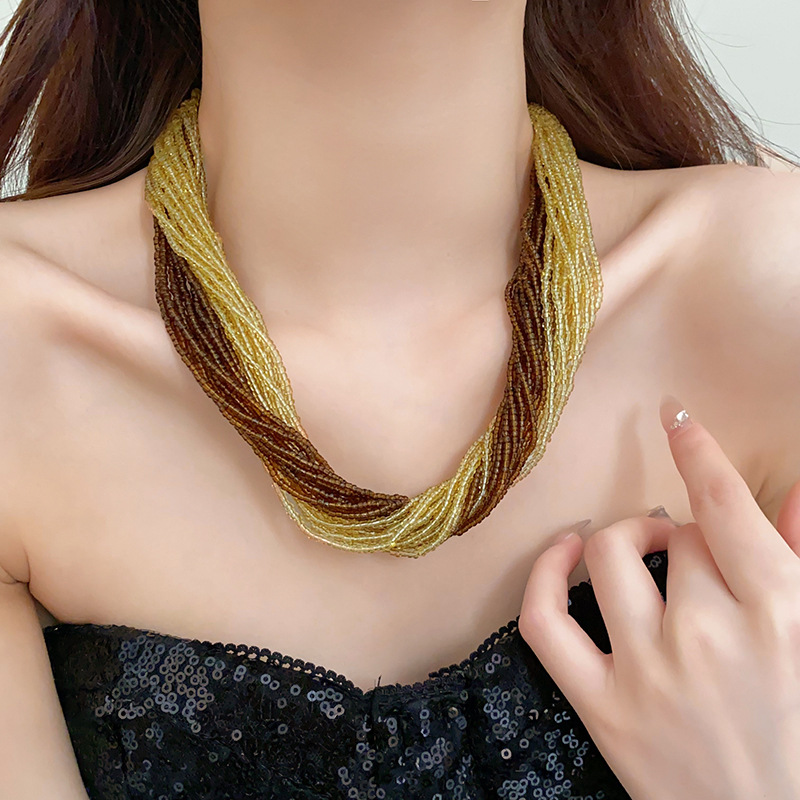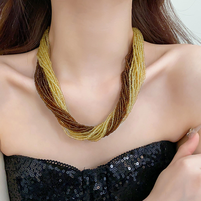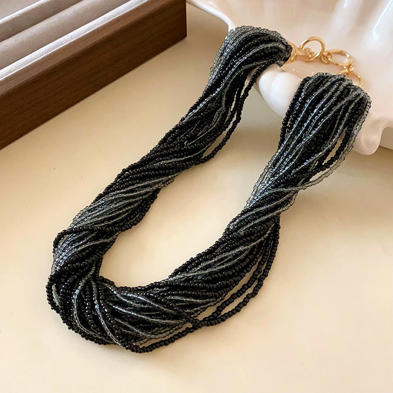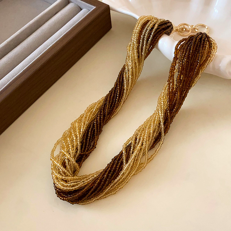 中古vintage时尚多层米珠项链小众创意百搭锁骨链轻奢高级感饰品