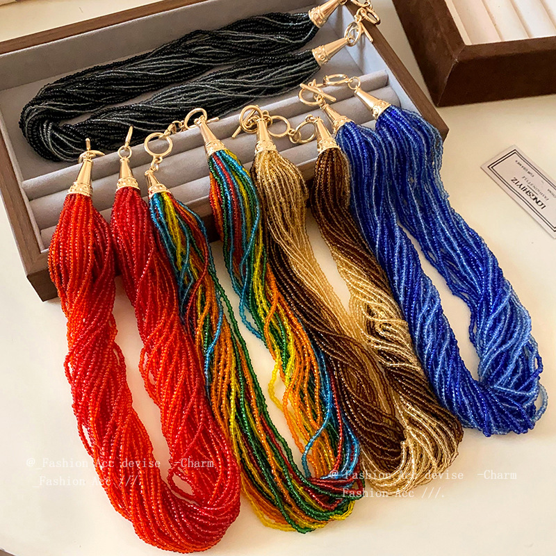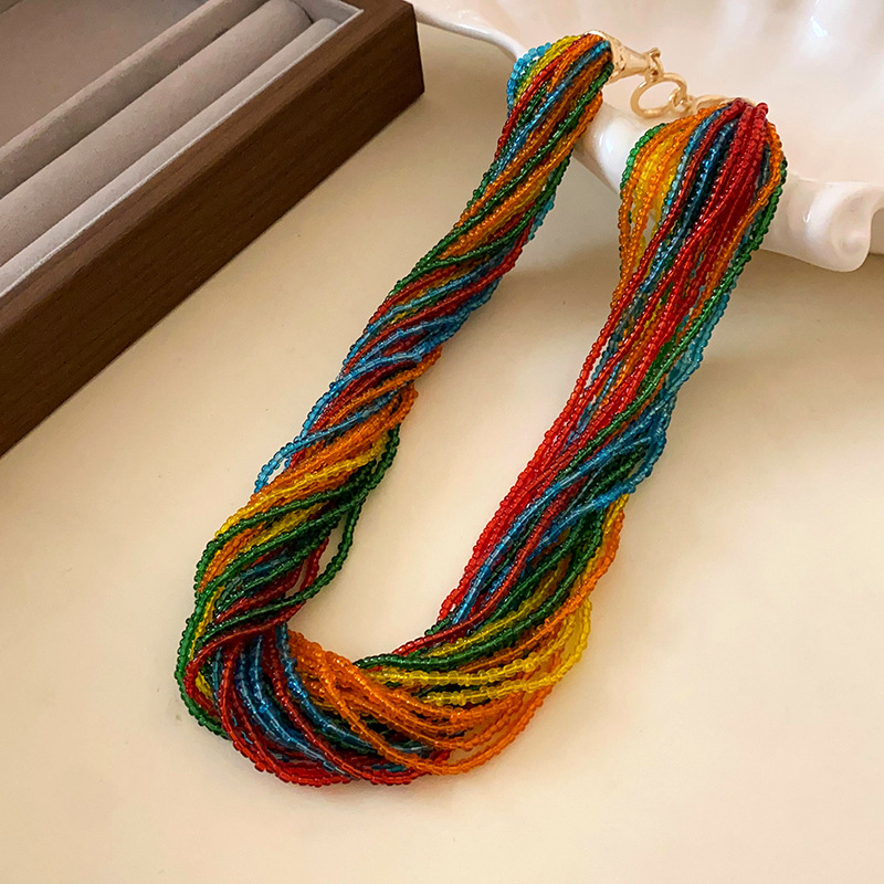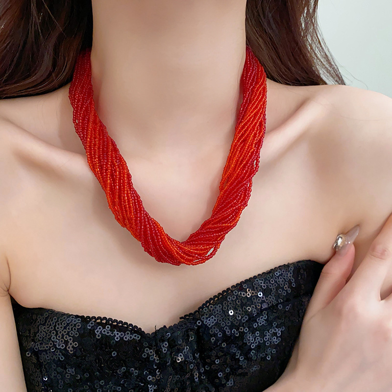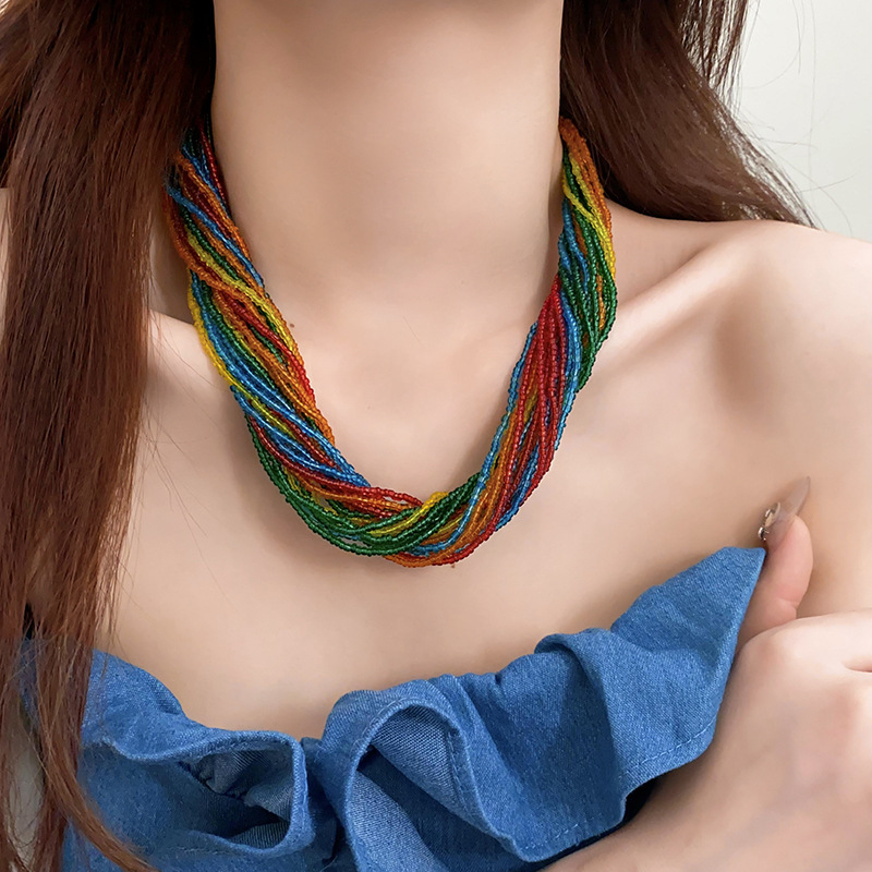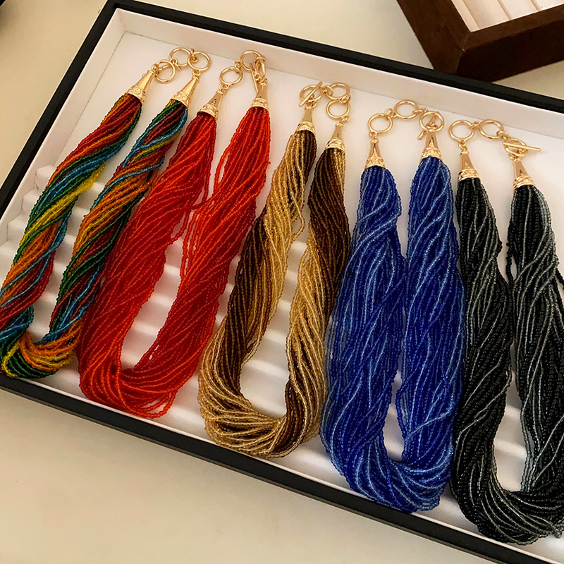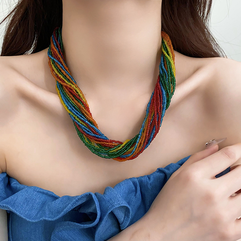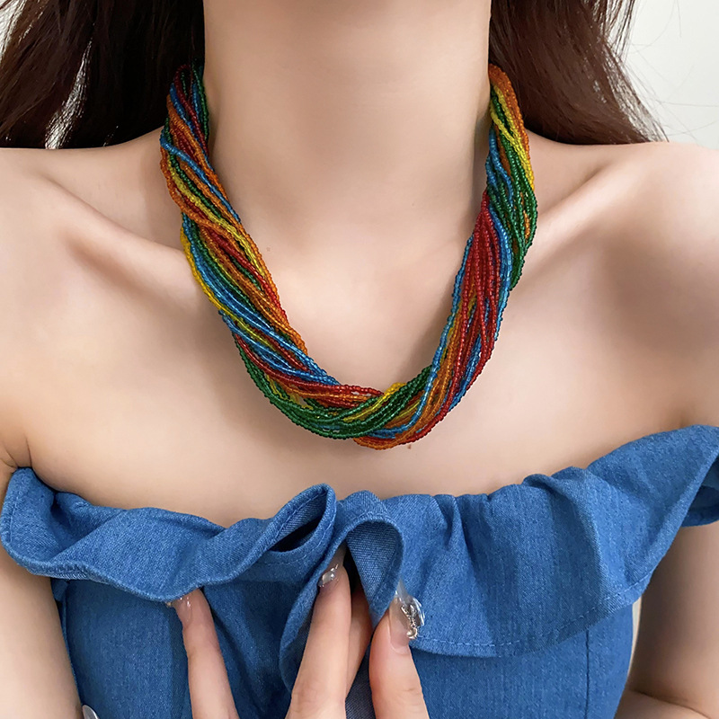 中古vintage时尚多层米珠项链小众创意百搭锁骨链轻奢高级感饰品