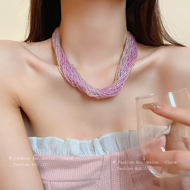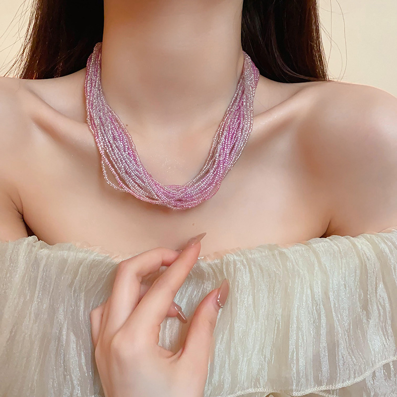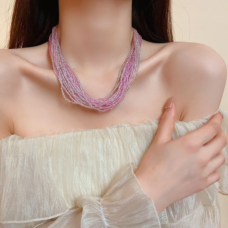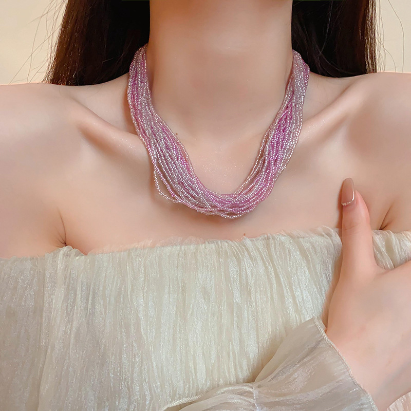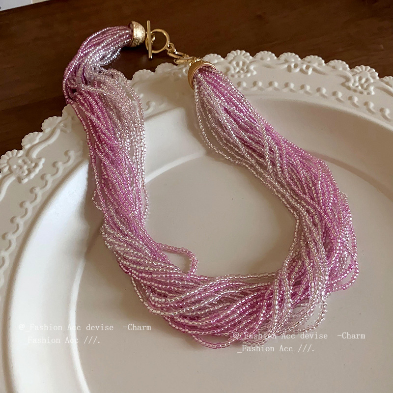 中古轻奢米珠多层项链小众气质设计感锁骨链时尚轻奢高级感饰品女